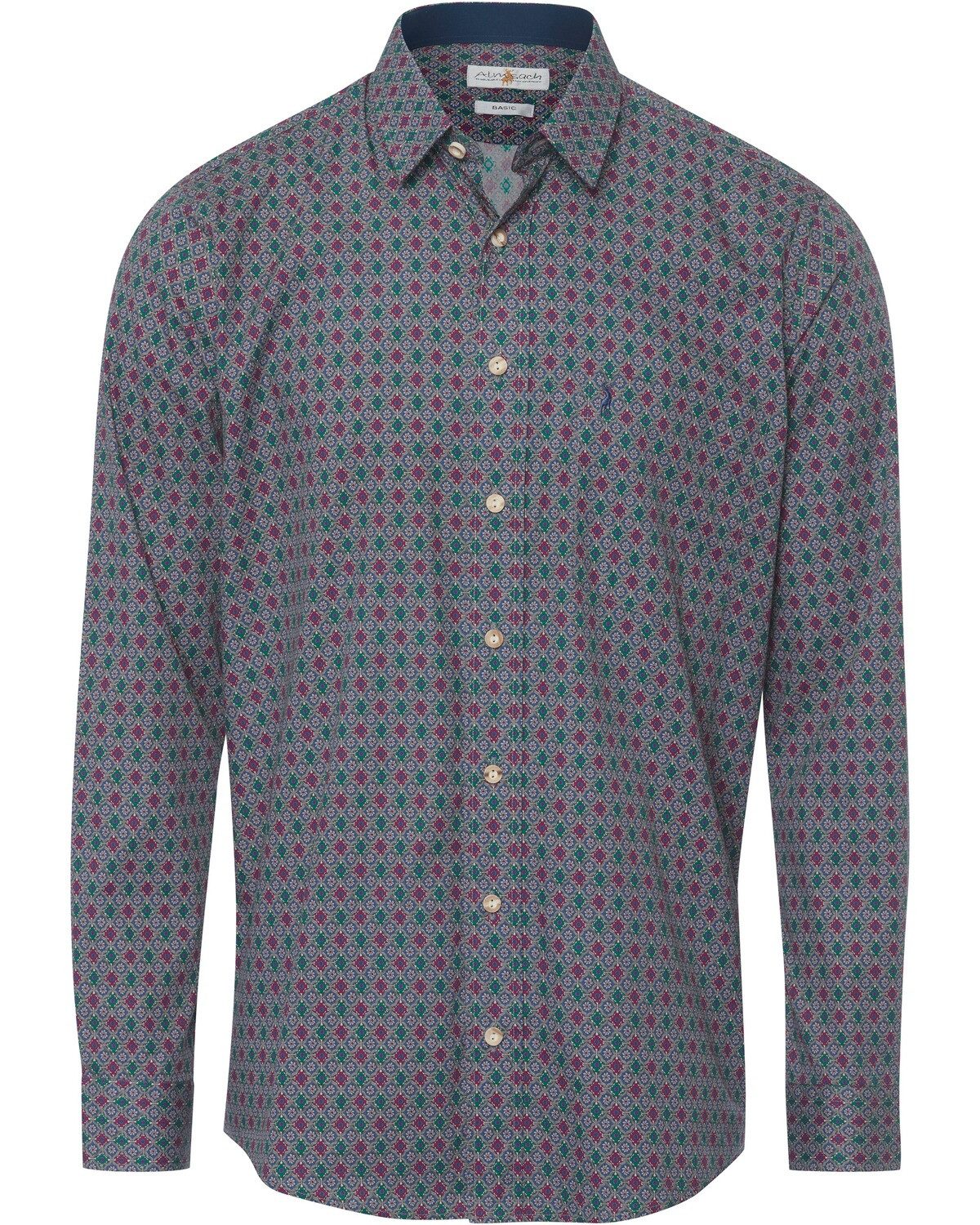 Das Basic Fit Herren Trachtenhemd von Almsach vereint traditionelle Trachtenmode mit modernem Design. Hergestellt aus reiner Baumwolle, bietet es nicht nur einen angenehmen Tragekomfort, sondern auch eine ansprechende Optik durch den stilvollen Allover-Print. Der Kentkragen verleiht dem Hemd eine elegante Note, während die Knöpfe in Hirschhornoptik einen charmanten Akzent setzen und die Verbindung zur bayerischen Tradition unterstreichen. Die aufgesetzte Brusttasche mit dezenter Logostickerei fügt sich harmonisch in das Gesamtbild ein und bietet gleichzeitig einen praktischen Nutzen. Die langen Ärmel sind mit einer 1-Knopf-Manschette und einem Verstellknopf ausgestattet, was eine individuelle Anpassung ermöglicht und für zusätzlichen Komfort sorgt. Der geknöpfte Schlitz sorgt für eine optimale Bewegungsfreiheit, sodass das Hemd sowohl bei festlichen Anlässen als auch im Alltag getragen werden kann. Mit seinem zeitlosen Design und der liebevollen Detailverarbeitung ist das Basic Fit Herren Trachtenhemd von Almsach die ideale Wahl für Männer, die Wert auf Stil und Tradition legen. Ob zu Lederhosen oder Jeans, dieses Hemd lässt sich vielseitig kombinieren und wird zum Blickfang in jeder Garderobe. Oberstoff: 100% Baumwolle