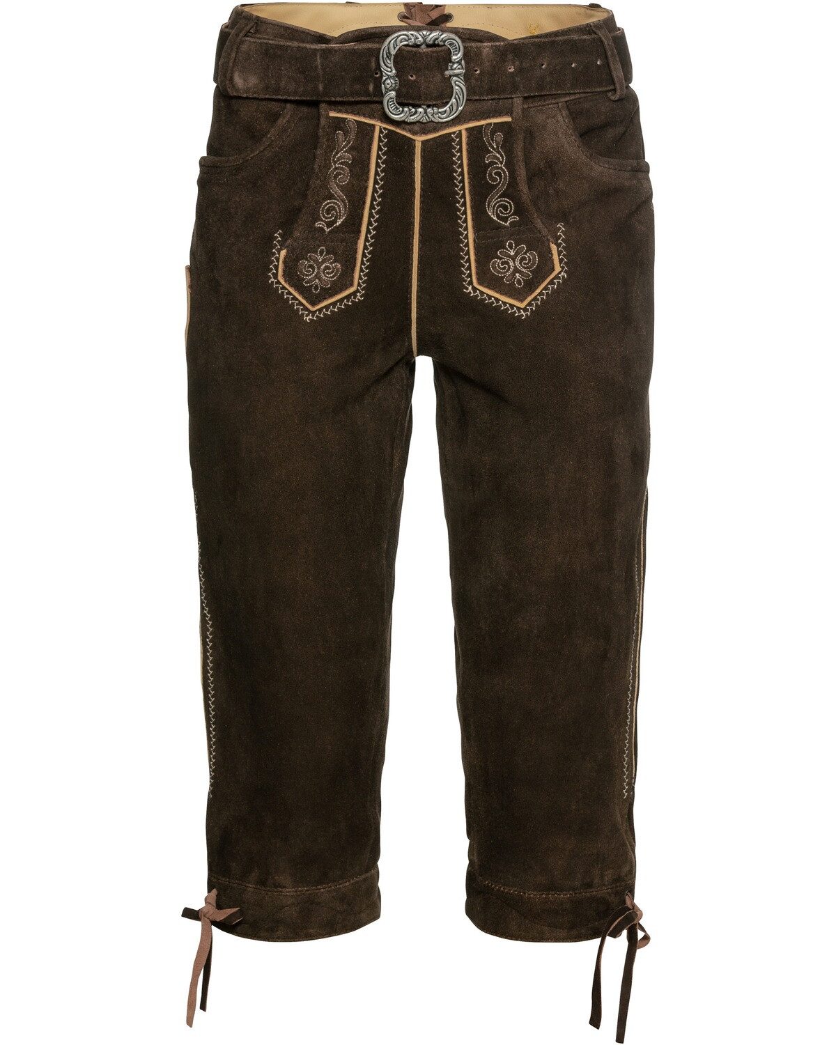 Ein Blickfang der besonderen Art ist diese Damen Knickerbocker von Almsach aus hochwertigem, geschmeidigem Ziegenveloursleder. Die aufwendigen Stickereien am Latz verleihen ihr einen Hauch von Charme und Tradition. Gleichzeitig punktet sie mit praktischen Details: Zwei Schubtaschen, eine spezielle Messertasche und eine Gesäßtasche mit Knopfverschluss bieten genügend Stauraum für die wichtigsten Utensilien.