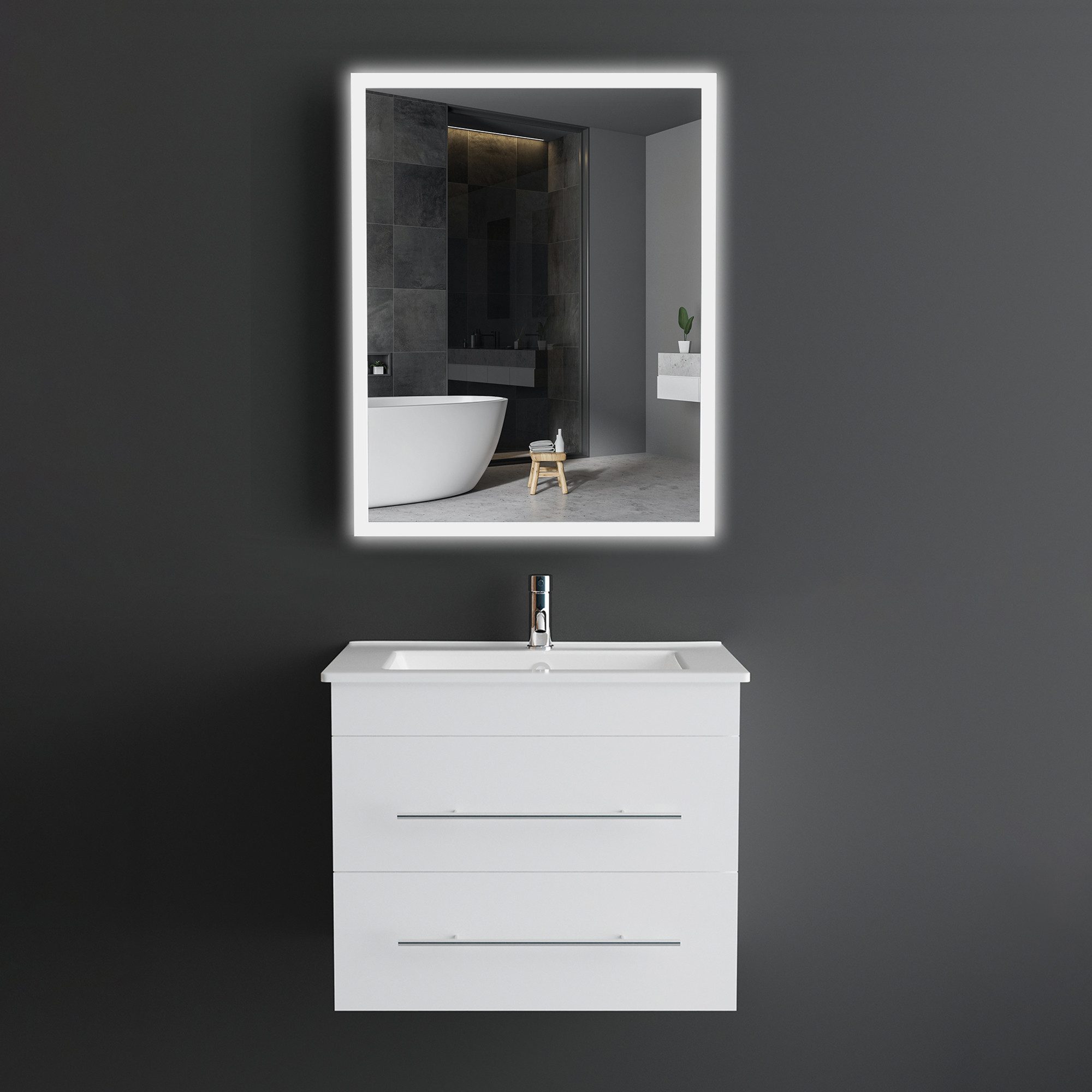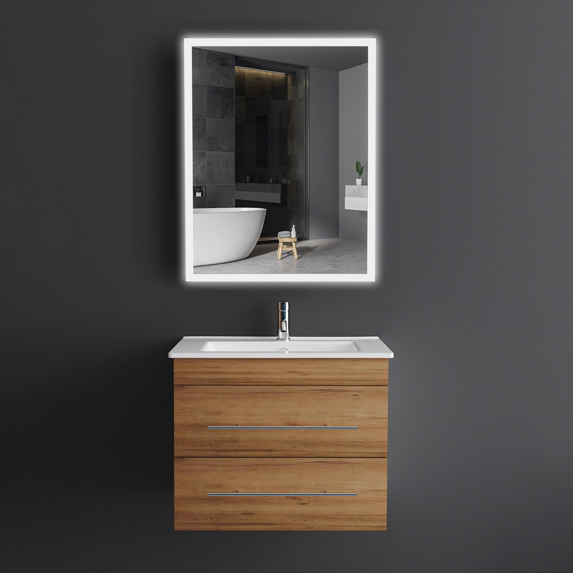 Das Alpenberger Badmöbel verleiht Ihrem Badezimmer eine stilvolle Note. Mit seinen eleganten Schubladen, dem hochwertigen Keramik Waschbecken und dem stilvollen Badspiegel vereint dieses moderne Badezimmer Set zeitlose Eleganz und Funktionalität.
