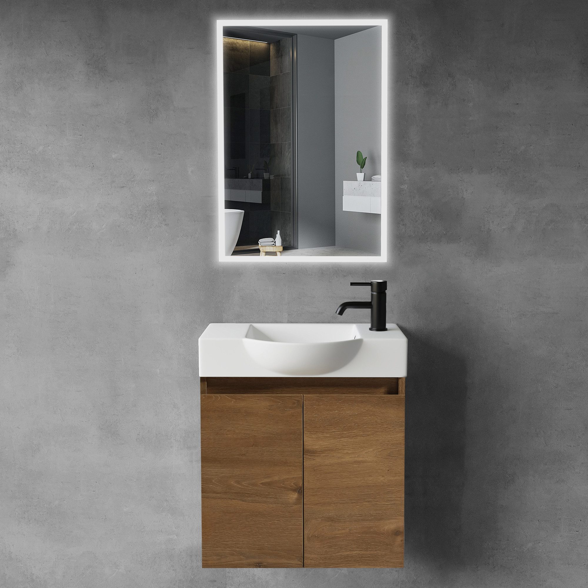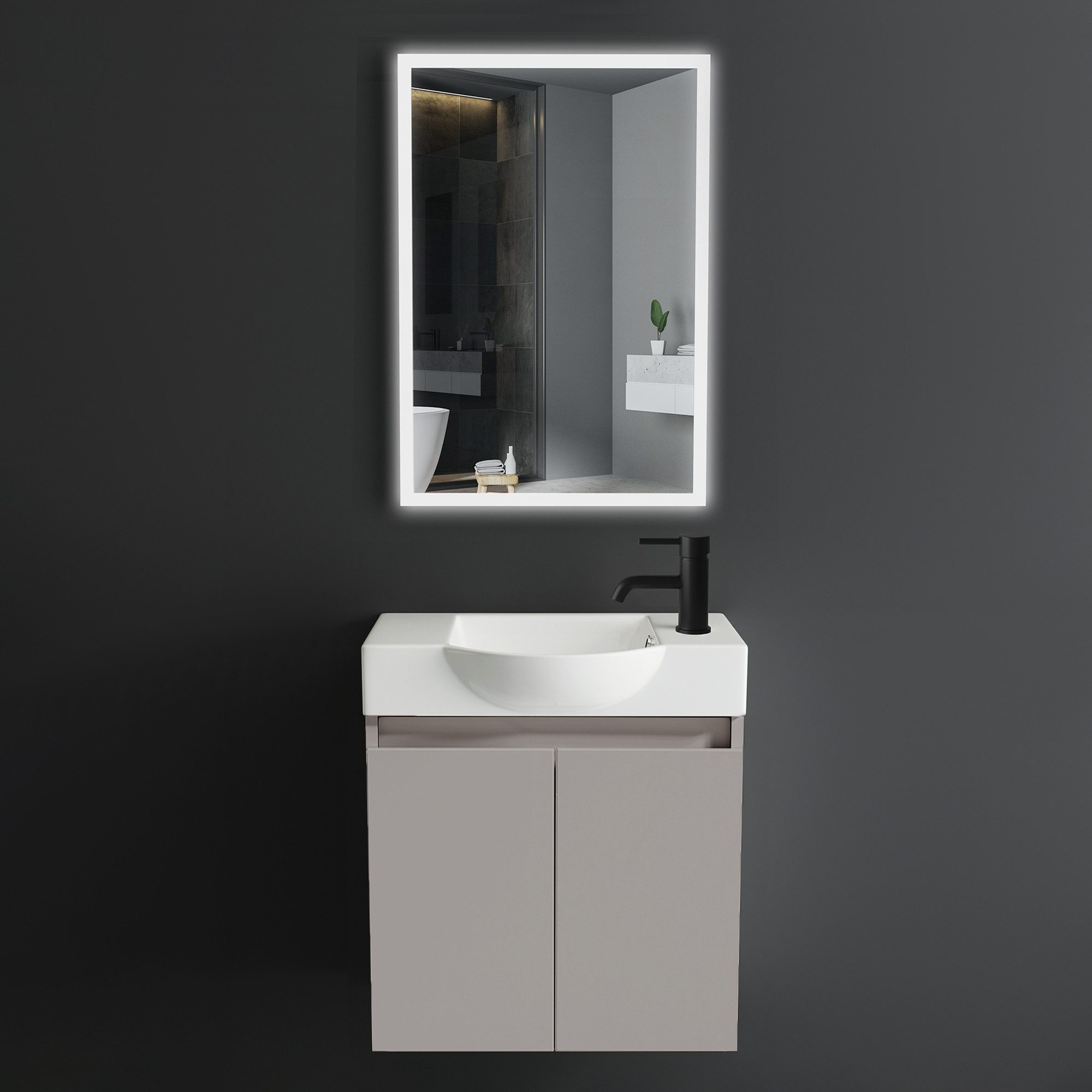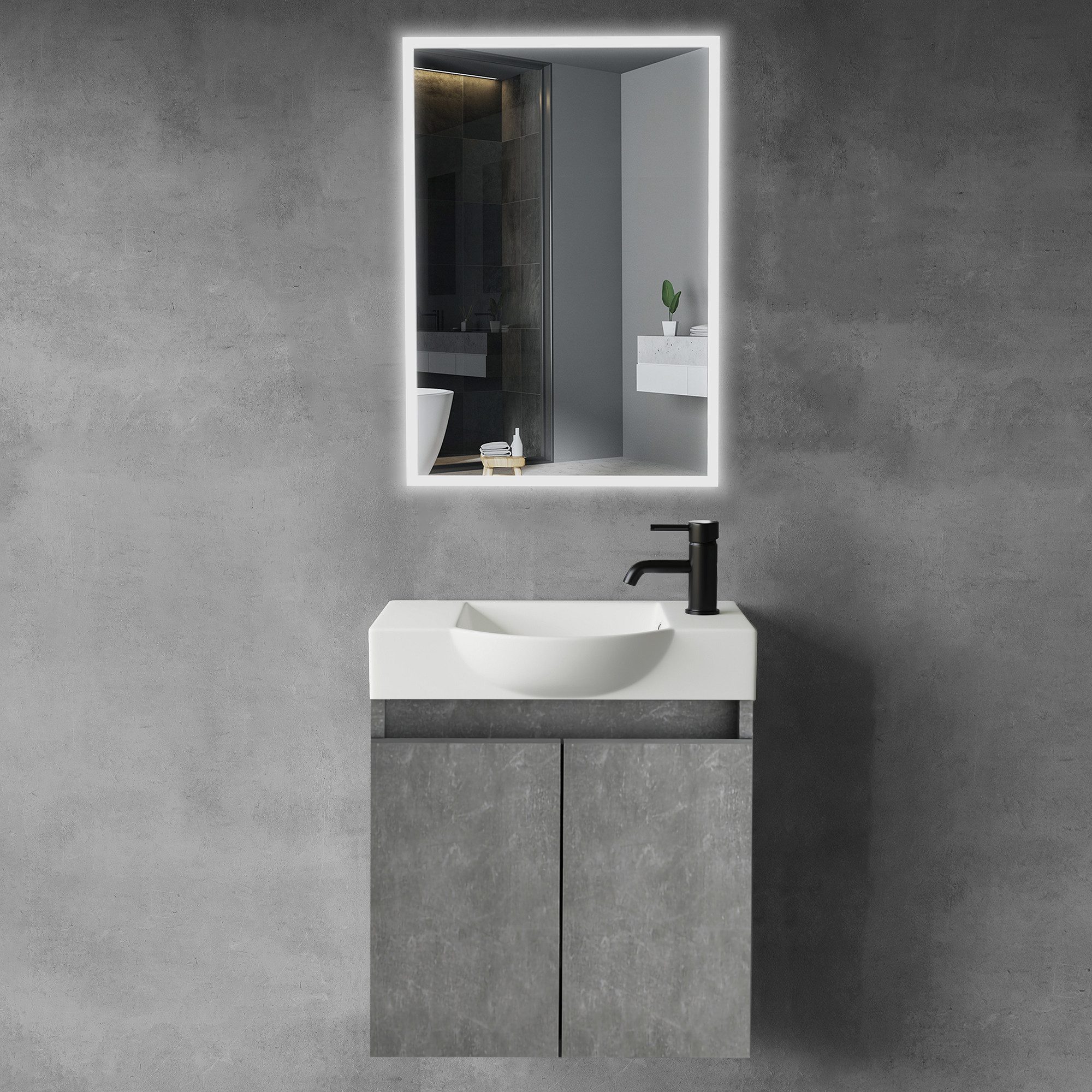 Das Alpenberger Badmöbel Set mit Waschbecken und Spiegel präsentiert sich als elegante Lösung für stilvolle Bäder.