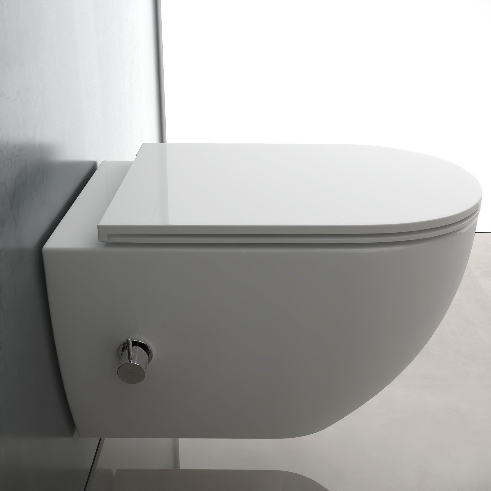Das elegante Keramik Hänge-WC mit Bidet Funktion bietet höchsten Komfort und moderne Hygiene in einem. Mit seiner spülrandlosen und nano-beschichteten Keramikschüssel bleibt das Dusch WC dauerhaft sauber und leicht zu pflegen. Der SoftClose Duroplast WC-Sitz sorgt für geräuschloses Спрятать, während das Tiefspüler-System eine gründliche und sparsame Spülung garantiert.