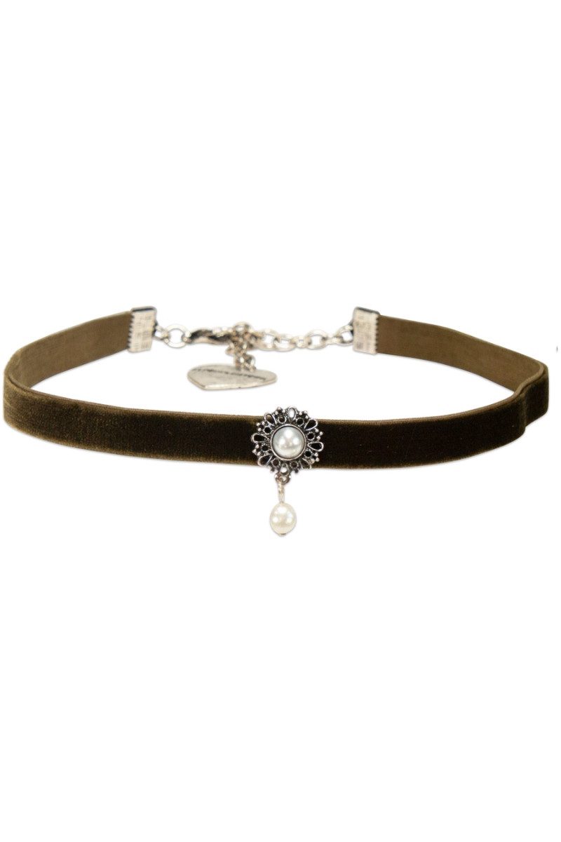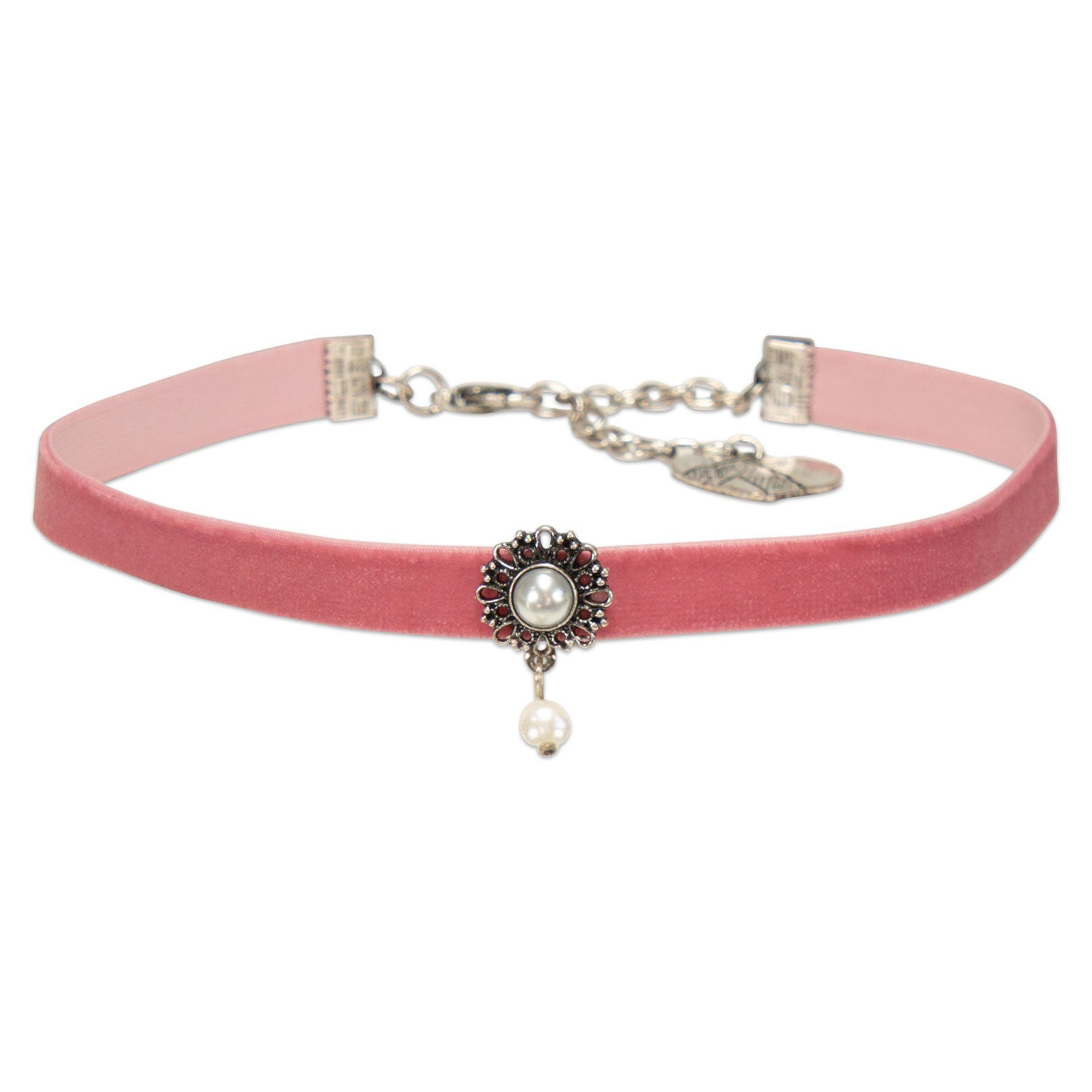 Длина Trachten Halskette: ca. 30 cm + 7 cm Verlängerungs-Kette, Breite Samtband mit Ornament rund und Perlee: 1 cm