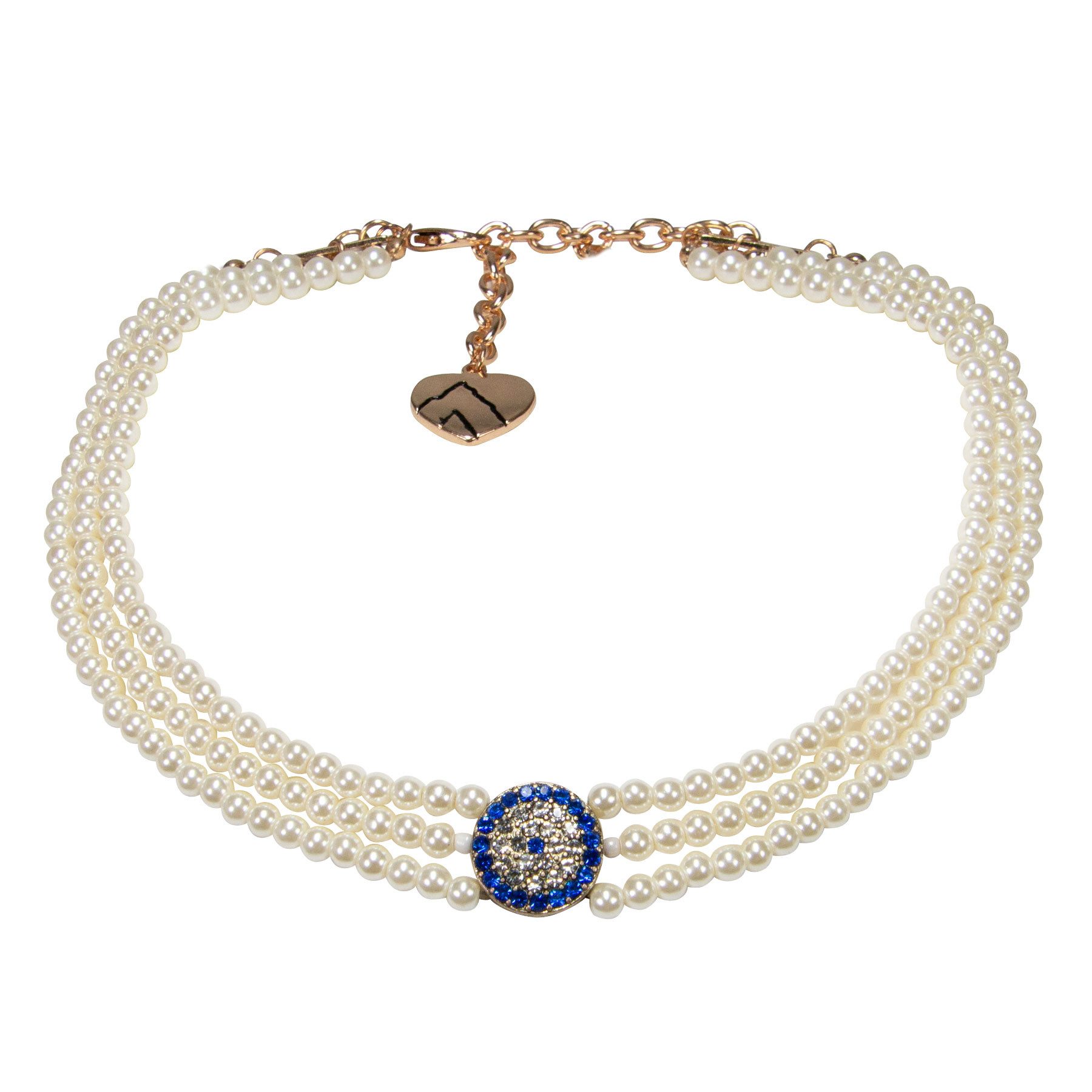 Trachten-Perlen-Kropfkette Strass-Rondo: Diese elegante Perlenkropfkette ist das perfekte Accessoire für jeden Anlass. Mit ihren drei Reihen aus wunderschönen Perlen und dem runden Straßelement verleiht sie jedem Outfit eine besondere Note. Die Trachtenkette passt perfekt zu traditionellen Trachten oder modernen, casual Looks. Ob Sie sie zu einem Dirndl oder zu einem T-Shirt und Jeans tragen, diese Kette wird garantiert Aufmerksamkeit erregen.