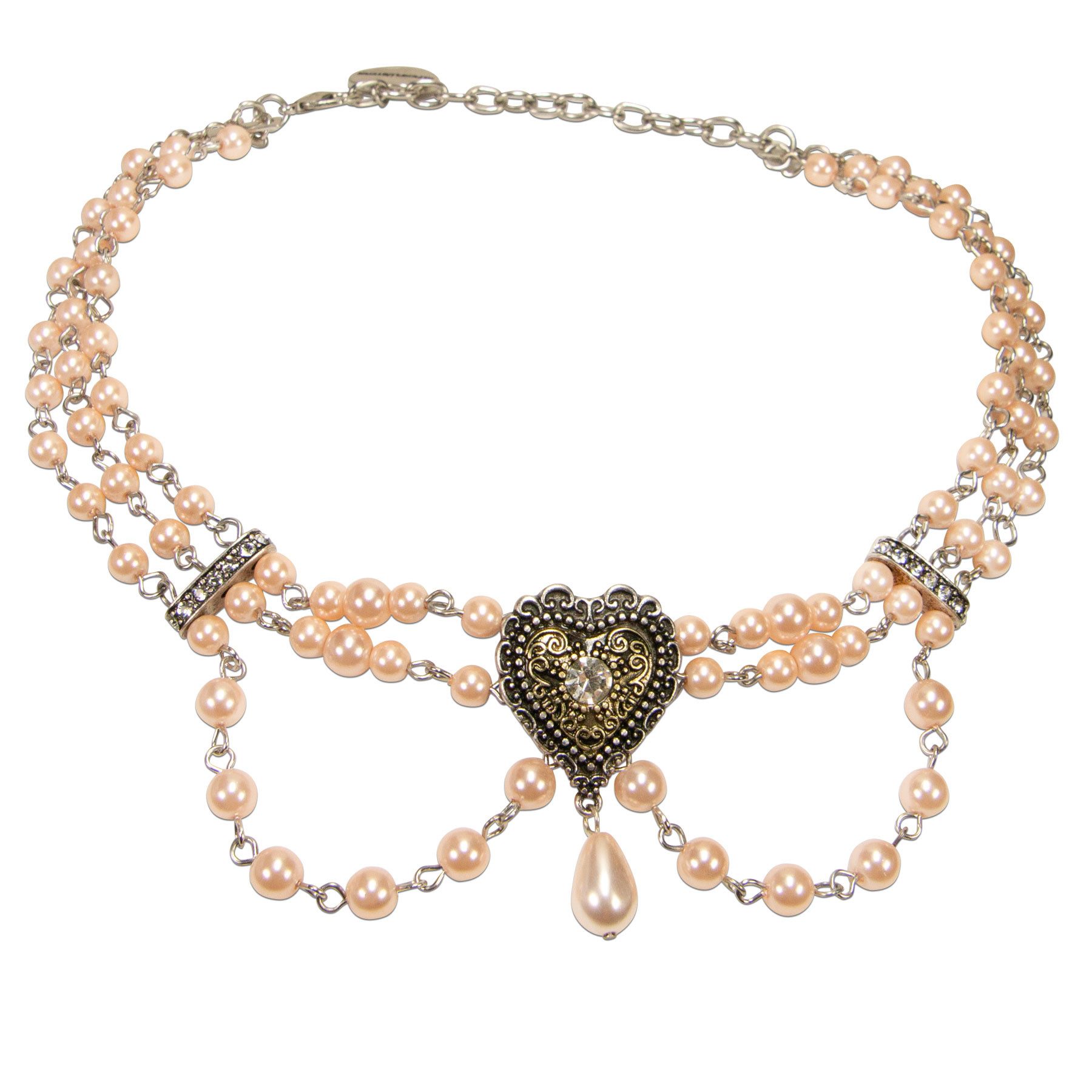 Trachten-Perlen-Kropfkette Trachtenherz: Diese exquisite Kropfkette aus Perlen ist das perfekte Accessoire, um Ihr Dirndl-Outfit noch eleganter zu gestalten. Die Kette besteht aus drei Reihen von zarten Perlen, die aufwendig verarbeitet wurden, um ein perfektes Finish zu gewährleisten. In der Mitte der Kette befindet sich ein wunderschönes, bicolor-farbenes Herz, das die traditionelle Optik des Dirndls mit modernem Stil und Eleganz verbindet. Die Kette ist in der Длина verstellbar und kann individuell an Ihre Halsweite angepasst werden. Ob auf dem Oktoberfest, einer Hochzeit oder einer anderen festlichen Veranstaltung – mit dieser Perlenkette ziehen Sie garantiert alle Blicke auf sich. Gönnen Sie sich dieses zauberhafte Accessoire und machen Sie Ihr Dirndl-Outfit komplett!