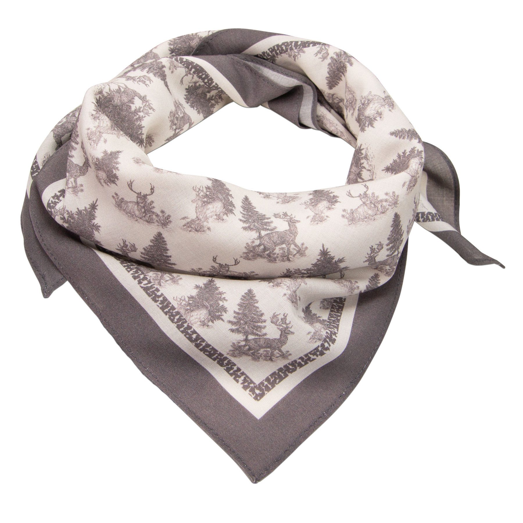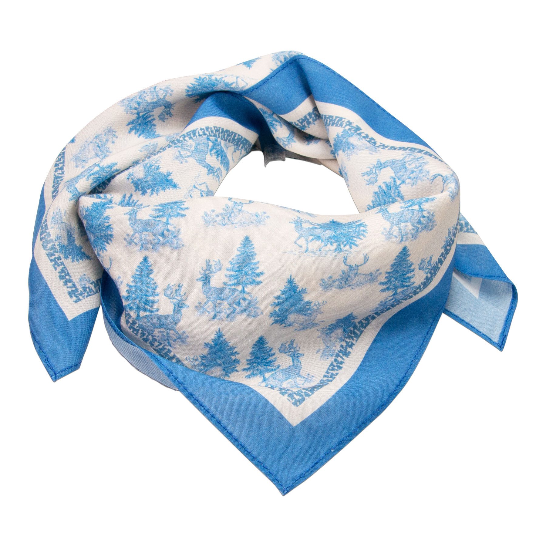 Trachten-Nickituch Hirsch im Wald Toile de Jouy: Verleihe deinem Trachtenoutfit das gewisse Etwas mit diesem edlen Nickituch aus hochwertiger Viskose. Das kunstvolle Toile du Jouy Design zeigt detaillierte Waldszenen mit Hirschen und verleiht deinem Look eine besondere Eleganz. Die seidige Textur der Viskose sorgt für höchsten Tragekomfort und ist dabei angenehm atmungsaktiv. Ideal für jede Jahreszeit, ist dieses Nickituch der perfekte Begleiter für traditionelle Trachtenanlässe und verleiht deinem Stil eine stilvolle Note.