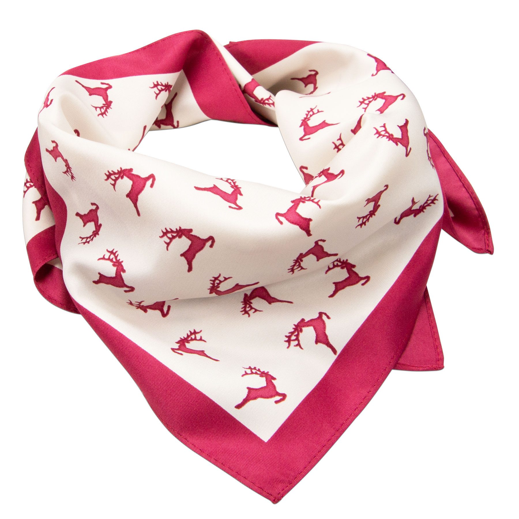 Trachten-Nickituch Springende Hirsche: Elegantes Nickituch mit springenden Hirschen als Design. Die Zweifarbigkeit in Rosa und Braun unterstreicht dabei die Schlichtheit des Trachtentuchs.