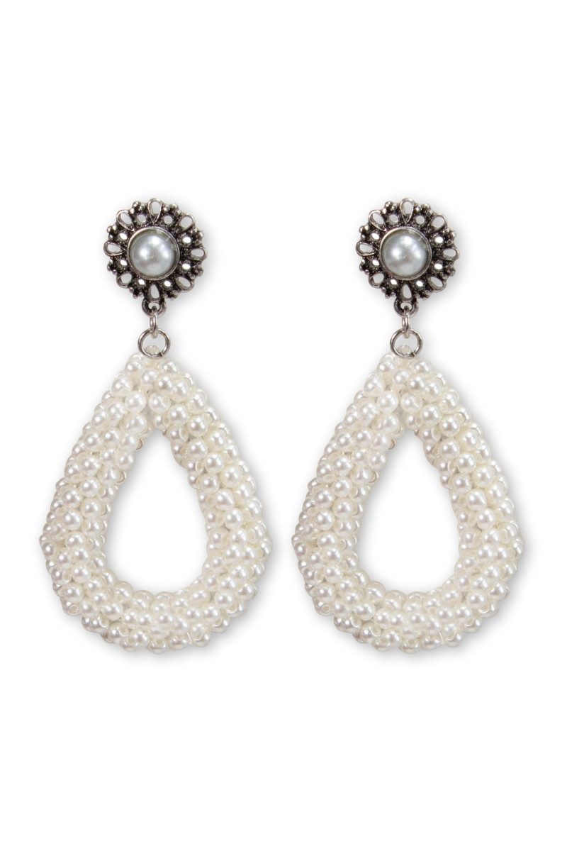 Elegante Trachten Ohrstecker mit Ornamentikblüte in Altsilber und tropfenförmigem Anhänger