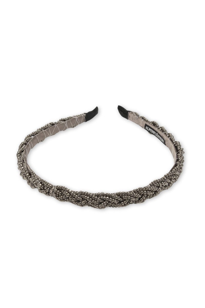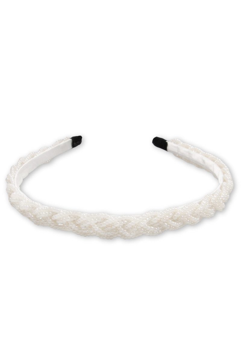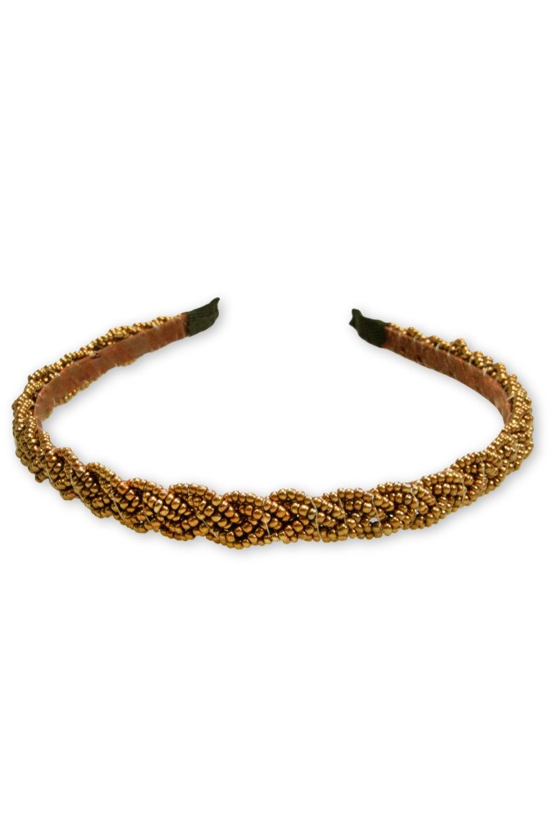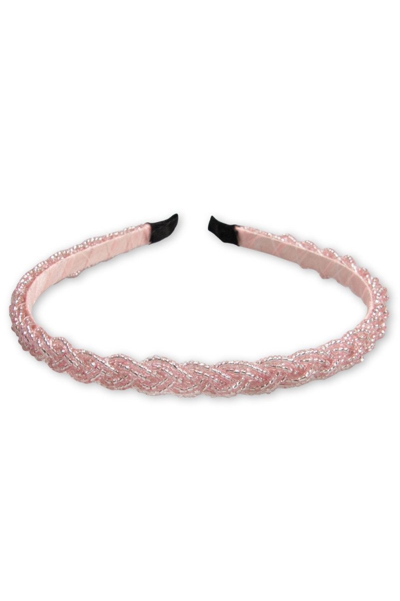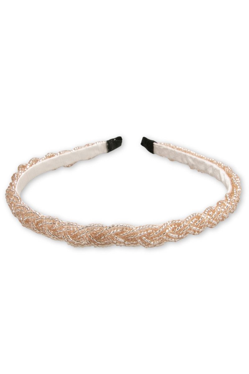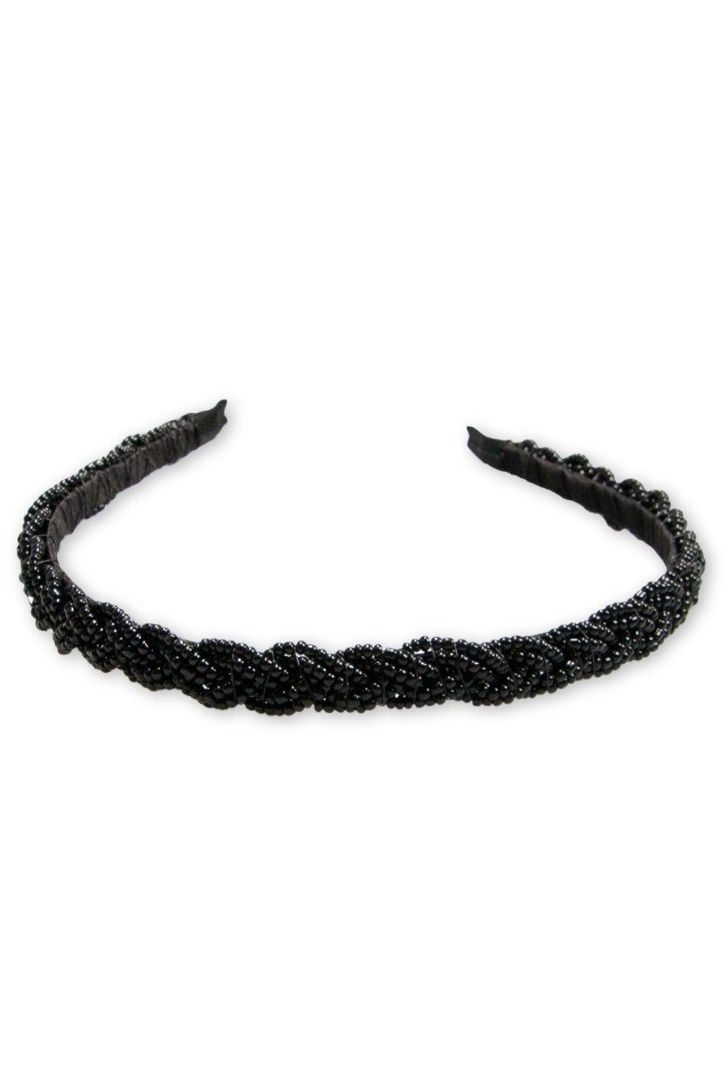 Schmaler Haarreif mit sechs edel glänzenden Glasperlensträngen im geflochtenen Look