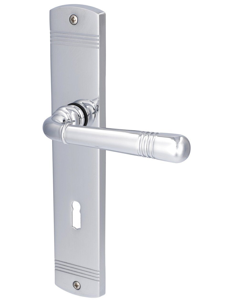 Lochung: Buntbart BB | Варианты: Drücker/Drücker | Form Schild: abgerundet | DIN-Richtung: rechts/links | Lochabstand: 72 mm | Höhe Schild: 23,3 cm | Breite Schild: 4,5 cm | Stärke Schild: 8,0 mm | Ausladung Drücker: 6,3 cm | Длина Drücker: 12,4 cm | Durchmesser Drücker: Ø 1,9 cm | Maße Vierkantstift: 8,0 mm | Verschraubung: sichtbar | Geeignet für Türstärken von-bis: 37 - 42 mm | Material: Messing | Oberfläche: verchromt | Farbe: edelstahlfarbig | Lieferumfang: Komplettgarnitur für beide Seiten der Tür, Befestigungsmaterial |