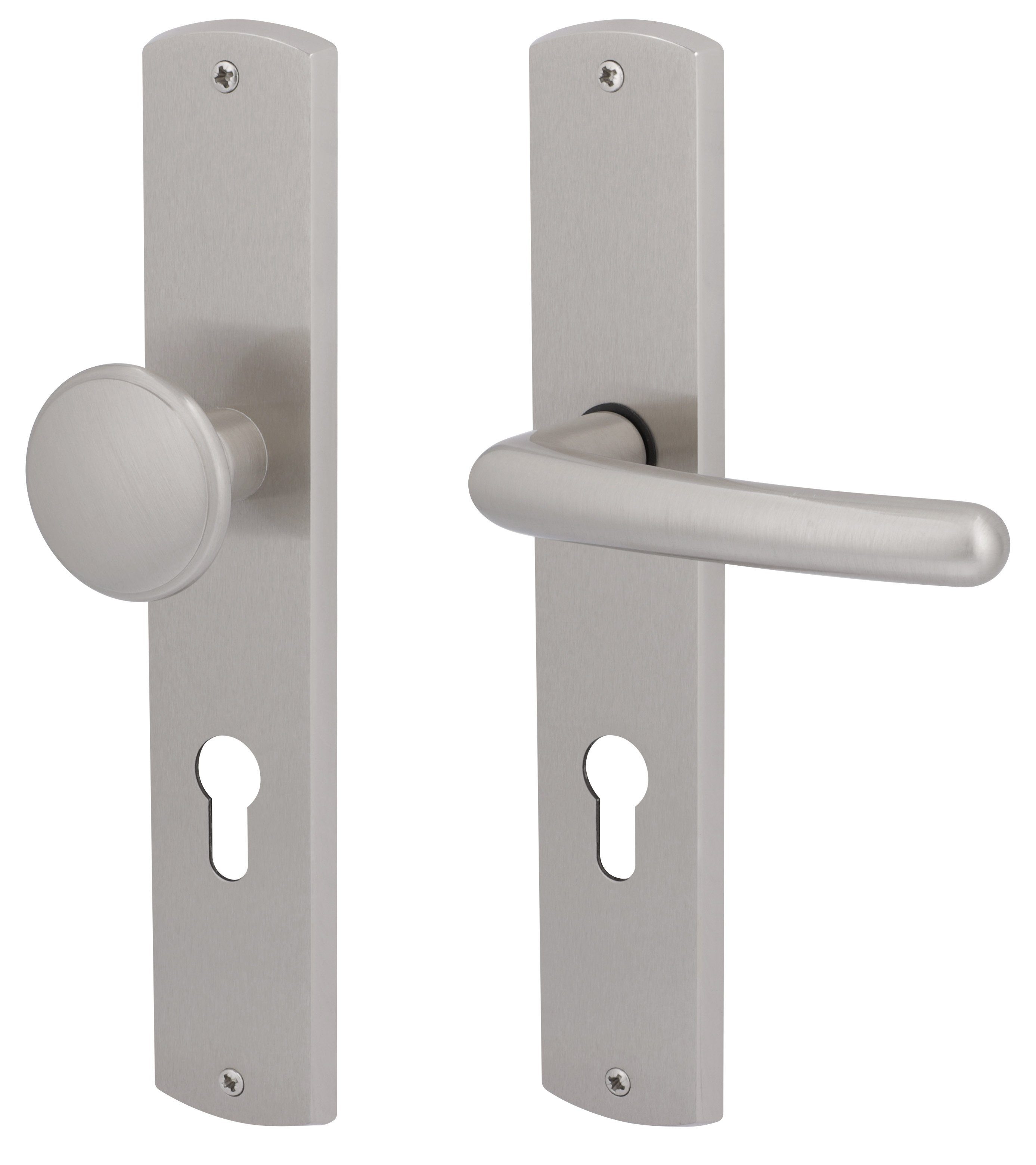 Lieferumfang | 1 x Drückerlochteil, 1 x PZ Knopflangschild, incl. Schrauben, 1 x PZ Langschild, incl. Schrauben, 1x Wechselstift |