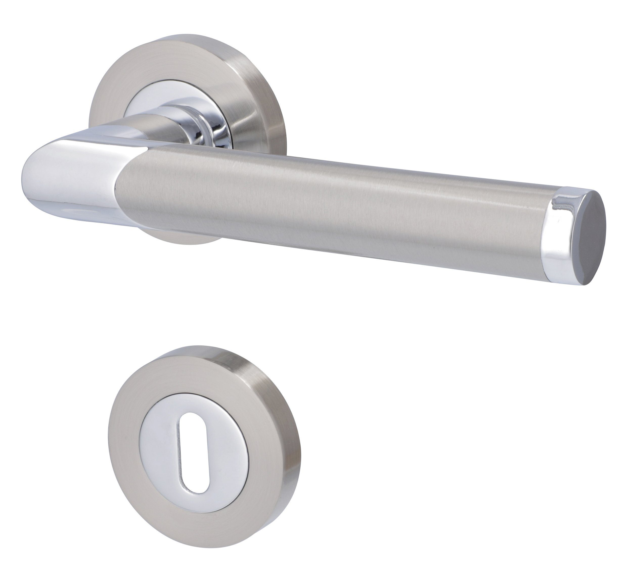 Alpertec Türbeschlag Rosettengarnitur L17/A136 Chrom pol./ES-färbig sat. für Zimmertüren BB (1 St)