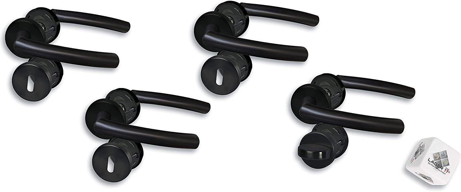 Alpertec Türbeschlag Rosettengarnituren für Zimmertüren mit Buntbartlochung und Bad/WC (4 St., Spar-Set), Edelstahl schwarz