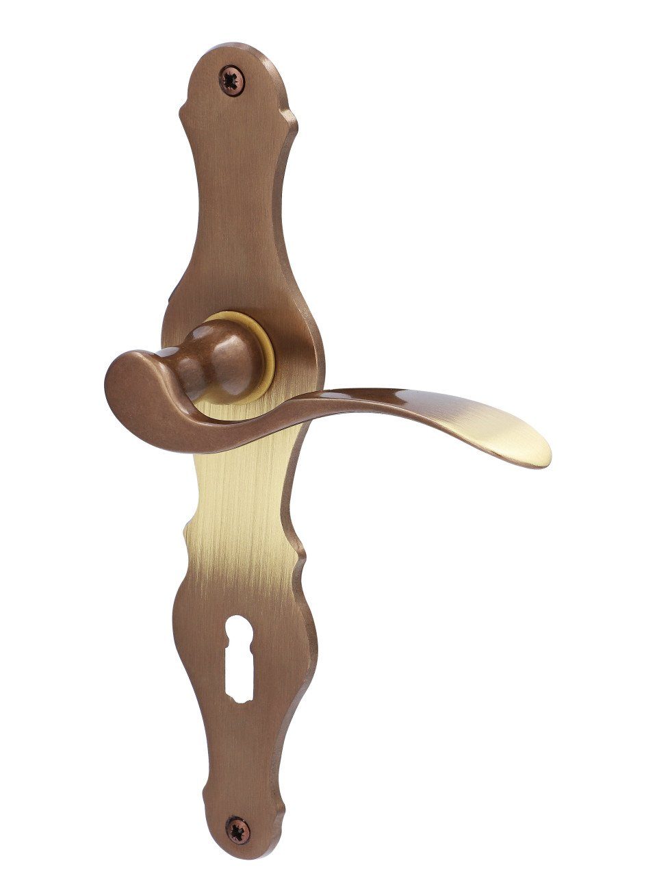 Lochung: Buntbart BB | Варианты: Drücker/Drücker | Form Schild: verschnörkelt | DIN-Richtung: rechts/links | Lochabstand: 72 mm | Höhe Schild: 21,5 cm | Breite Schild: 4,8 cm | Stärke Schild: 4,0 mm | Ausladung Drücker: 6,0 cm | Длина Drücker: 11,5 cm | Durchmesser Drücker: Ø 2,5 cm | Maße Vierkantstift: 8,0 mm | Verschraubung: sichtbar | Geeignet für Türstärken von-bis: 37 - 42 mm | Material: Messing | Oberfläche: brüniert | Farbe: bronze | Lieferumfang: Komplettgarnitur für beide Seiten der Tür, Befestigungsmaterial |