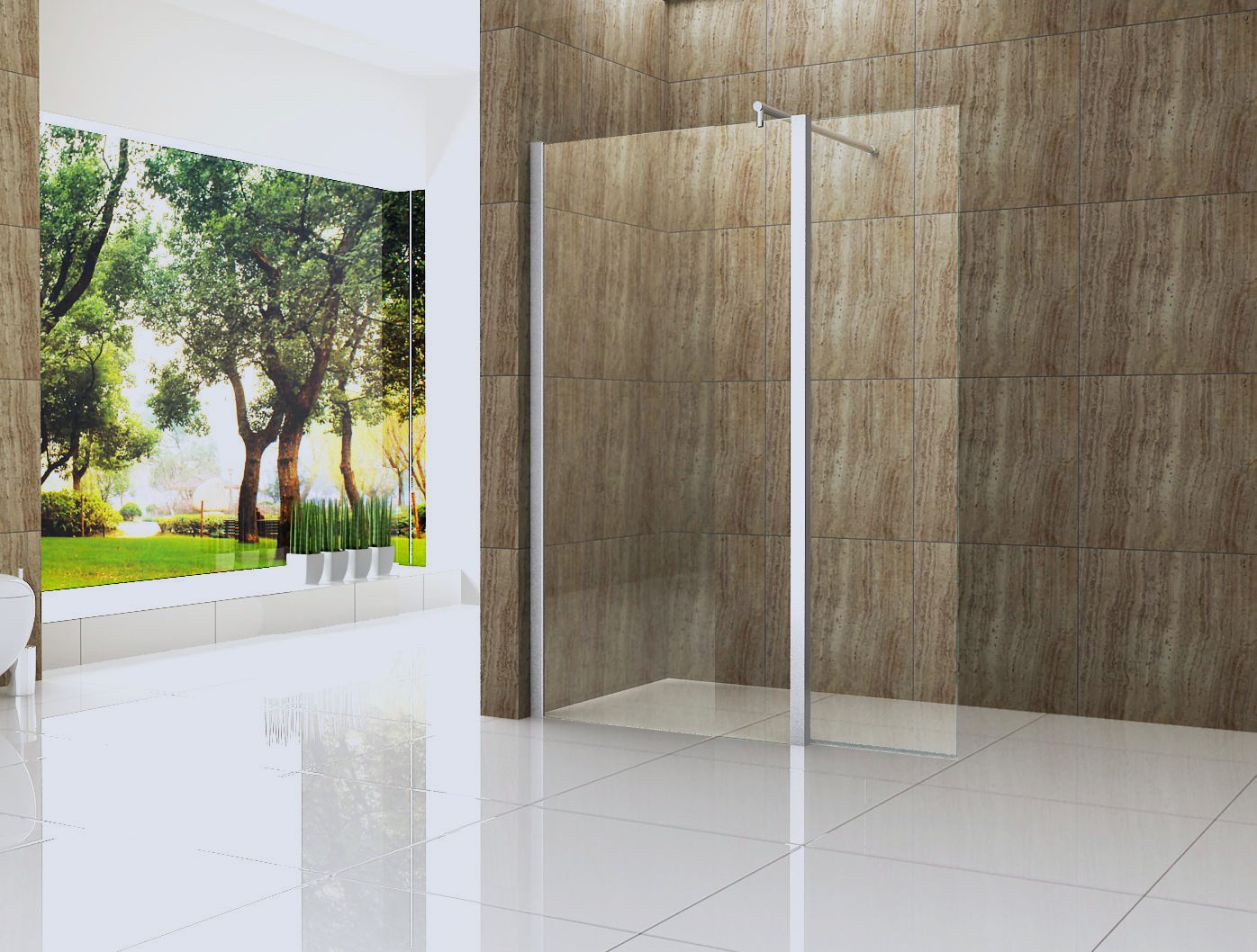 Diese Erweiterung wird an einer freistehenden Seite der Duschwand angebracht und dient z. B. als Spritzschutz. Zudem passt das Seitenteil auch an allen Gläsern mit 10 mm Stärke und