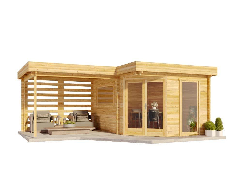 Das großzügige Vordach unseres 5-Eck Gartenhaus Pepe lädt zu geselligen Sommernachmittagen mit Familie und Freunden ein. Wegen der vielfältigen Nutzungsmöglichkeiten, die das Haus durch seine Architektur bietet, gehört das Gartenhaus Pepe zu unseren beliebtesten Gartenhäusern. Genießen Sie den Komfort des Gartenhauses auch im Frühjahr oder Herbst im lichtdurchfluteten Innenraum.