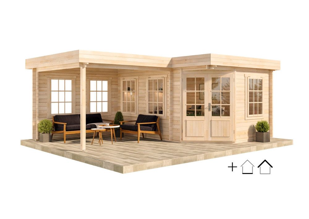 Dieses großzügige Gartenhaus begeistert mit stabiler Blockbohlen-Bauweise, viel natürlichem Licht durch fünf große Ausstellfenster und einem praktischen Seitendach.