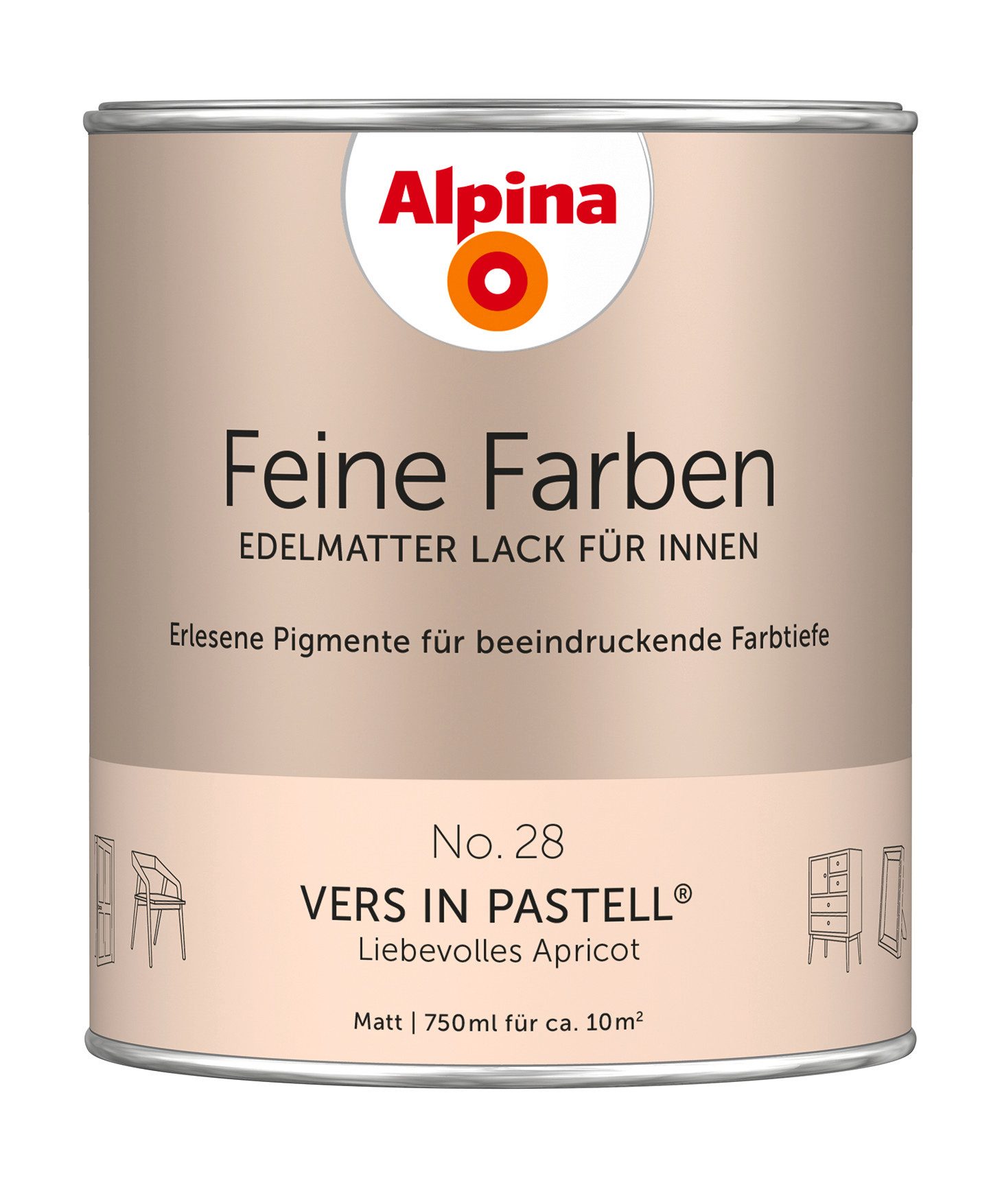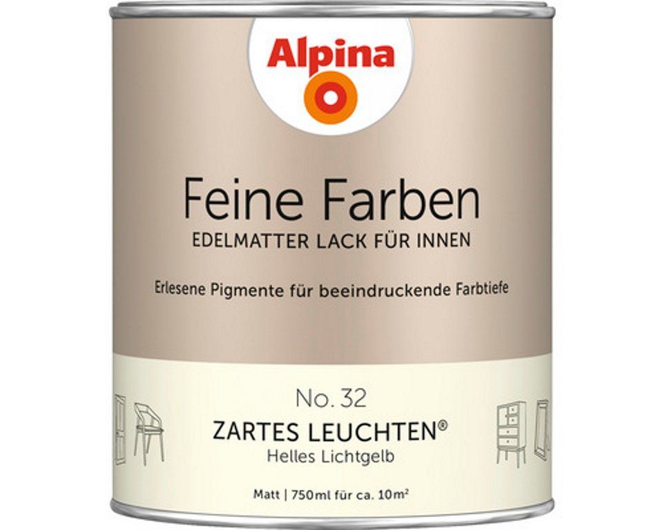 34 edelmatte, zeitlose Buntlacke mit beeindruckender Farbtiefe und perfektem Verlauf. Mit Alpina Feine Farben Lack verleihen Sie Ihren Möbeln, Türen oder Deko-Objekten einen edelmatten, noblen Charakter und setzen Ihr Zuhause gekonnt in Szene. Jede einzelne dieser zeitlos-klassischen Nuancen besitzt eine einzigartige Persönlichkeit. In harmonischer Kombination mit den Feine Farben Wandfarben schaffen sie ein edles, vollendetes Raumgefühl.