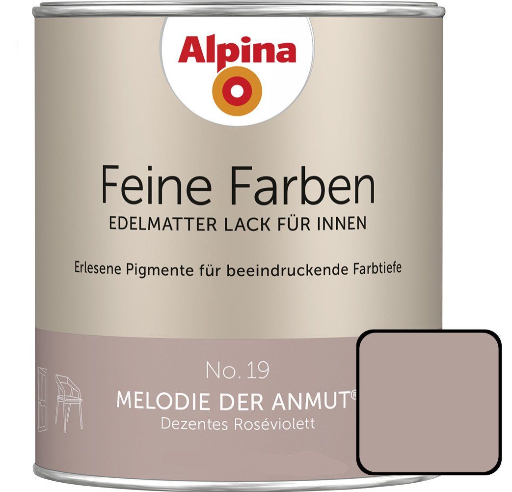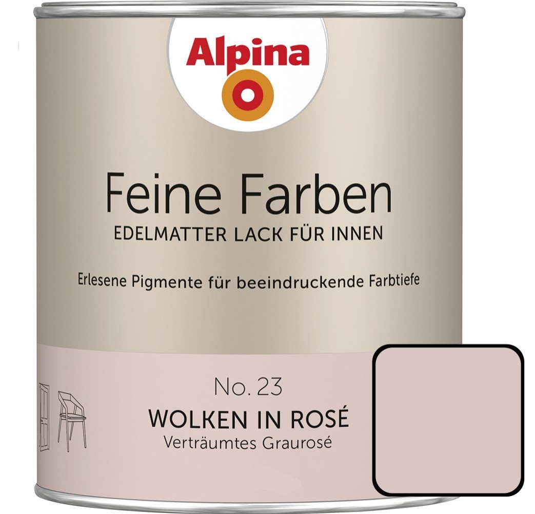 34 edelmatte, zeitlose Buntlacke mit beeindruckender Farbtiefe und perfektem Verlauf. Mit Alpina Feine Farben Lack verleihen Sie Ihren Möbeln, Türen oder Deko-Objekten einen edelmatten, noblen Charakter und setzen Ihr Zuhause gekonnt in Szene. Jede einzelne dieser zeitlos-klassischen Nuancen besitzt eine einzigartige Persönlichkeit. In harmonischer Kombination mit den Feine Farben Wandfarben schaffen sie ein edles, vollendetes Raumgefühl.