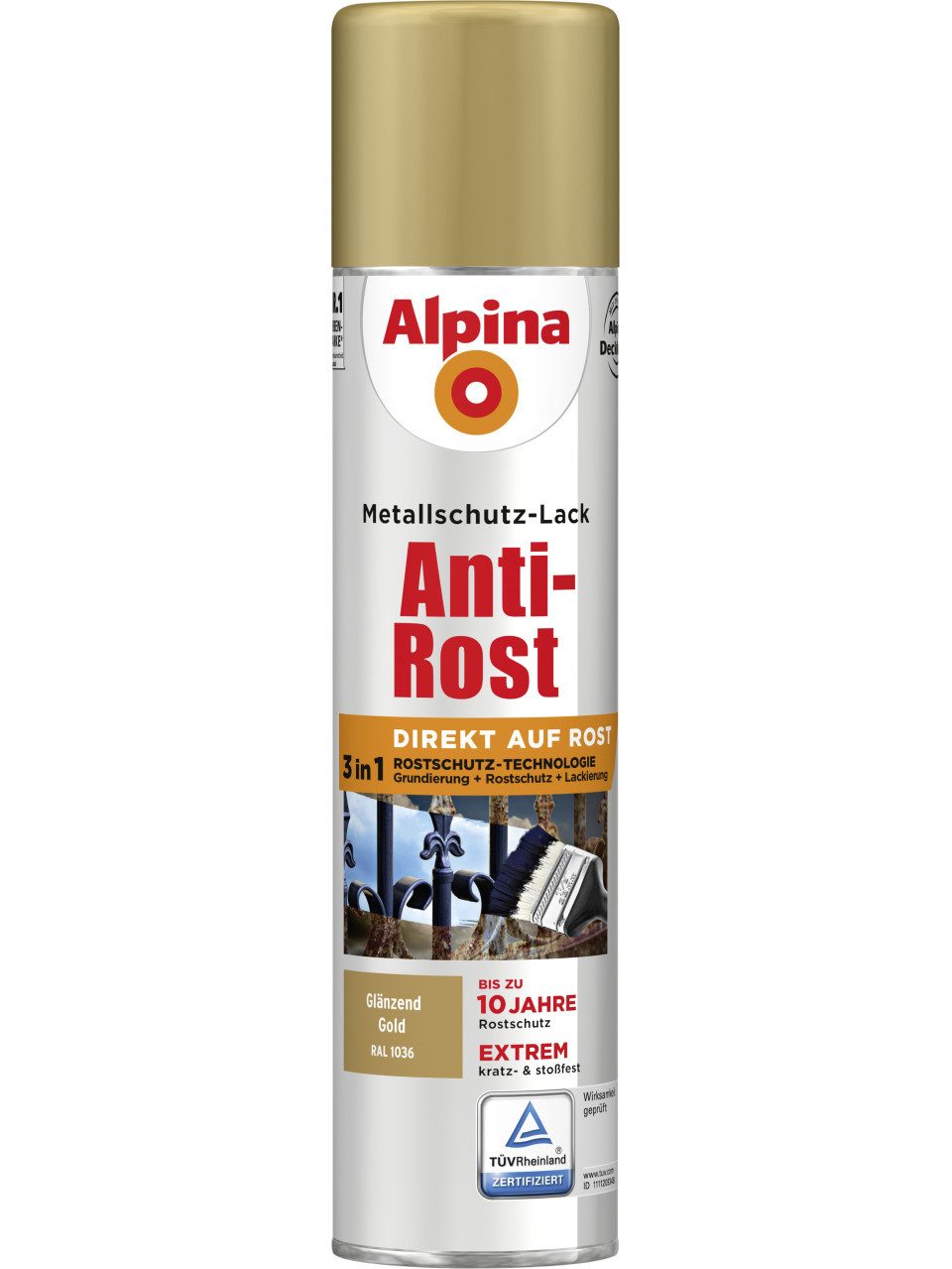 Alpina Anti-Rost Metallschutz-Lack vereint eine ausgezeichnet haftende Grundierung, wirkungsvollen Langzeit-Korrosionsschutz und eine dickschichtige Lackierung. Damit verringert sich der Zeitaufwand der Verarbeitung deutlich.