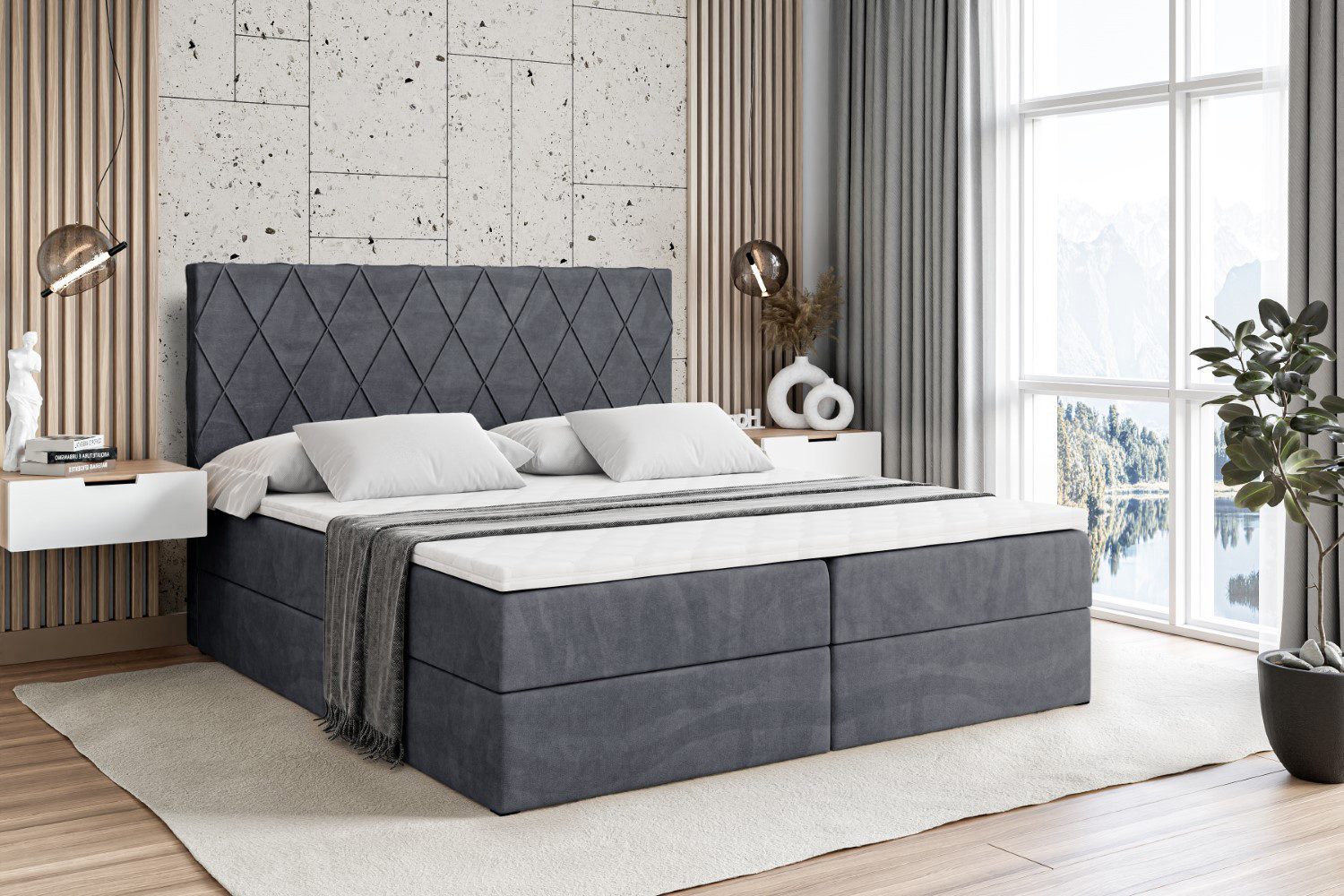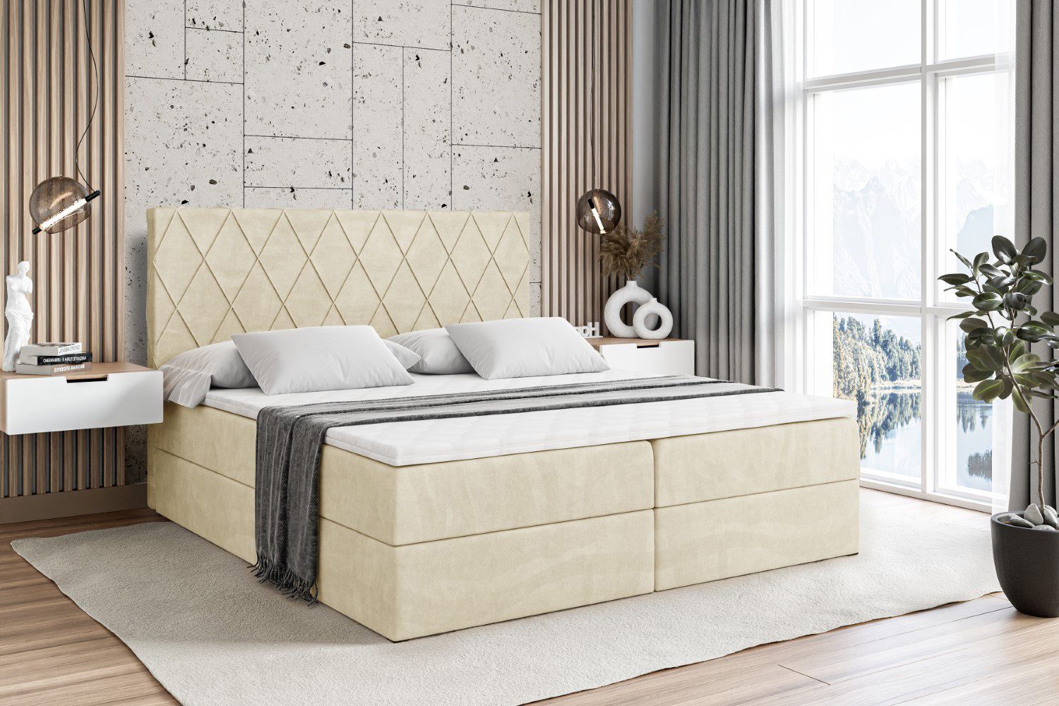 - Lieferumfang: Boxspring Bett 120/140/160/180/200 x 212 x 110 cm mit Rahmen, Matratze und Topper