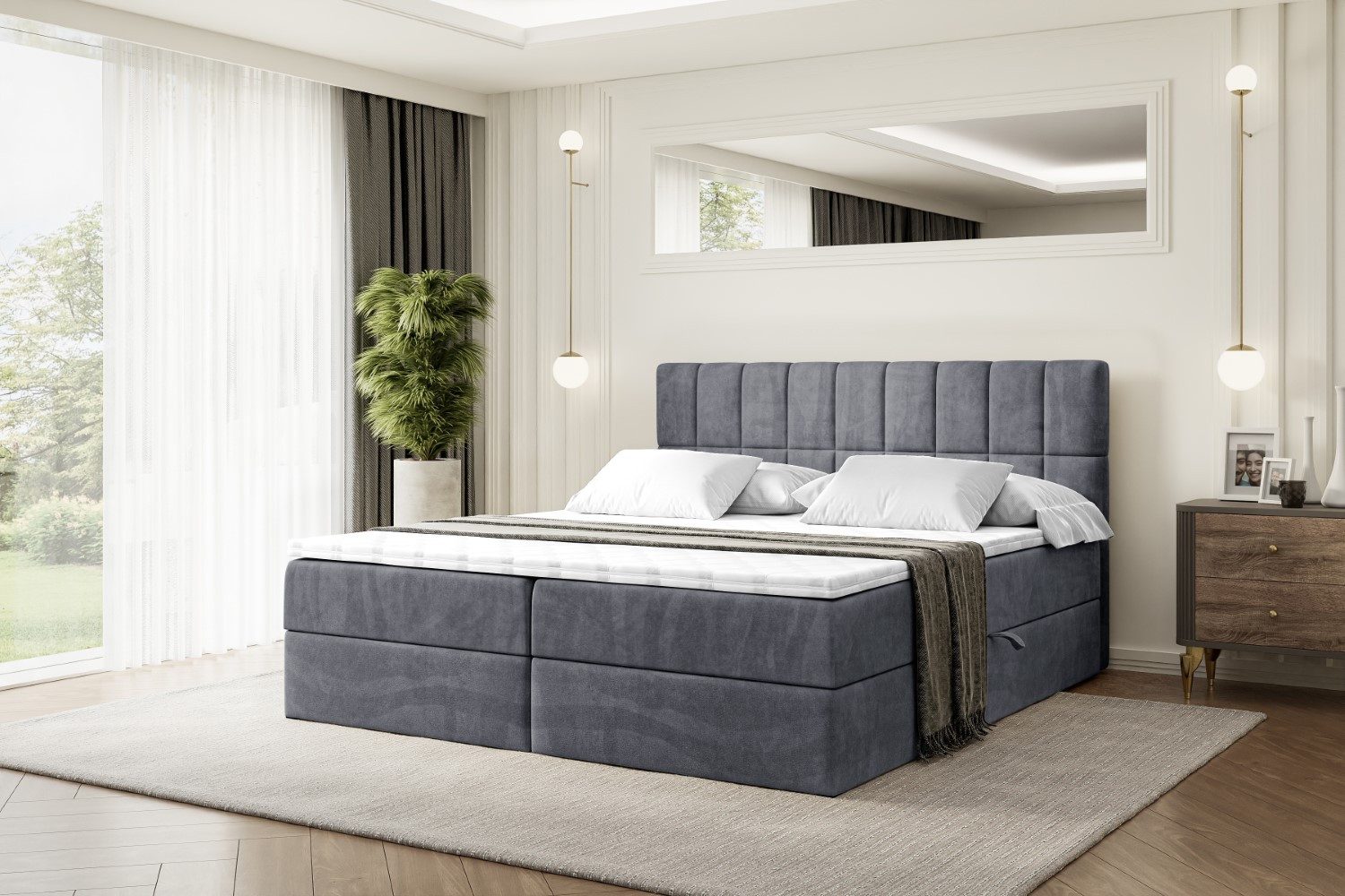 - Lieferumfang: Boxspring Bett 120/140/160/180/200 x 105 x 207 cm mit Rahmen, Matratze und Topper