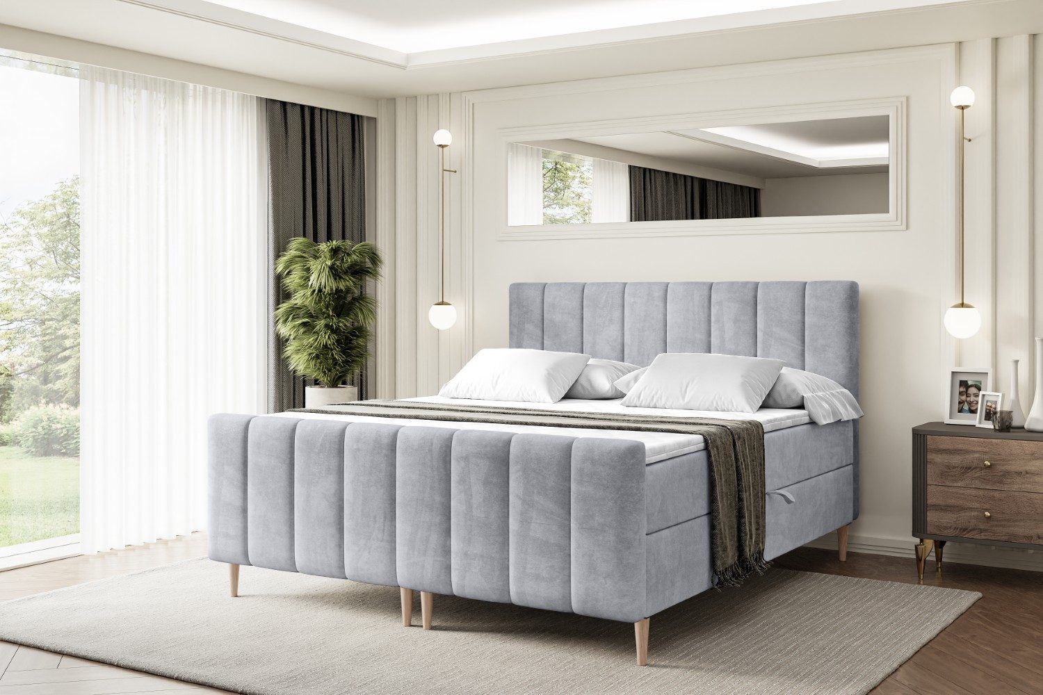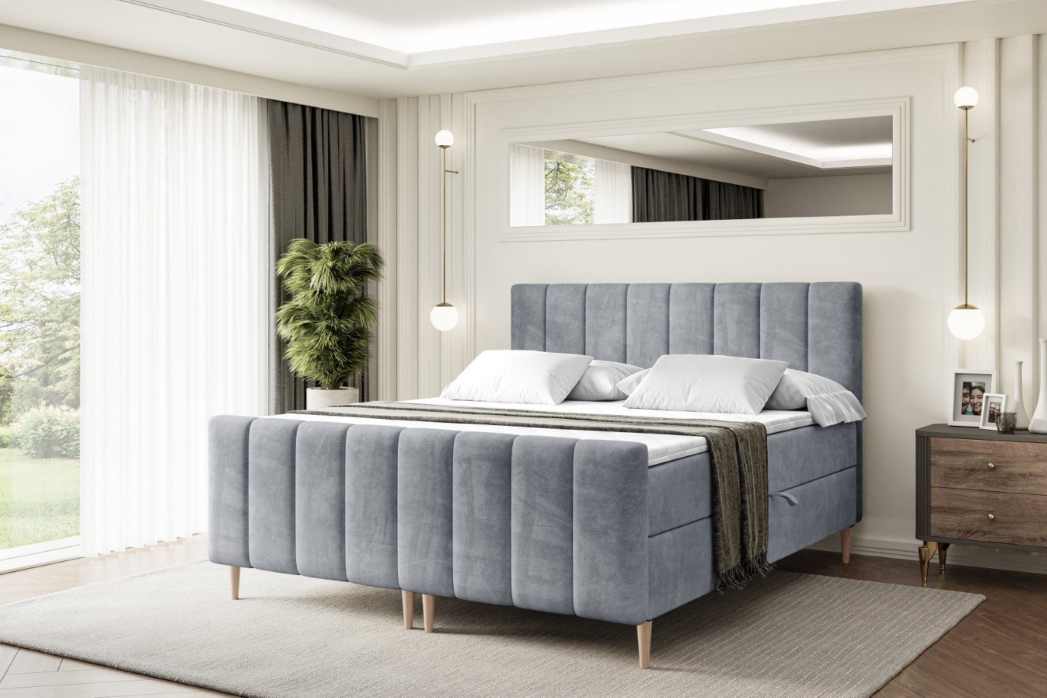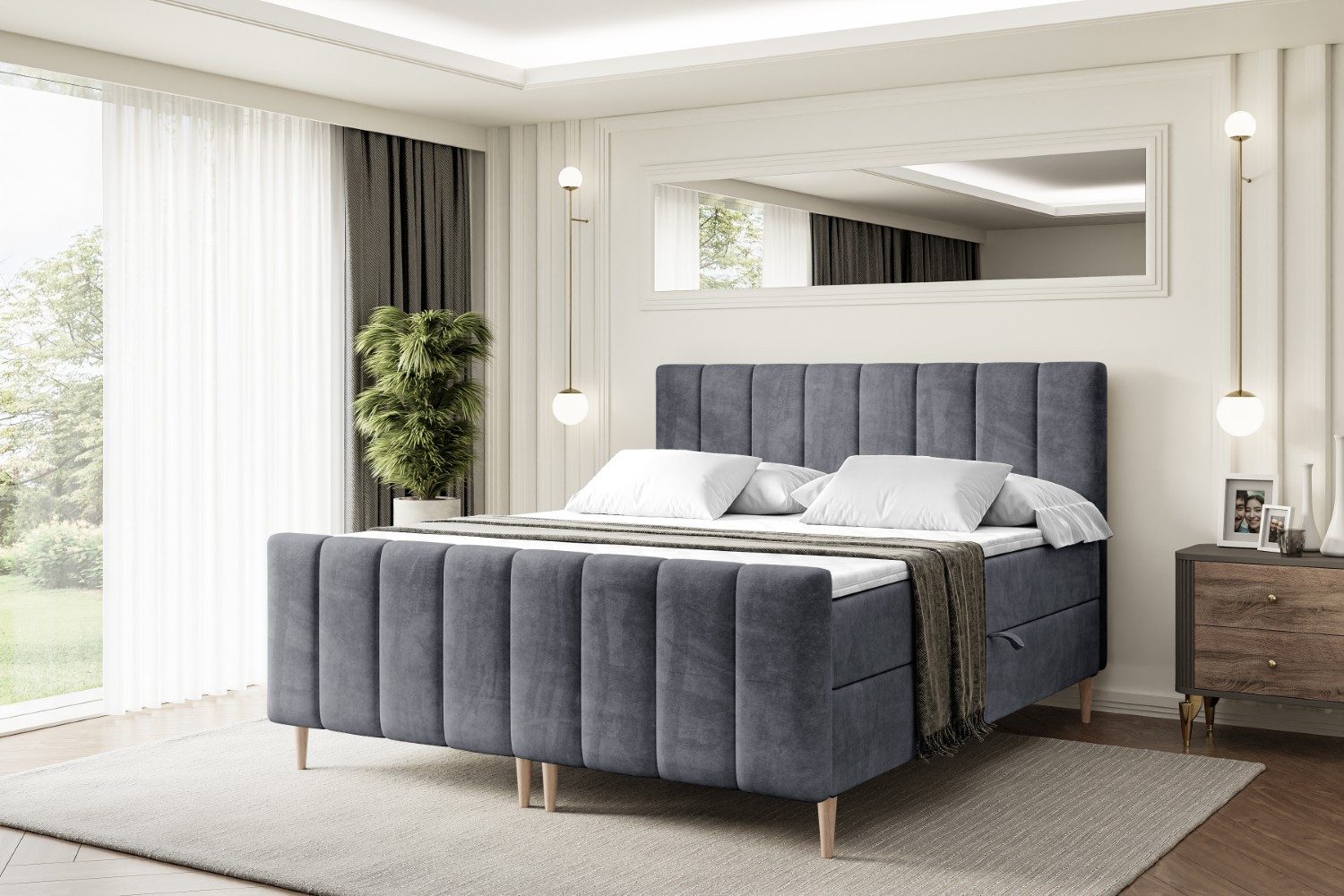 Das Bett ist mit zwei Bettkästen ausgestattet, die viel Platz für Bettwäsche und Kissen bieten und für ein aufgeräumtes Schlafzimmer sorgen.