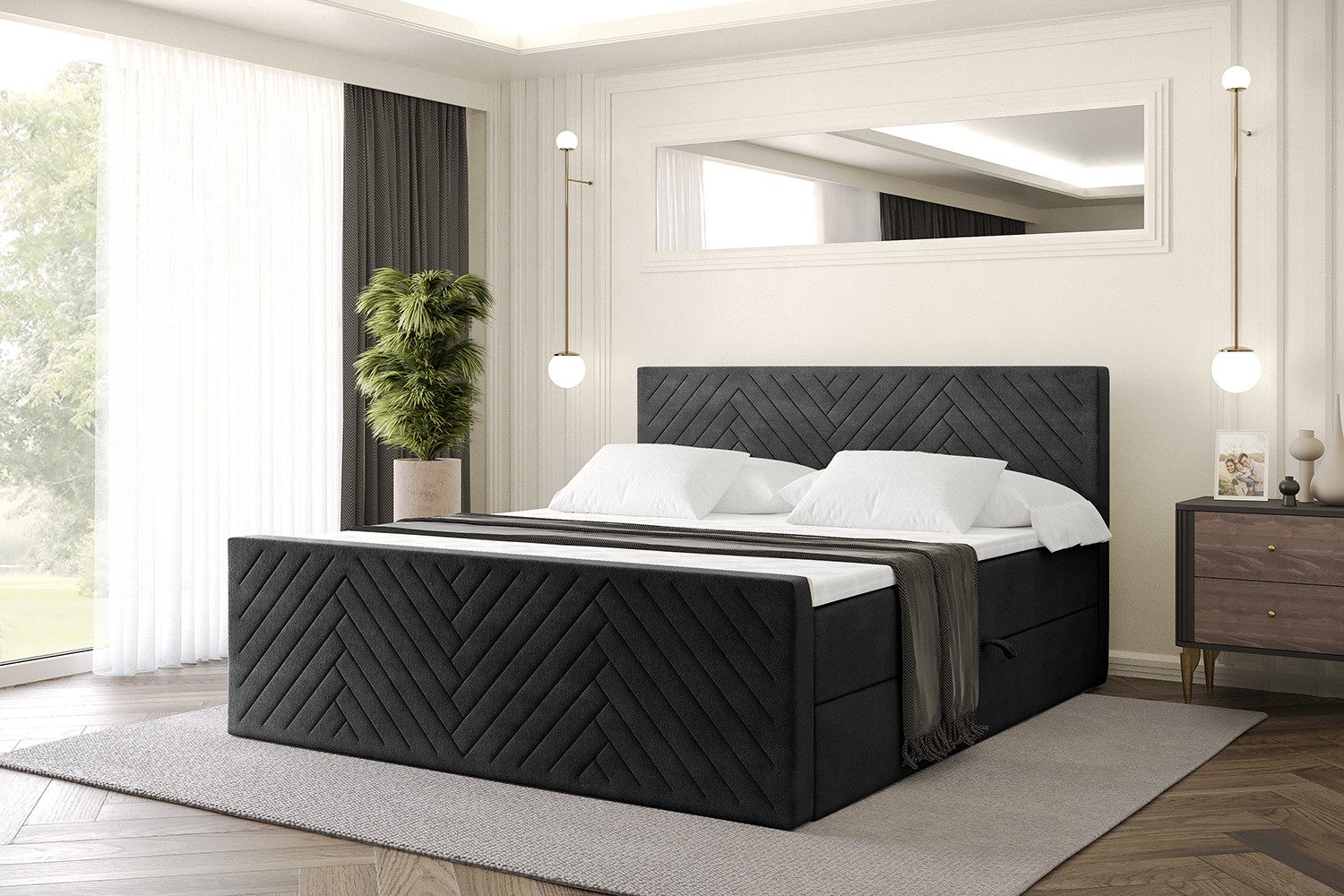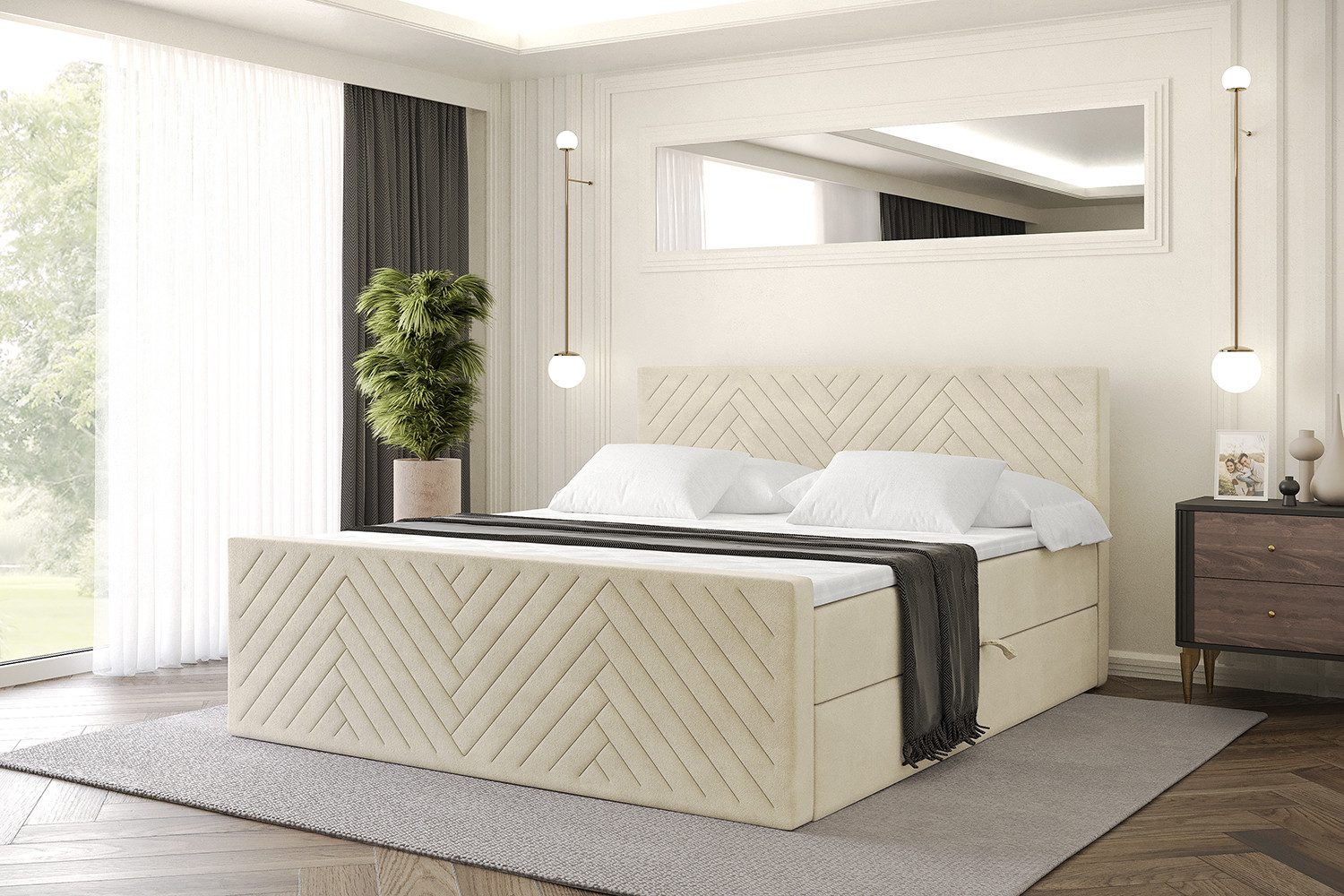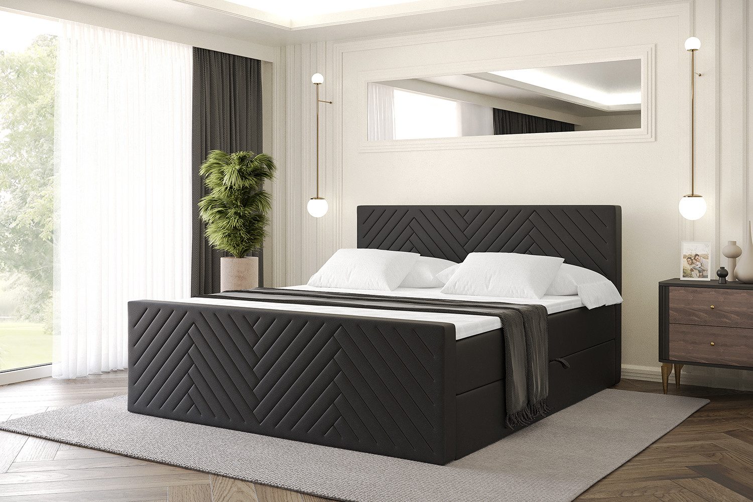 Das Bett ist mit zwei Bettkästen ausgestattet, die viel Platz für Bettwäsche und Kissen bieten und für ein aufgeräumtes Schlafzimmer sorgen.