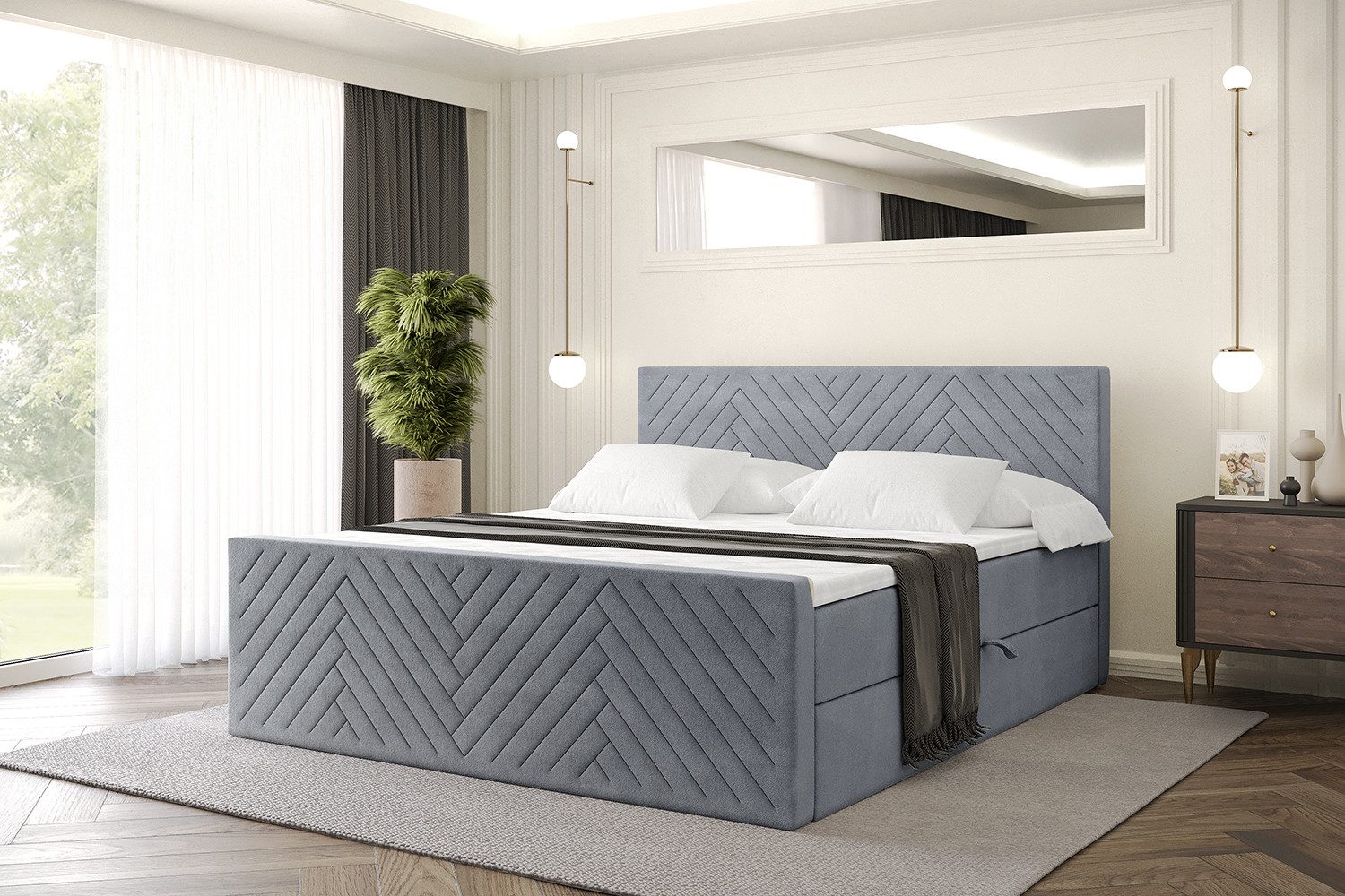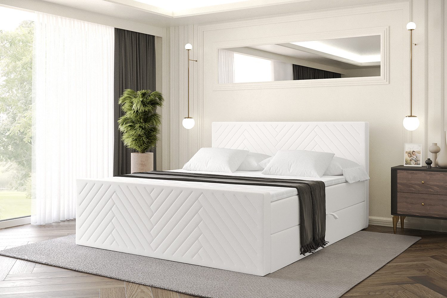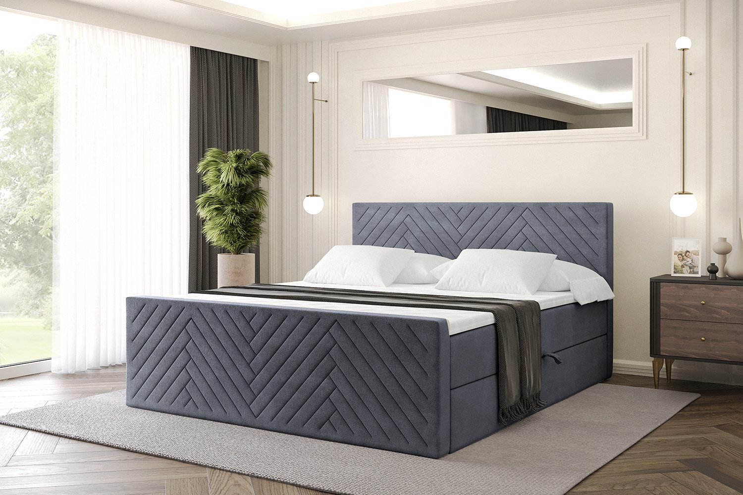 Das Bett ist mit zwei Bettkästen ausgestattet, die viel Platz für Bettwäsche und Kissen bieten und für ein aufgeräumtes Schlafzimmer sorgen.