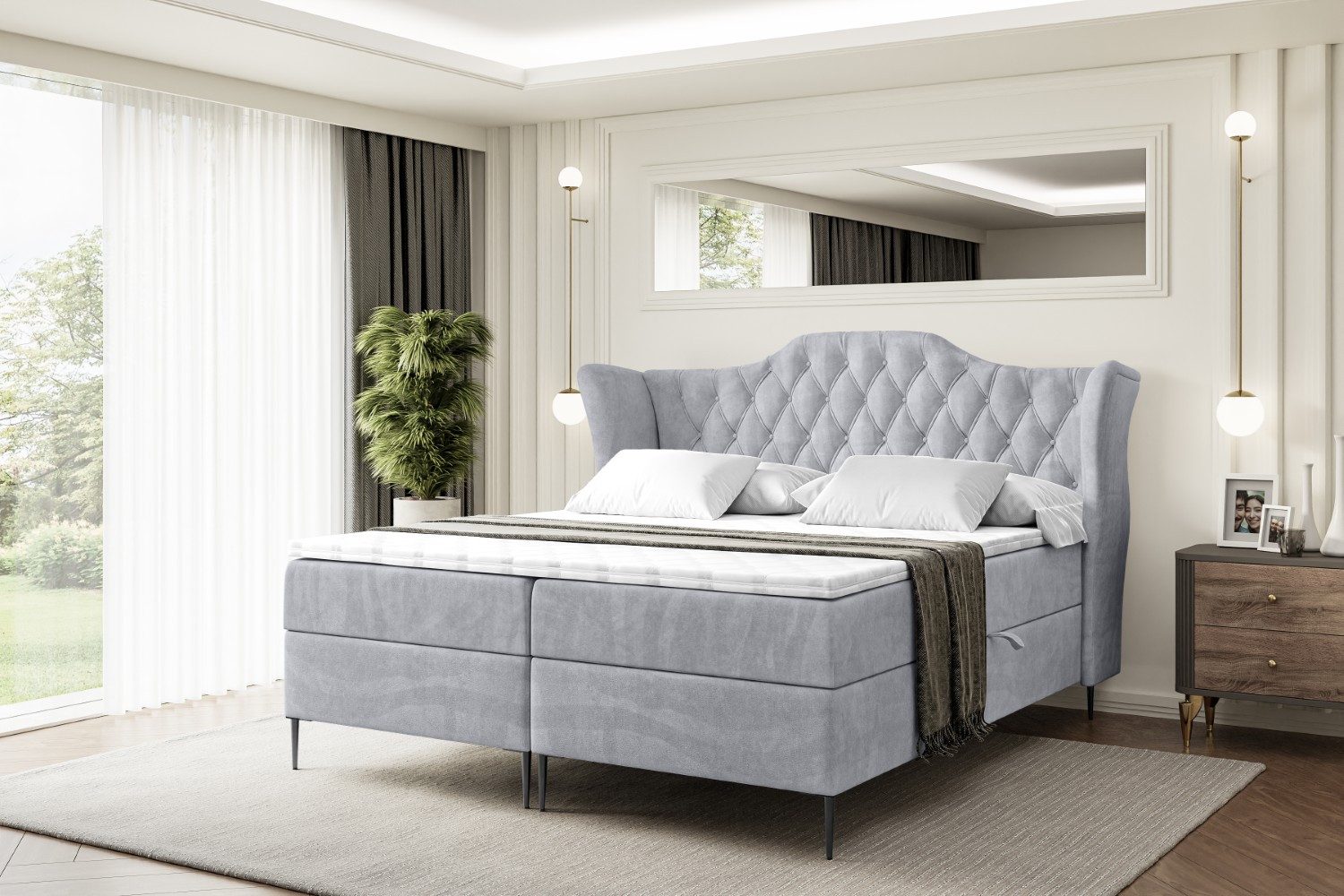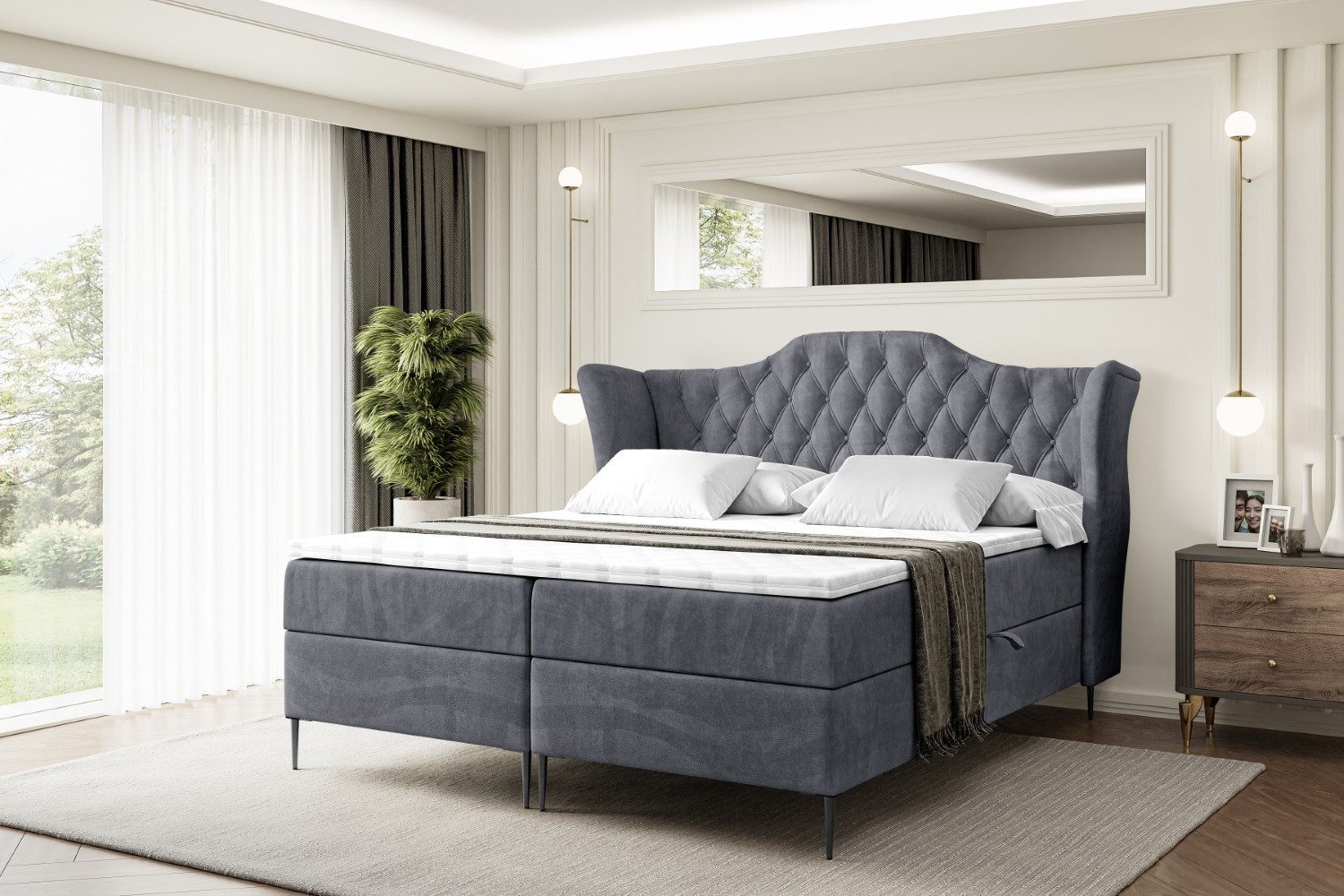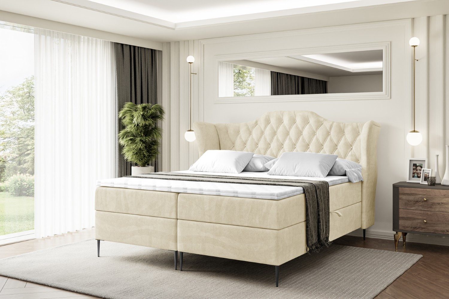 - Lieferumfang: Boxspring Bett 120/140/160/180/200 x 207 x 120 cm mit Rahmen, Matratze und Topper