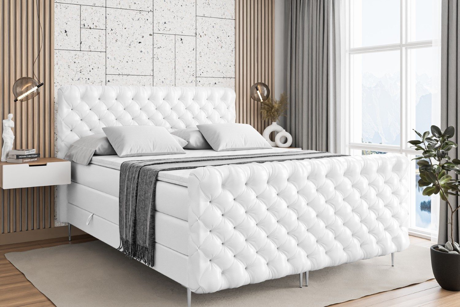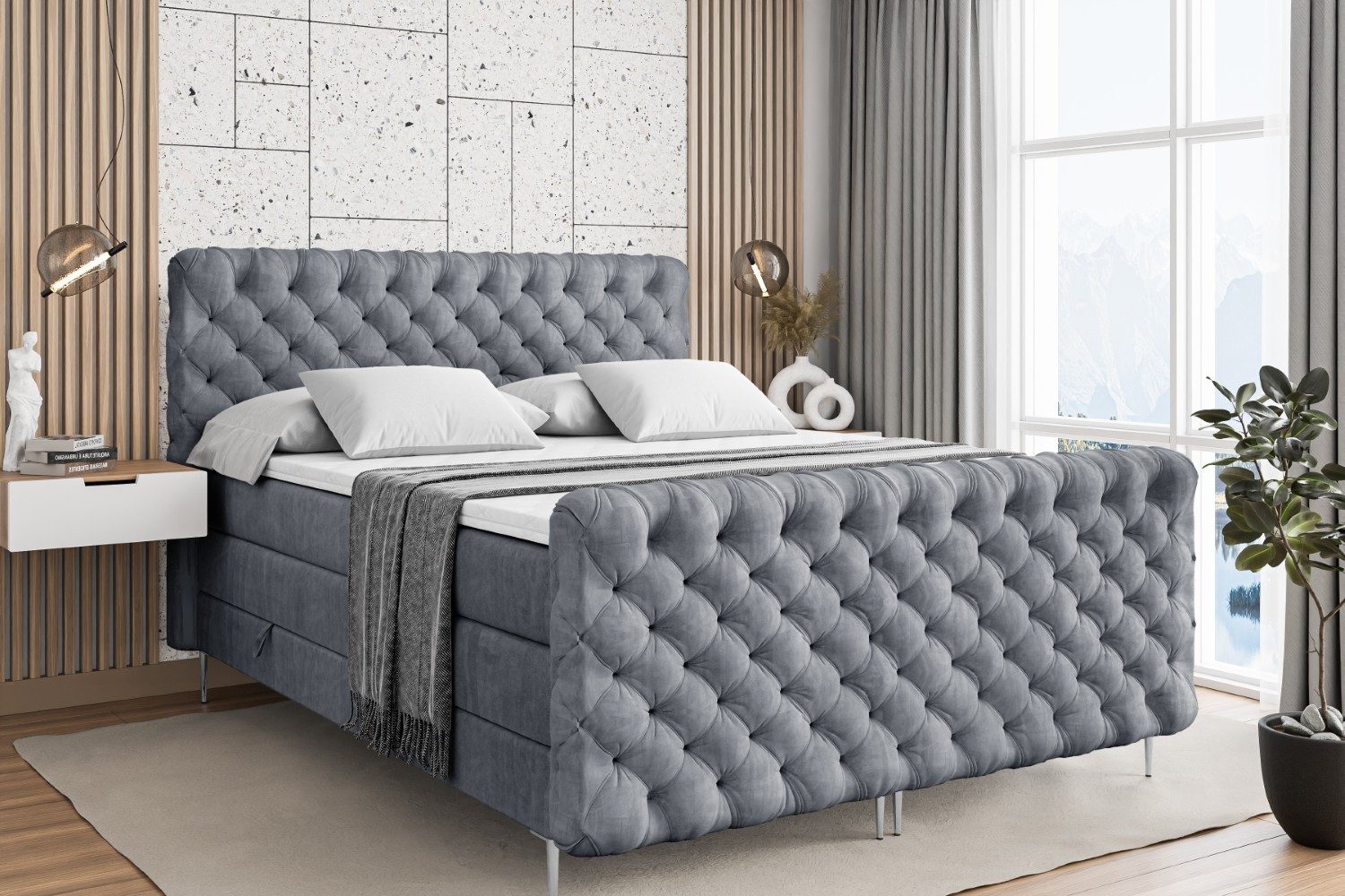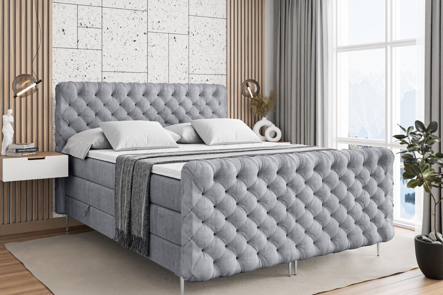 - Lieferumfang: Boxspring Bett 120/140/160/180/200 x 215 x 130 cm mit Rahmen, Matratze und Topper