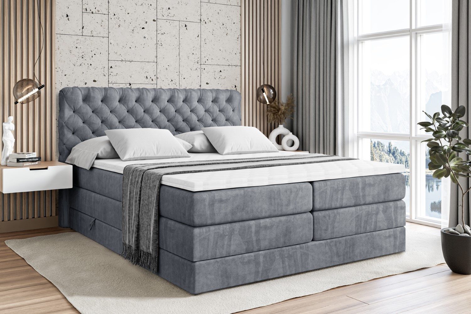 - Lieferumfang: Boxspring Bett 120/140/160/180/200 x 207 x 115 cm mit Rahmen, Matratze und Topper