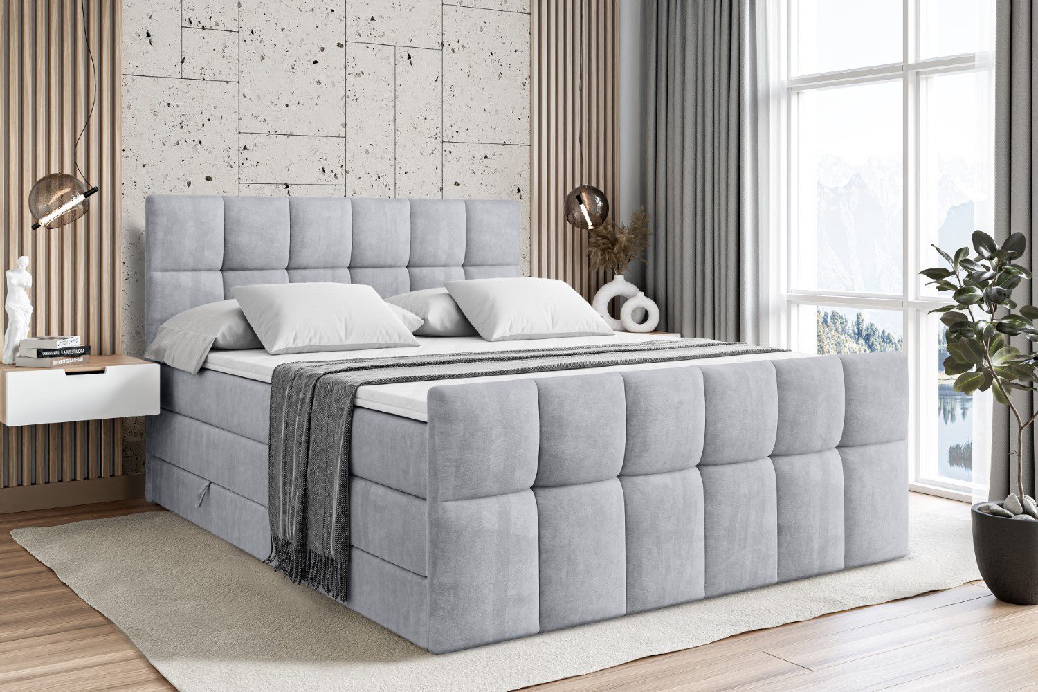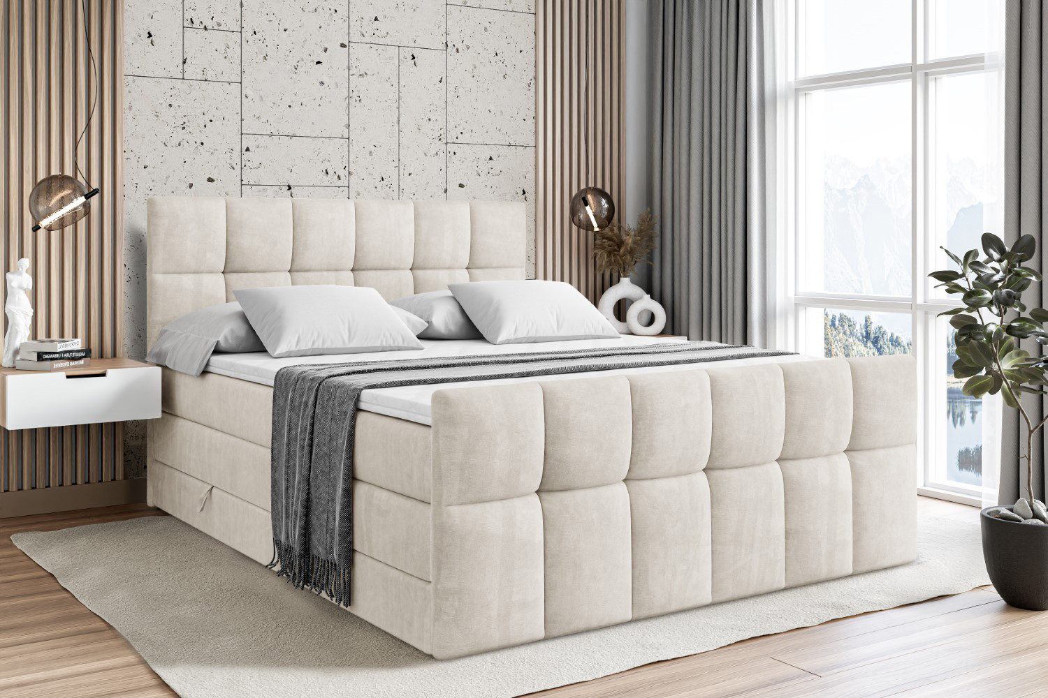 Das Bett istmit zwei Bettkästen ausgestattet, die viel Platz für Bettwäsche und Kissen bieten und für ein aufgeräumtes Schlafzimmer sorgen.