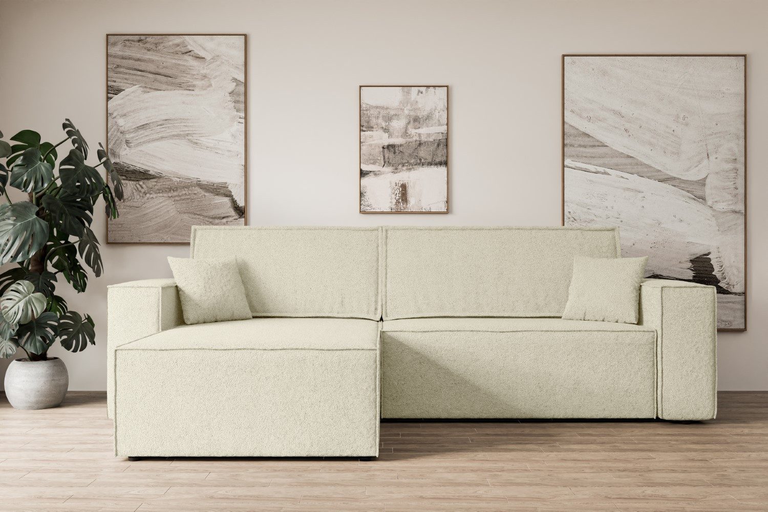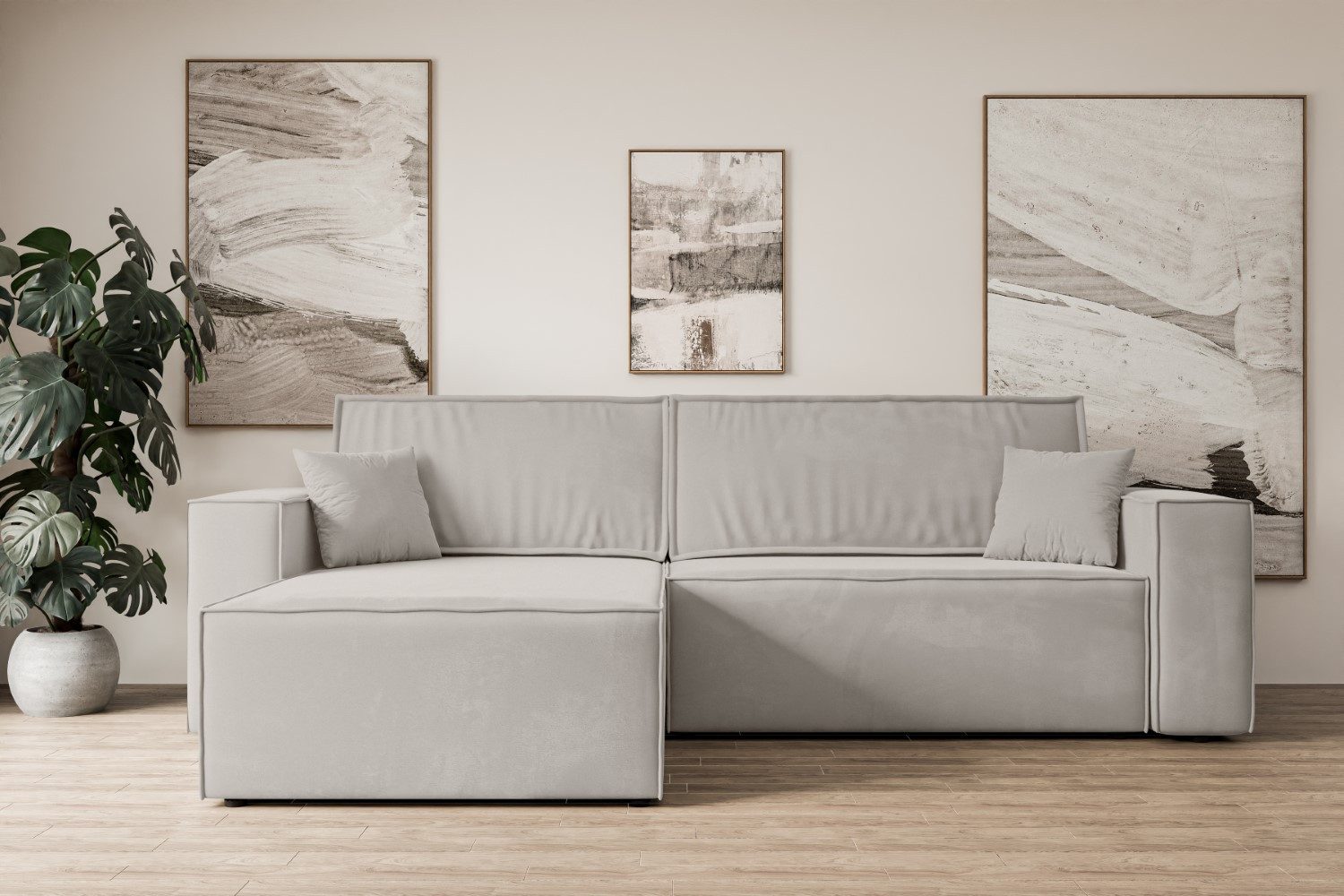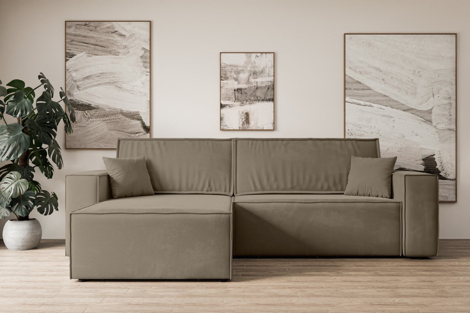 Das moderne Polstersofa mit Schlaffunktion ist ein universelles Möbelstück. Das links angeordnete Schlafsofa in L-Form bietet einen hohen Sitz-, Liege- und Schlafkomfort in jeder Situation.