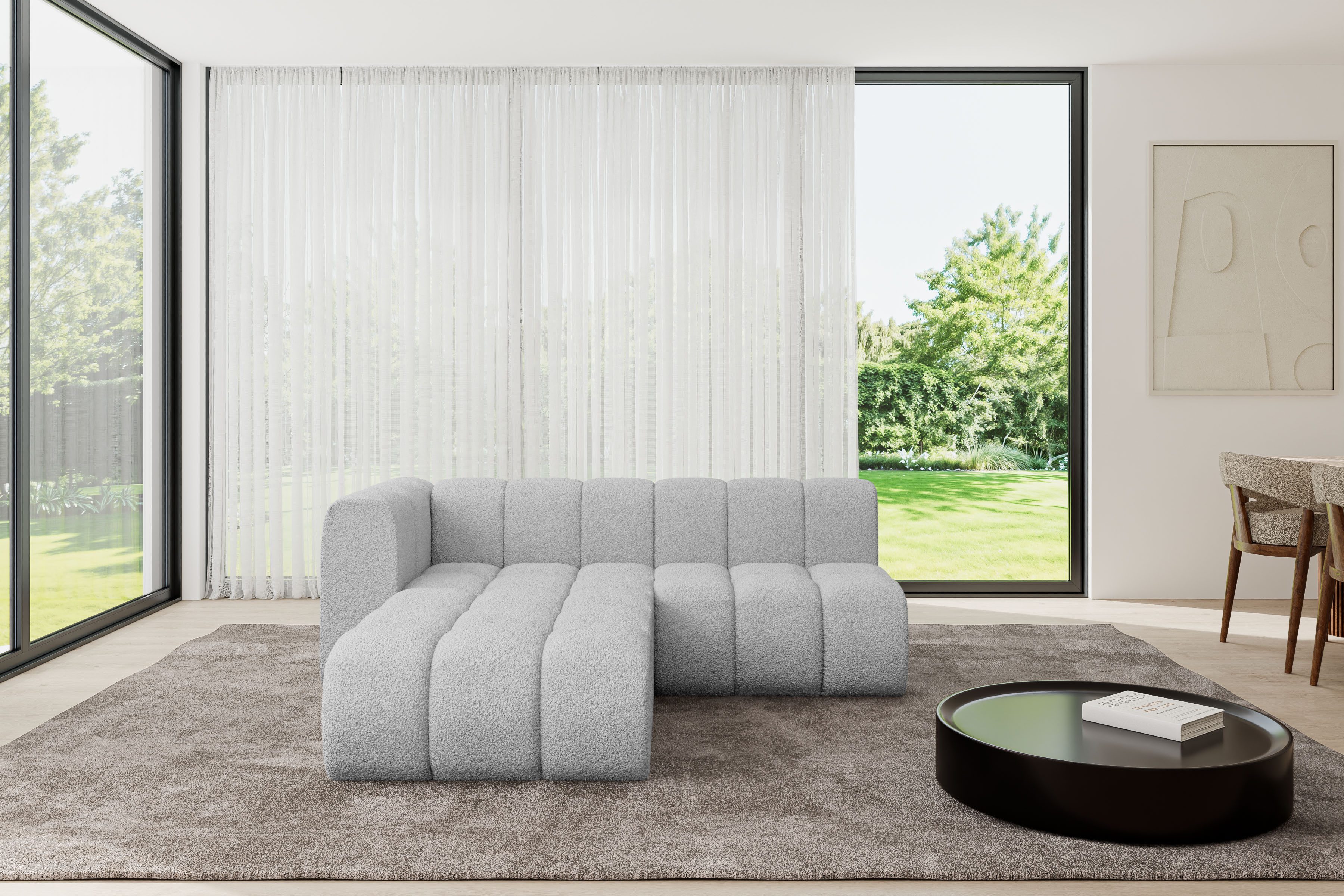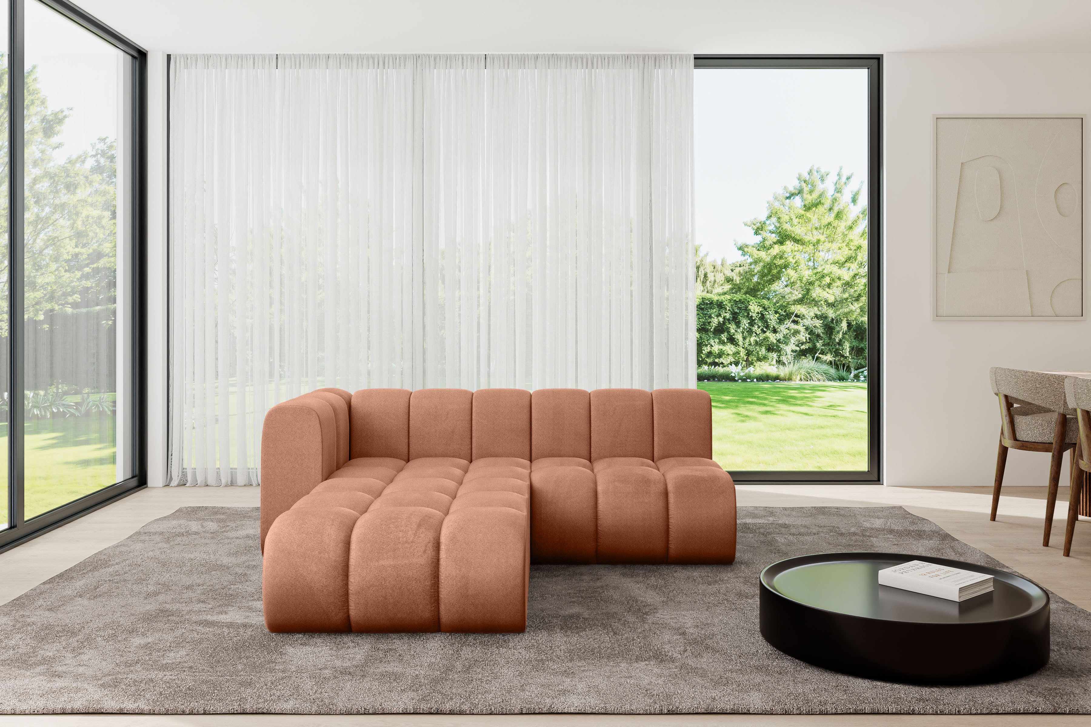 Ein modernes, modular Sofa in L-Form ist ein vielseitiges Möbelstück, das in jeder Alltagssituation außergewöhnlichen Sitzkomfort bietet.