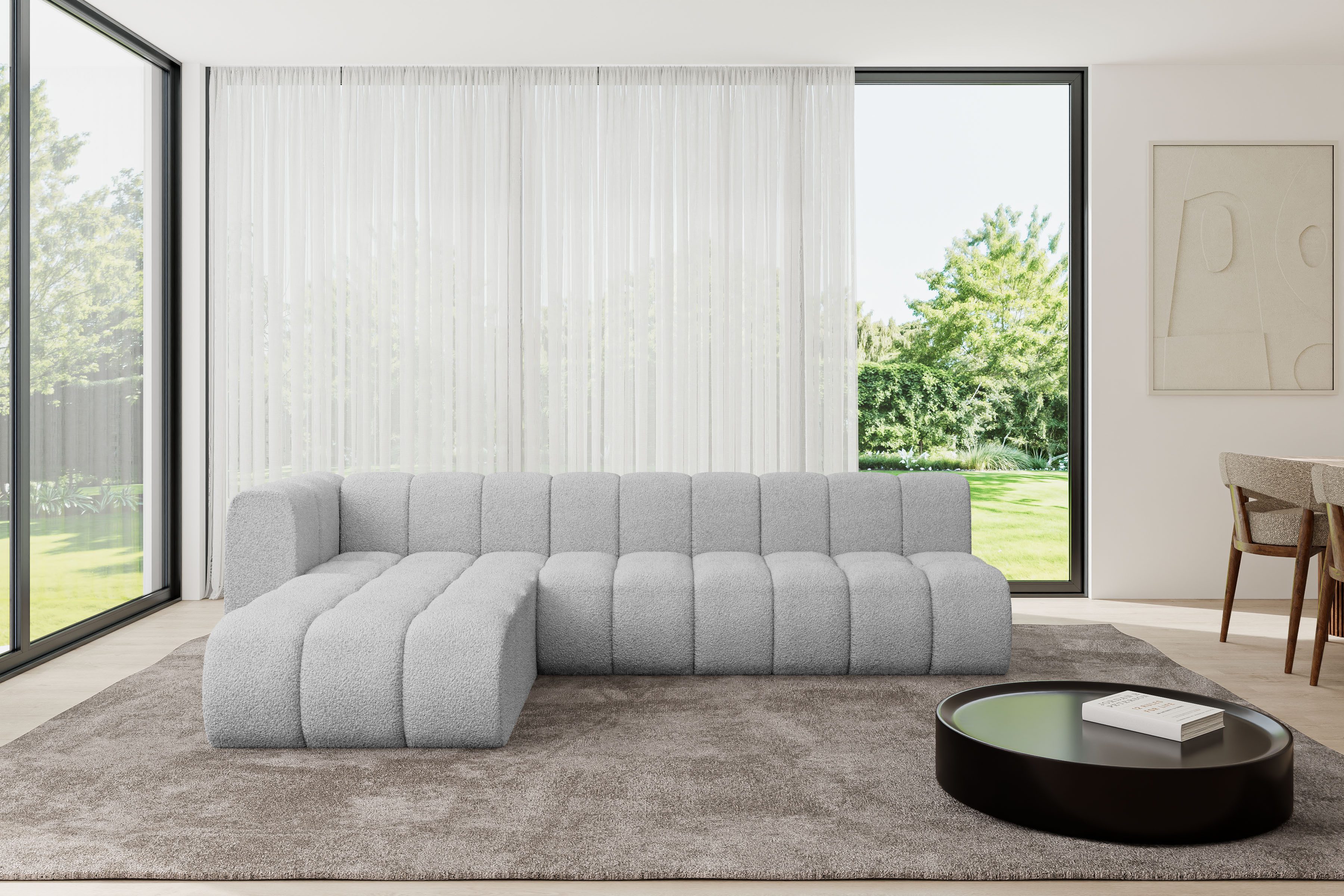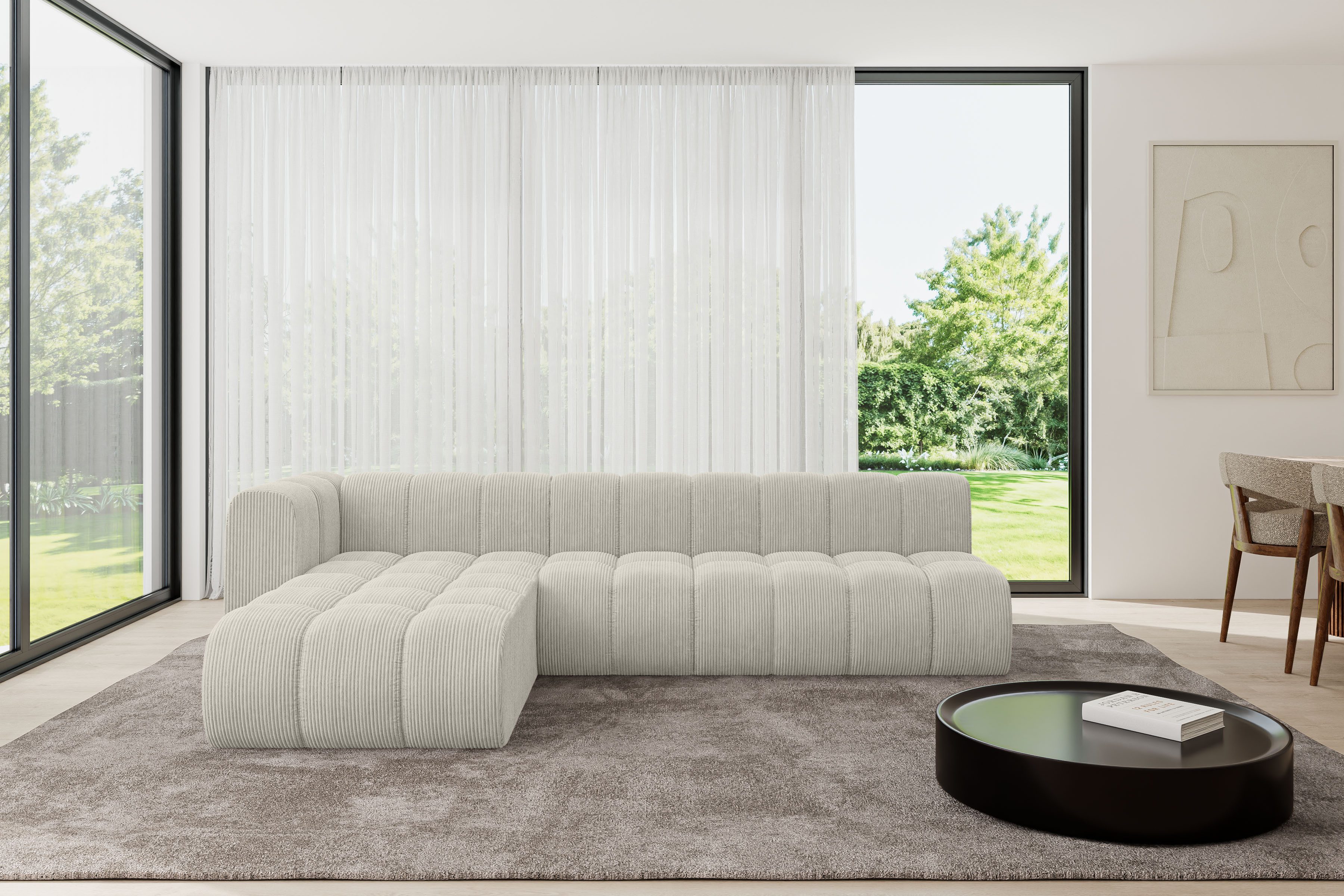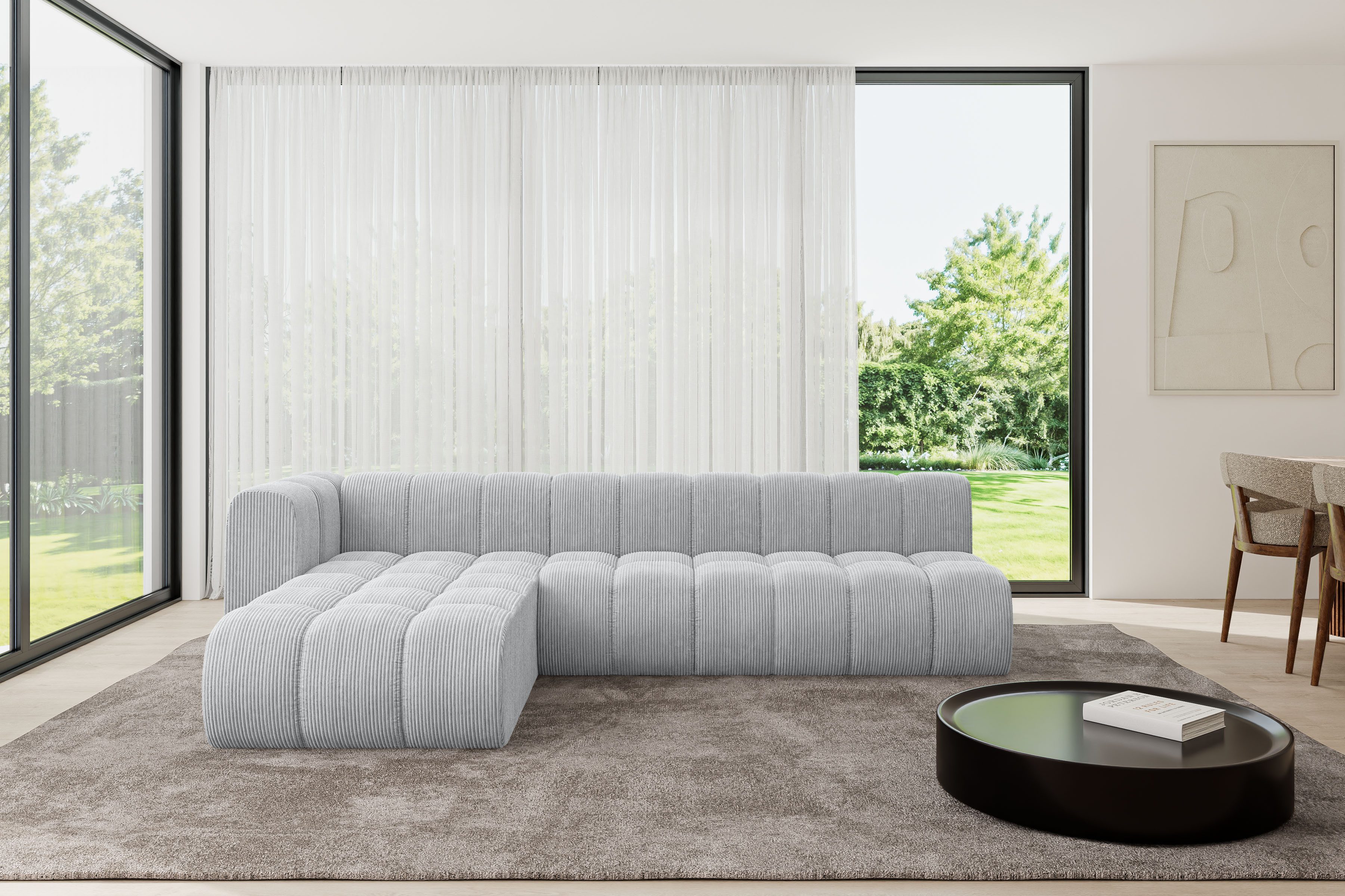 Ein modernes, modular Sofa in L-Form ist ein vielseitiges Möbelstück, das in jeder Alltagssituation außergewöhnlichen Sitzkomfort bietet.