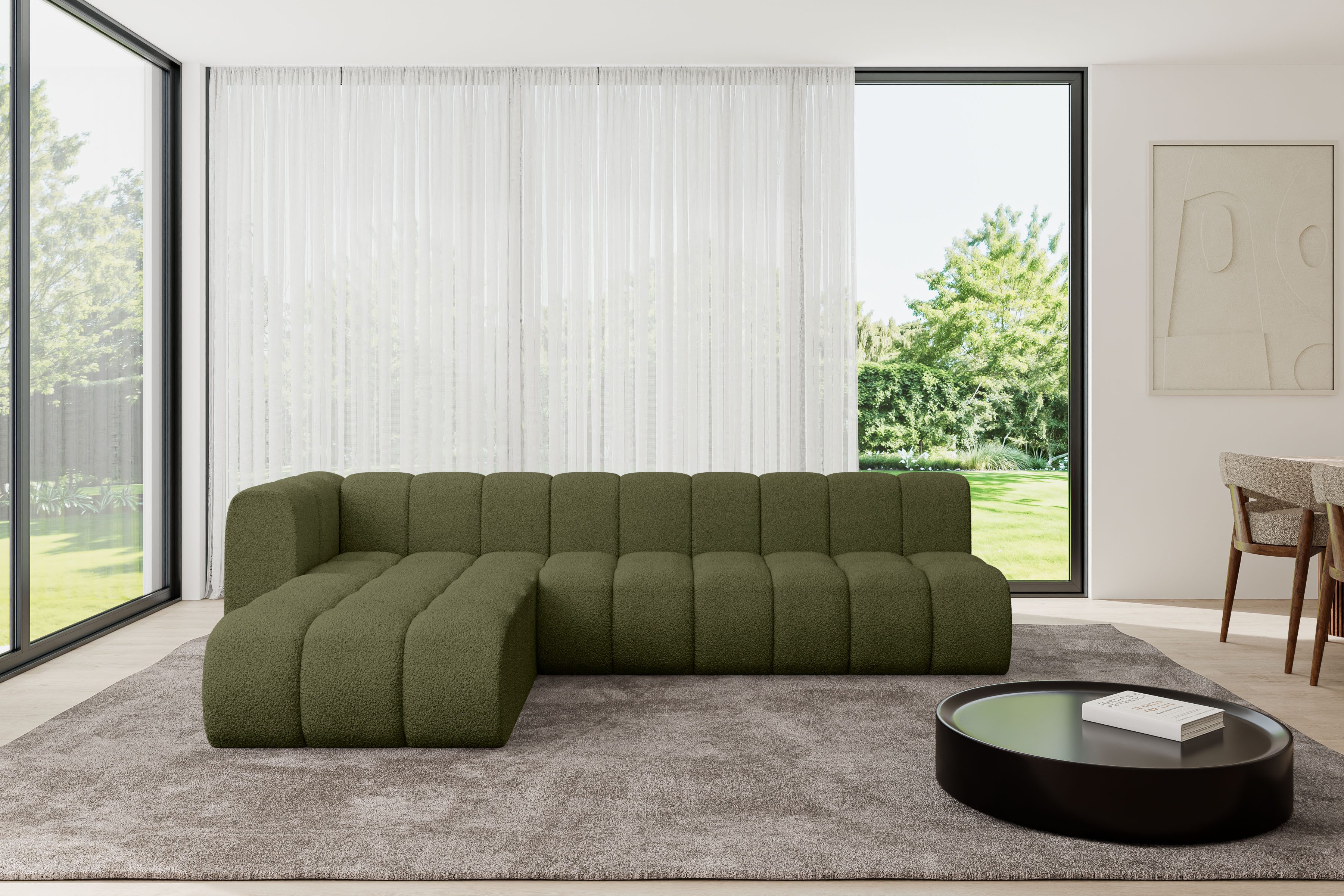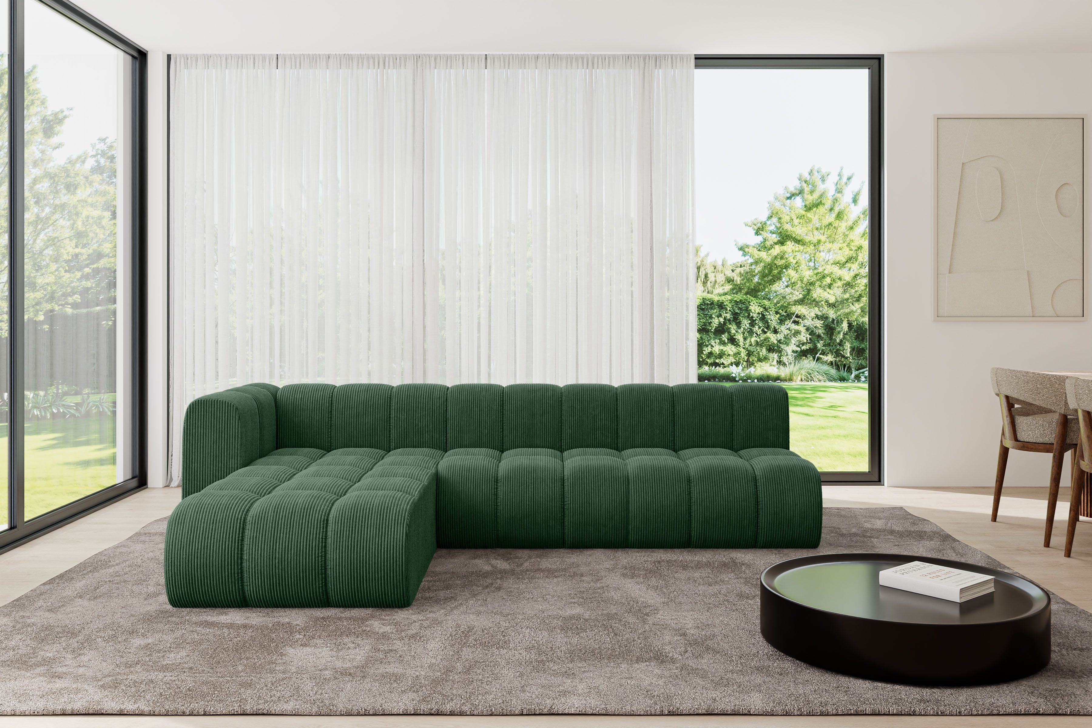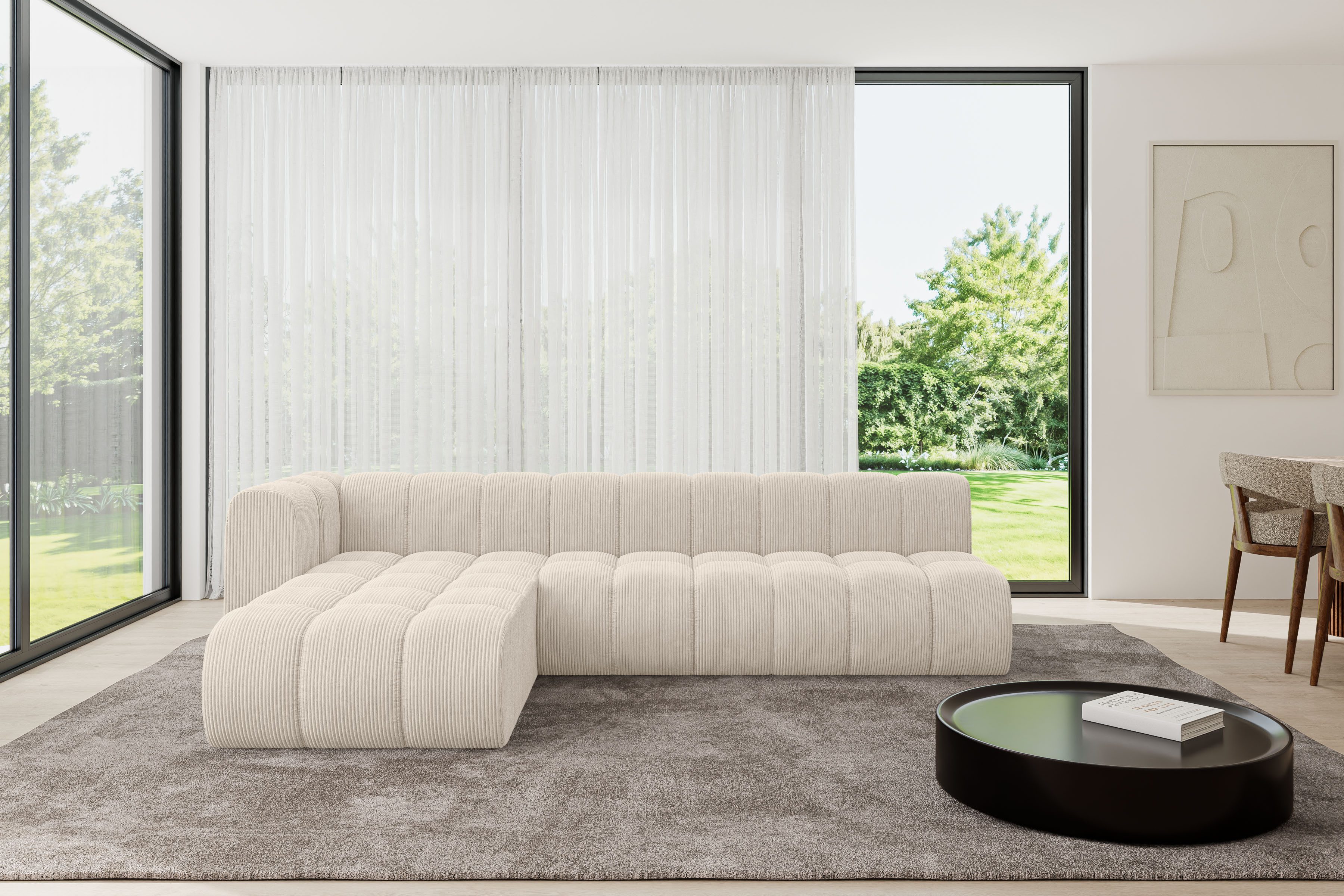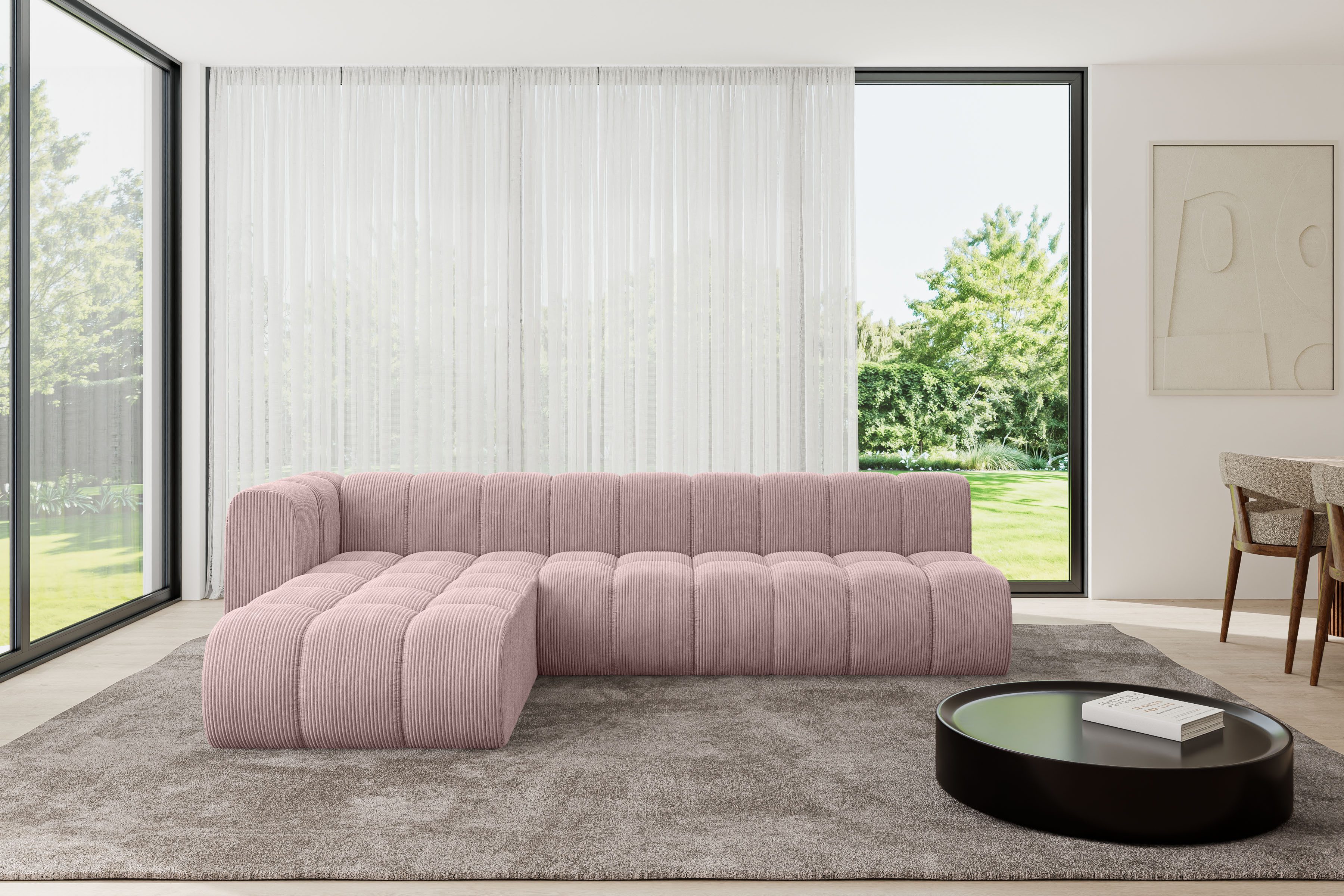 Ein modernes, modular Sofa in L-Form ist ein vielseitiges Möbelstück, das in jeder Alltagssituation außergewöhnlichen Sitzkomfort bietet.