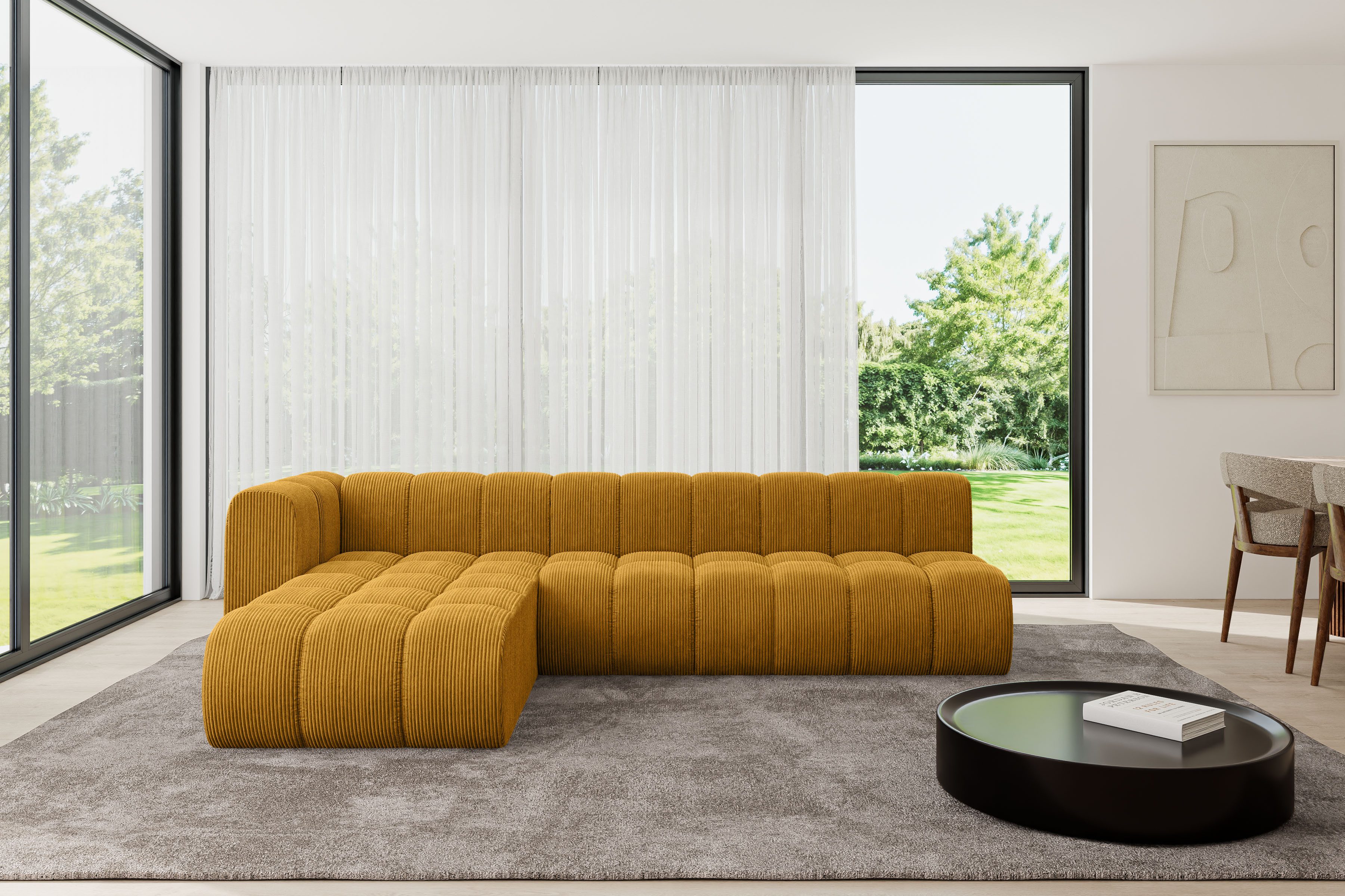 Dank der robusten Konstruktion und sorgfältig ausgewählten Materialien überzeugt das Corner Sofa durch Langlebigkeit und Stabilität. Die harmonische Farbauswahl und das elegante Design passen sich verschiedenen Einrichtungsstilen an und setzen stilvolle Akzente – sowohl im privaten Wohnbereich als auch in gewerblichen Räumen.