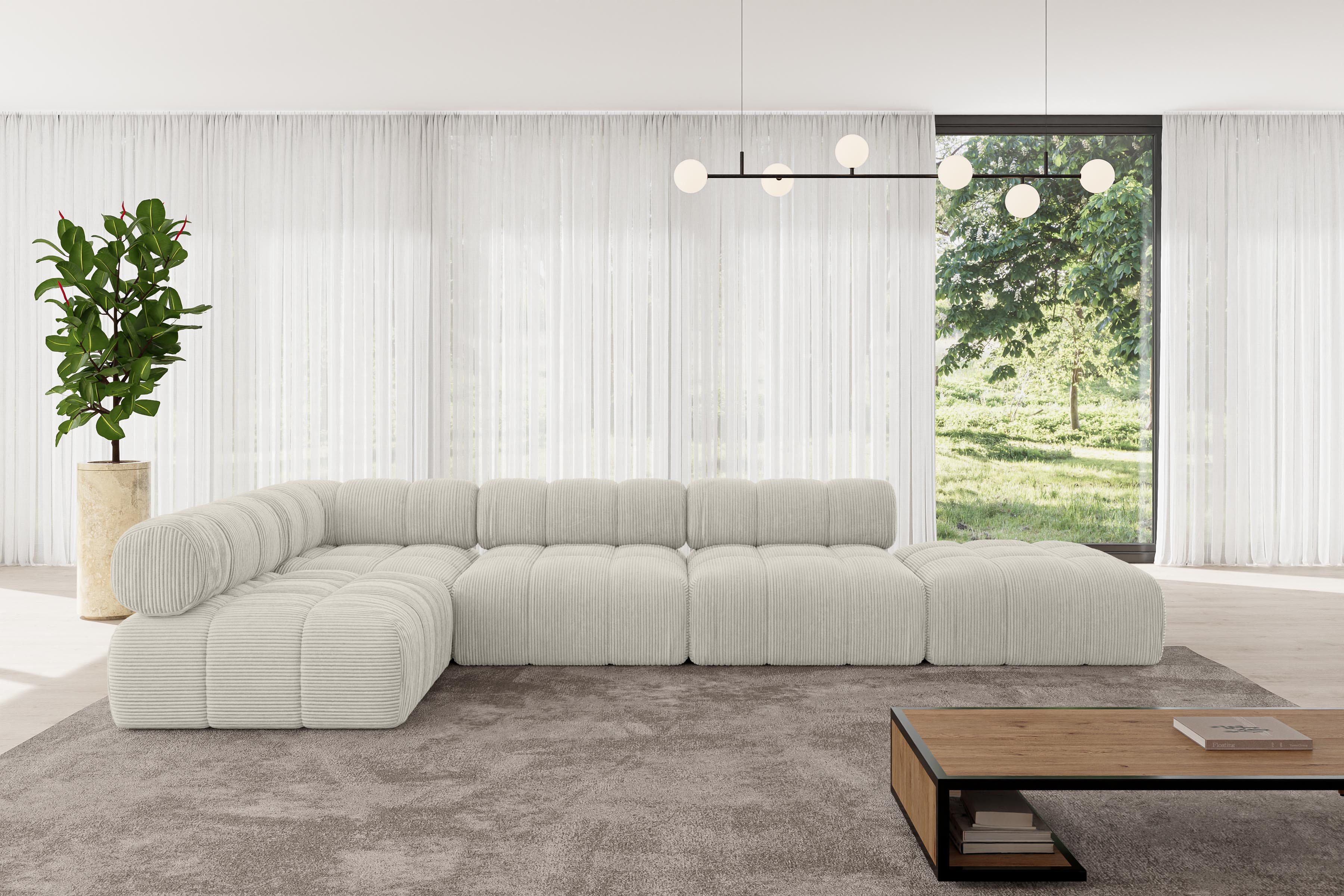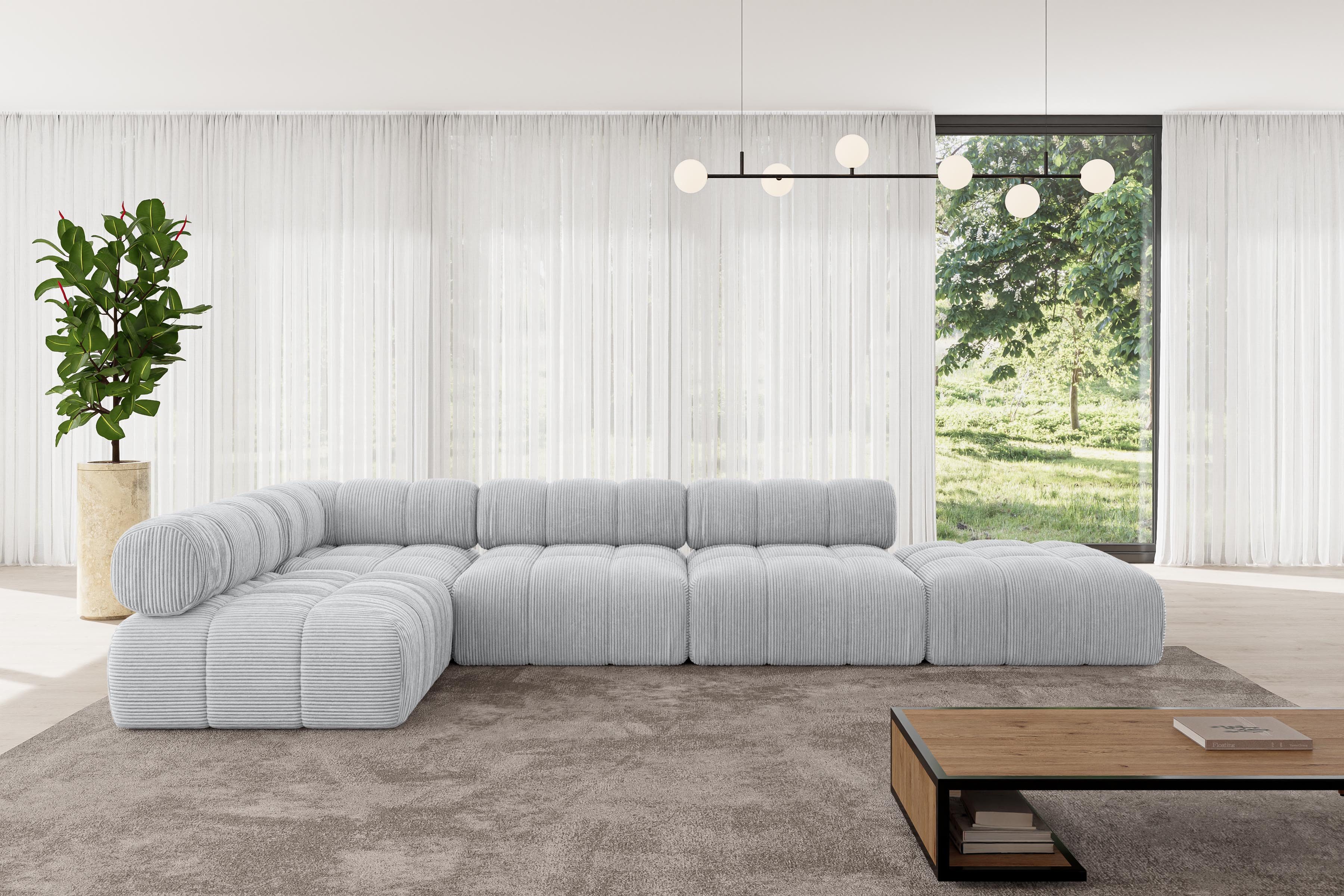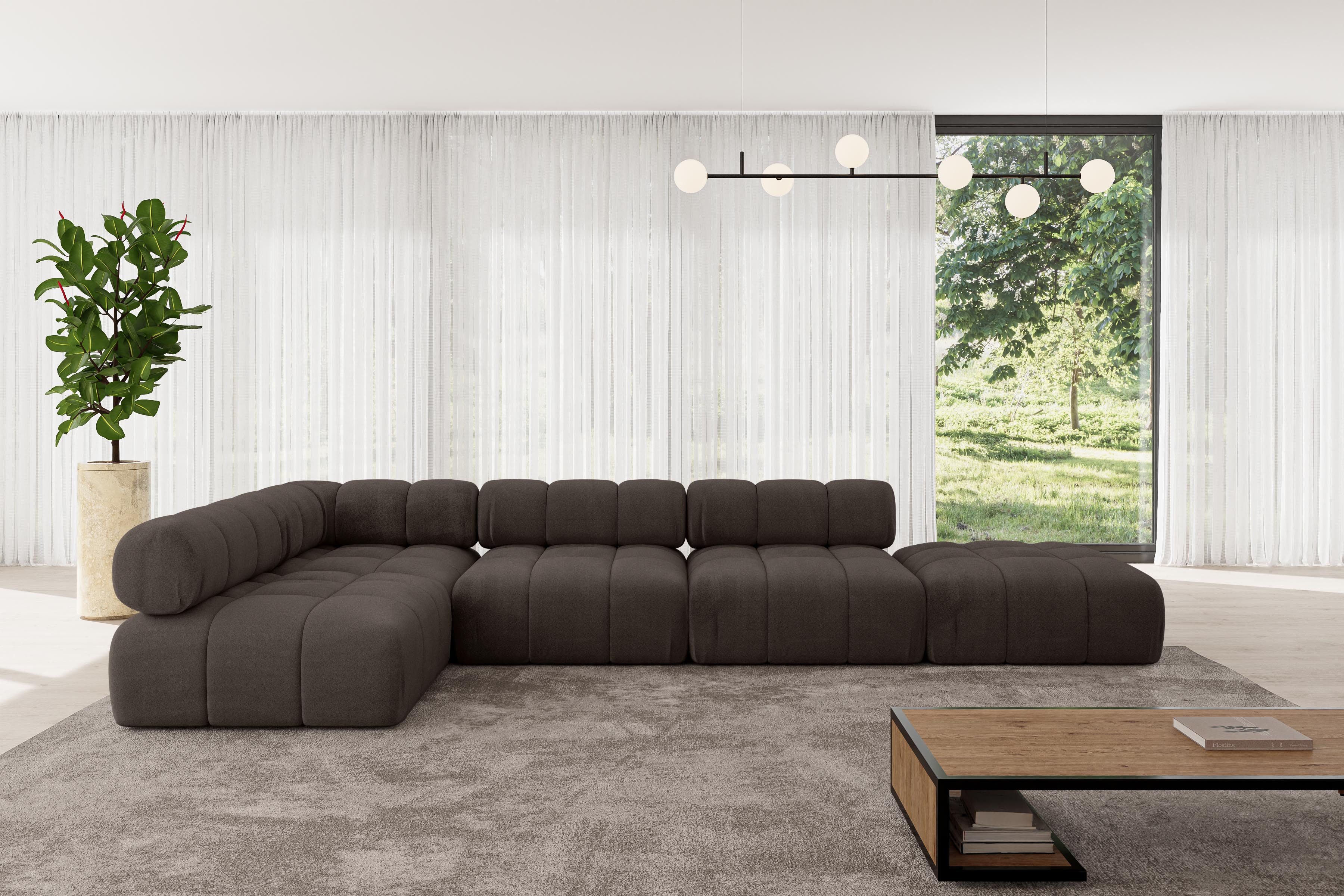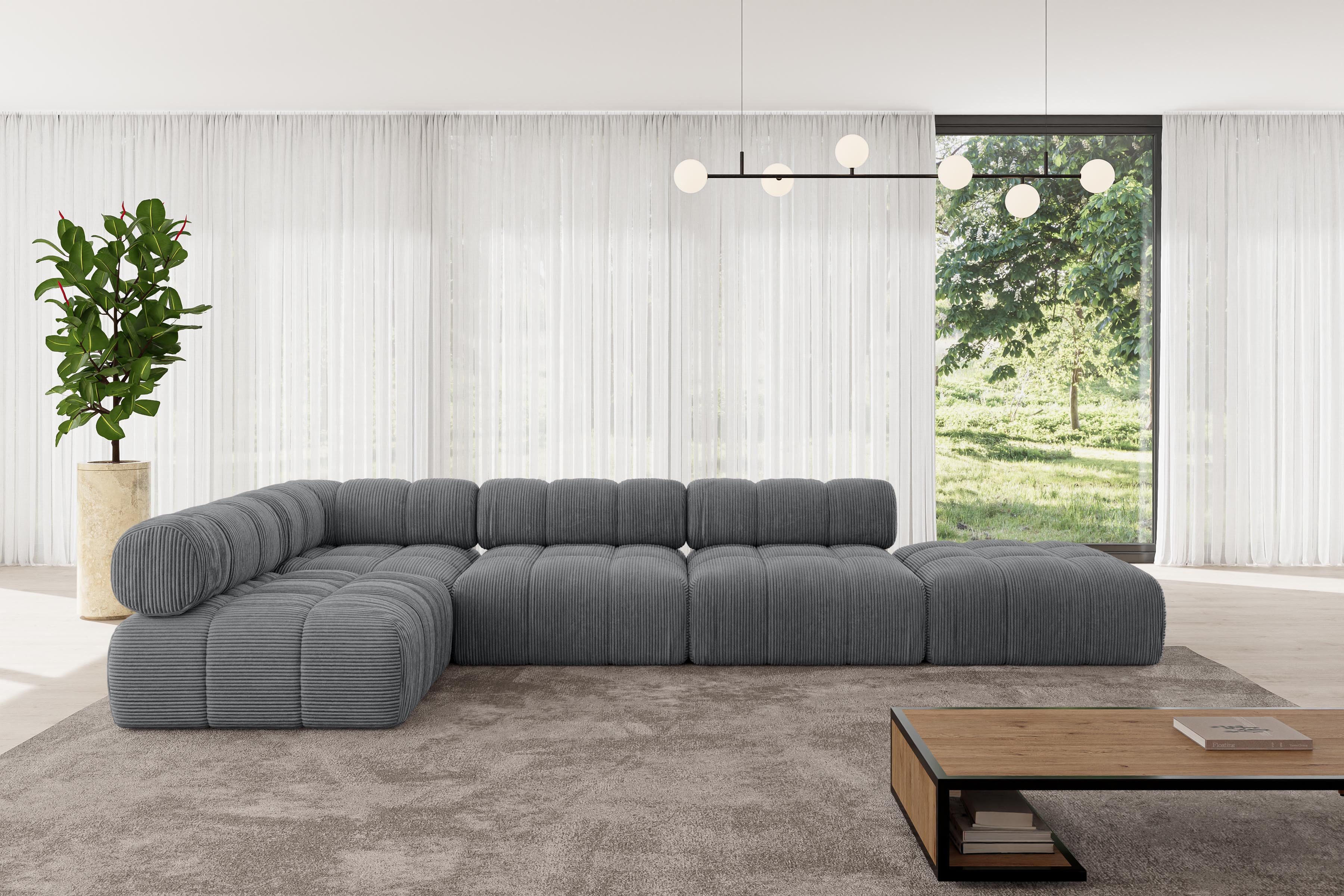 Ein modernes, modular Sofa in L-Form ist ein vielseitiges Möbelstück, das in jeder Alltagssituation außergewöhnlichen Sitzkomfort bietet.