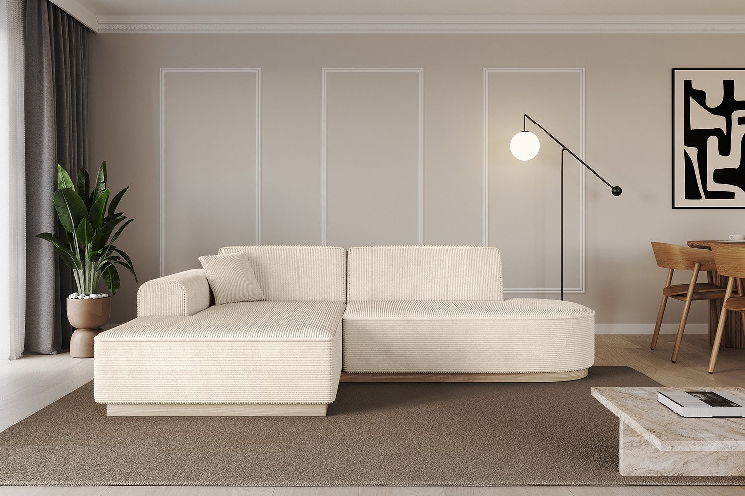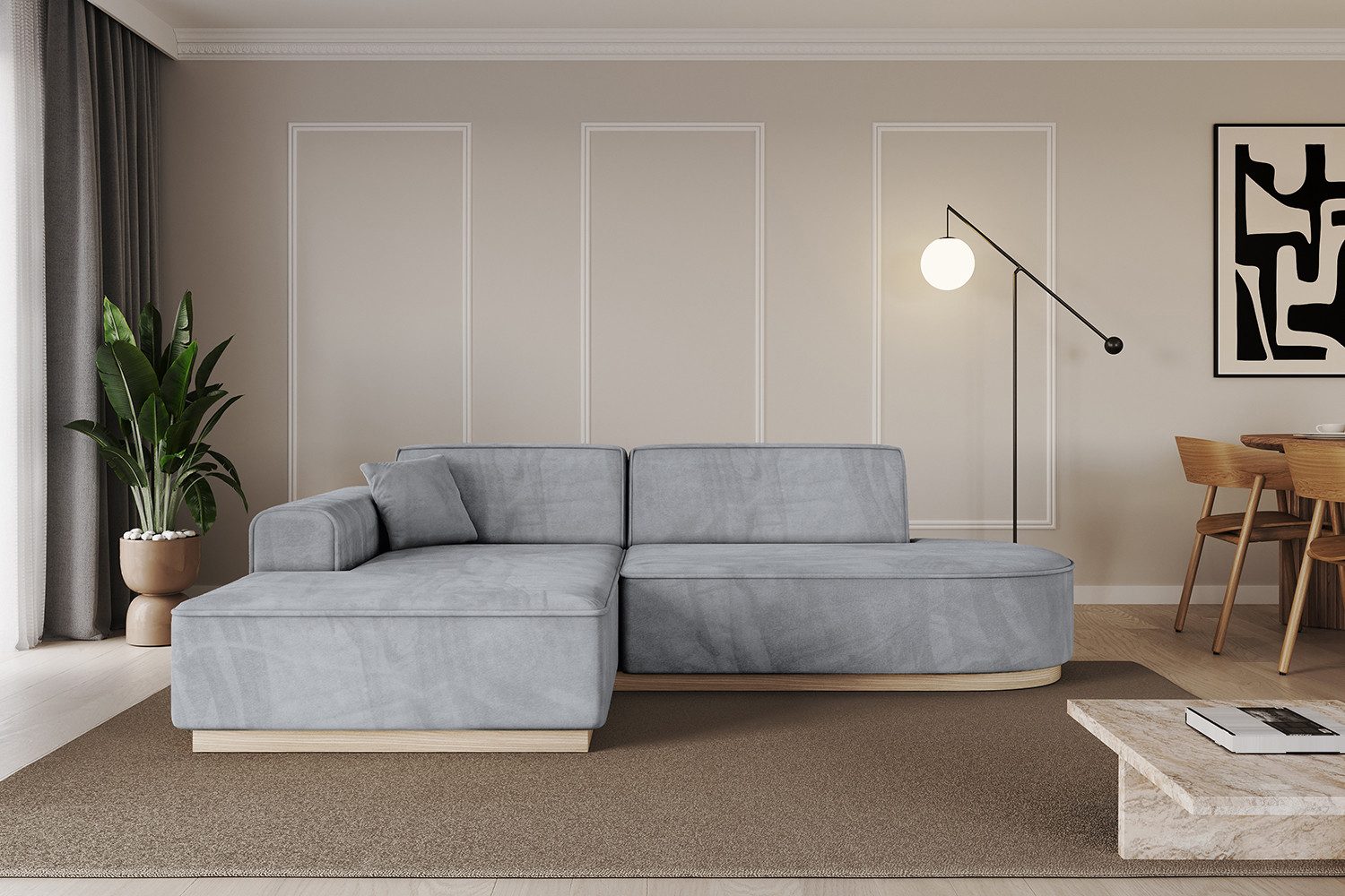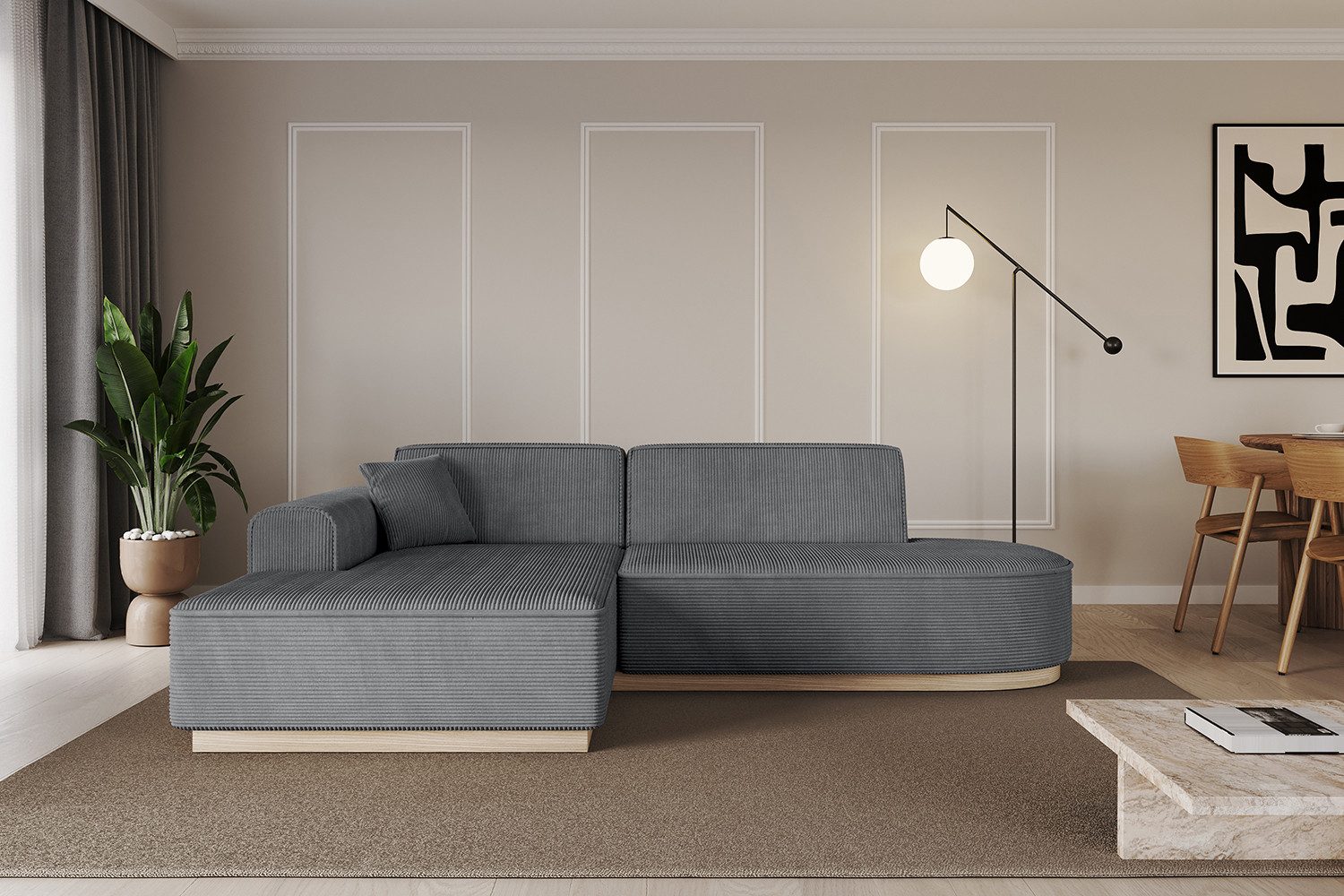 Dieses Ecksofa vereint zeitloses Design mit höchstem Sitzkomfort. Die hochwertige Polsterung sorgt für eine angenehme Unterstützung und lädt zum Entspannen ein. Dank der robusten Konstruktion und sorgfältig ausgewählten Materialien überzeugt das Sofa durch Langlebigkeit und Stabilität. Die harmonische Farbauswahl und das elegante Design fügen sich perfekt in verschiedene Wohnstile ein und setzen stilvolle Akzente im Wohnbereich.