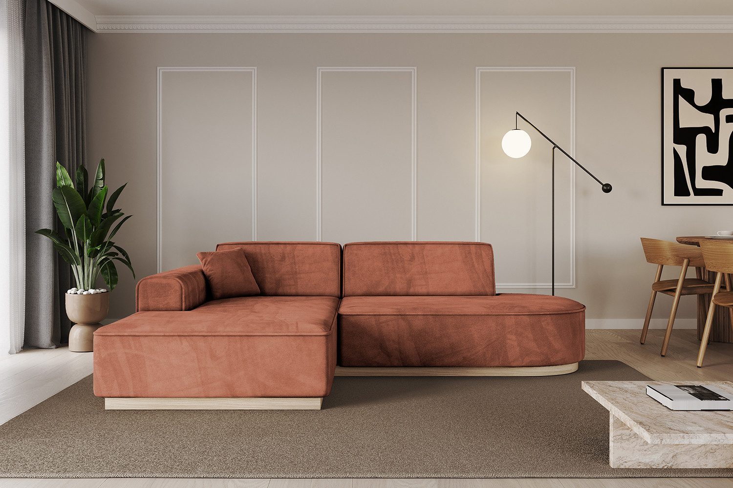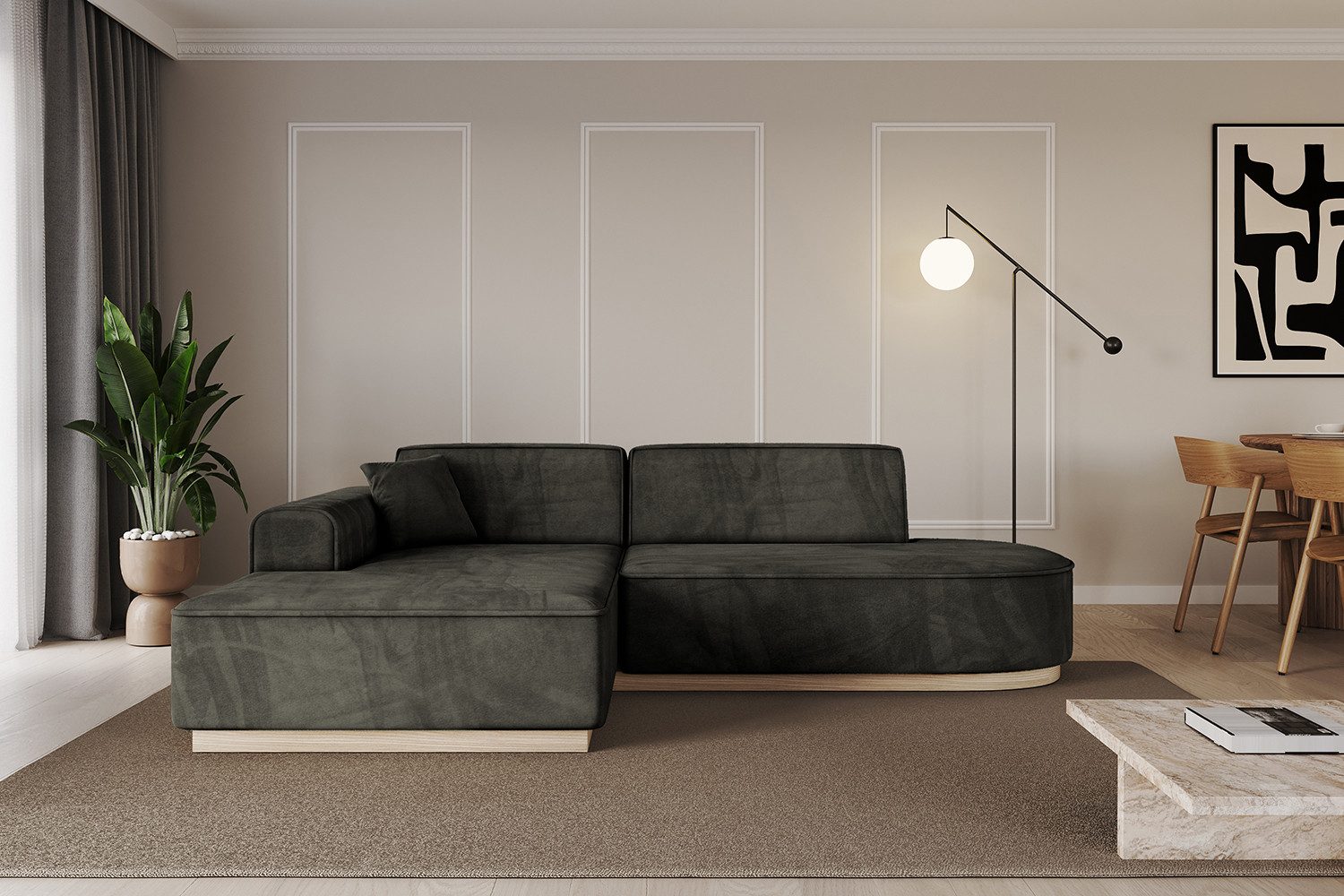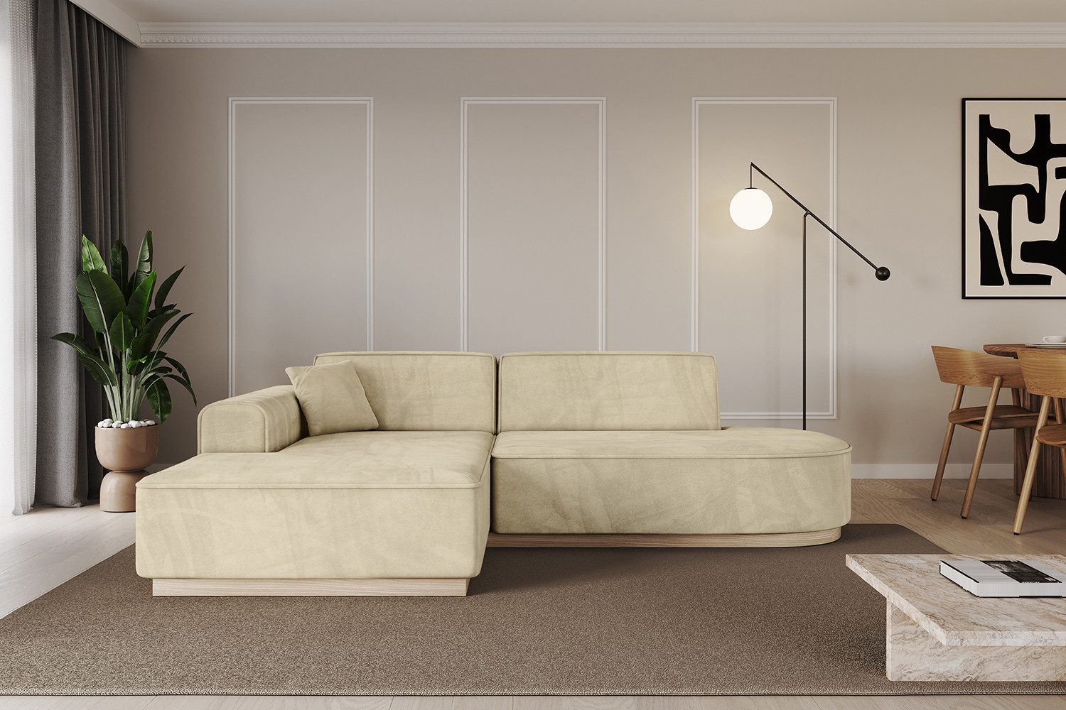 Dieses Ecksofa vereint zeitloses Design mit höchstem Sitzkomfort. Die hochwertige Polsterung sorgt für eine angenehme Unterstützung und lädt zum Entspannen ein. Dank der robusten Konstruktion und sorgfältig ausgewählten Materialien überzeugt das Sofa durch Langlebigkeit und Stabilität. Die harmonische Farbauswahl und das elegante Design fügen sich perfekt in verschiedene Wohnstile ein und setzen stilvolle Akzente im Wohnbereich.