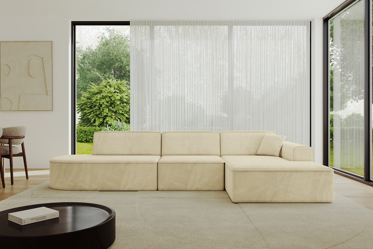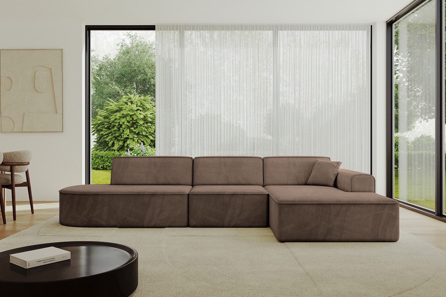 Dieses Ecksofa vereint zeitloses Design mit höchstem Sitzkomfort. Die hochwertige Polsterung sorgt für eine angenehme Unterstützung und lädt zum Entspannen ein. Dank der robusten Konstruktion und sorgfältig ausgewählten Materialien überzeugt das Sofa durch Langlebigkeit und Stabilität. Die harmonische Farbauswahl und das elegante Design fügen sich perfekt in verschiedene Wohnstile ein und setzen stilvolle Akzente im Wohnbereich.