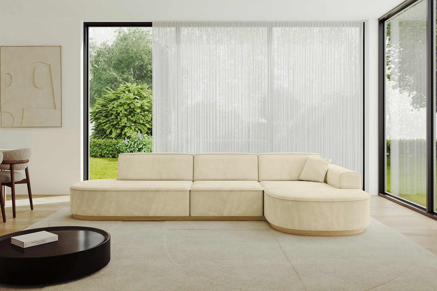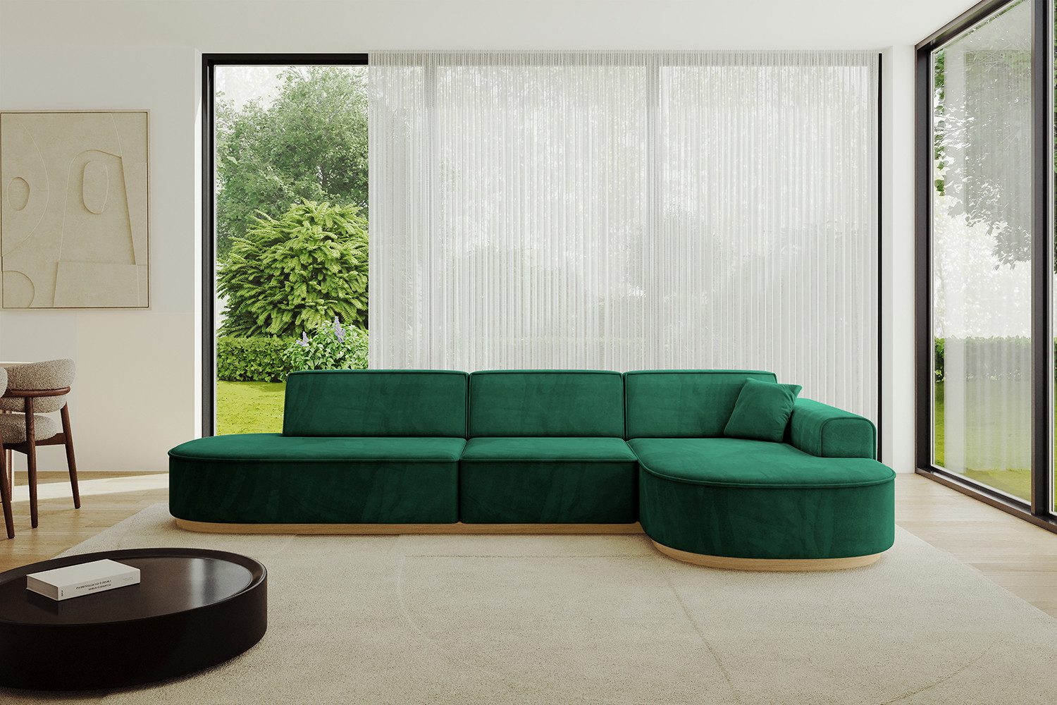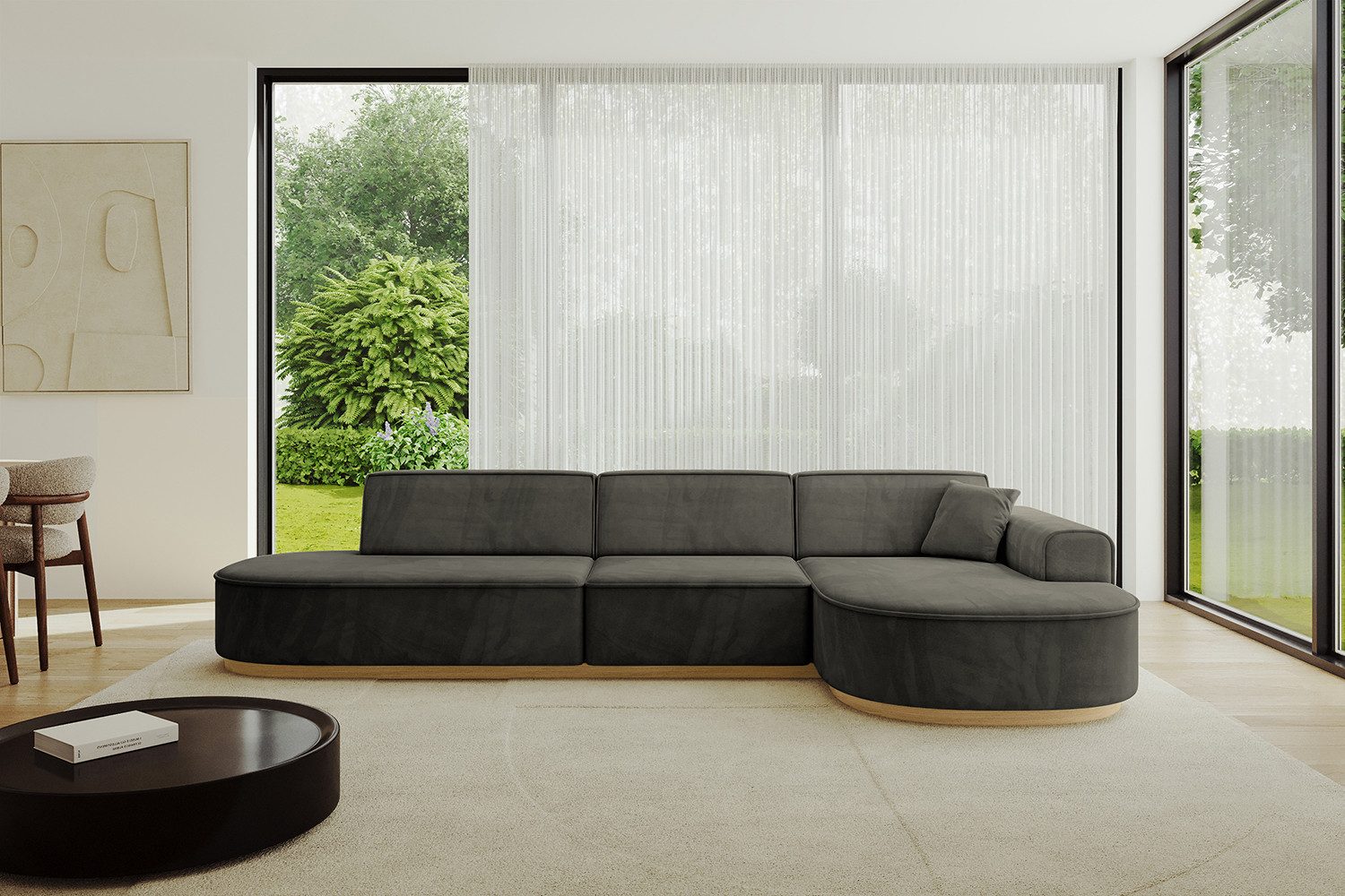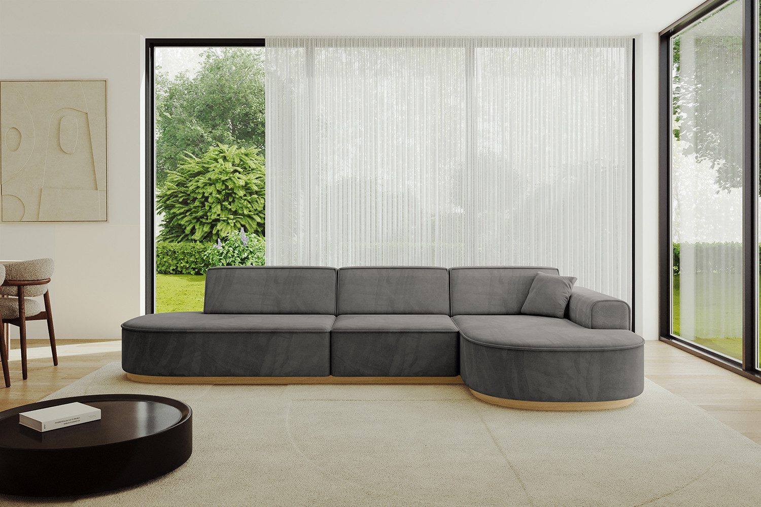 Dieses Ecksofa vereint zeitloses Design mit höchstem Sitzkomfort. Die hochwertige Polsterung sorgt für eine angenehme Unterstützung und lädt zum Entspannen ein. Dank der robusten Konstruktion und sorgfältig ausgewählten Materialien überzeugt das Sofa durch Langlebigkeit und Stabilität. Die harmonische Farbauswahl und das elegante Design fügen sich perfekt in verschiedene Wohnstile ein und setzen stilvolle Akzente im Wohnbereich.