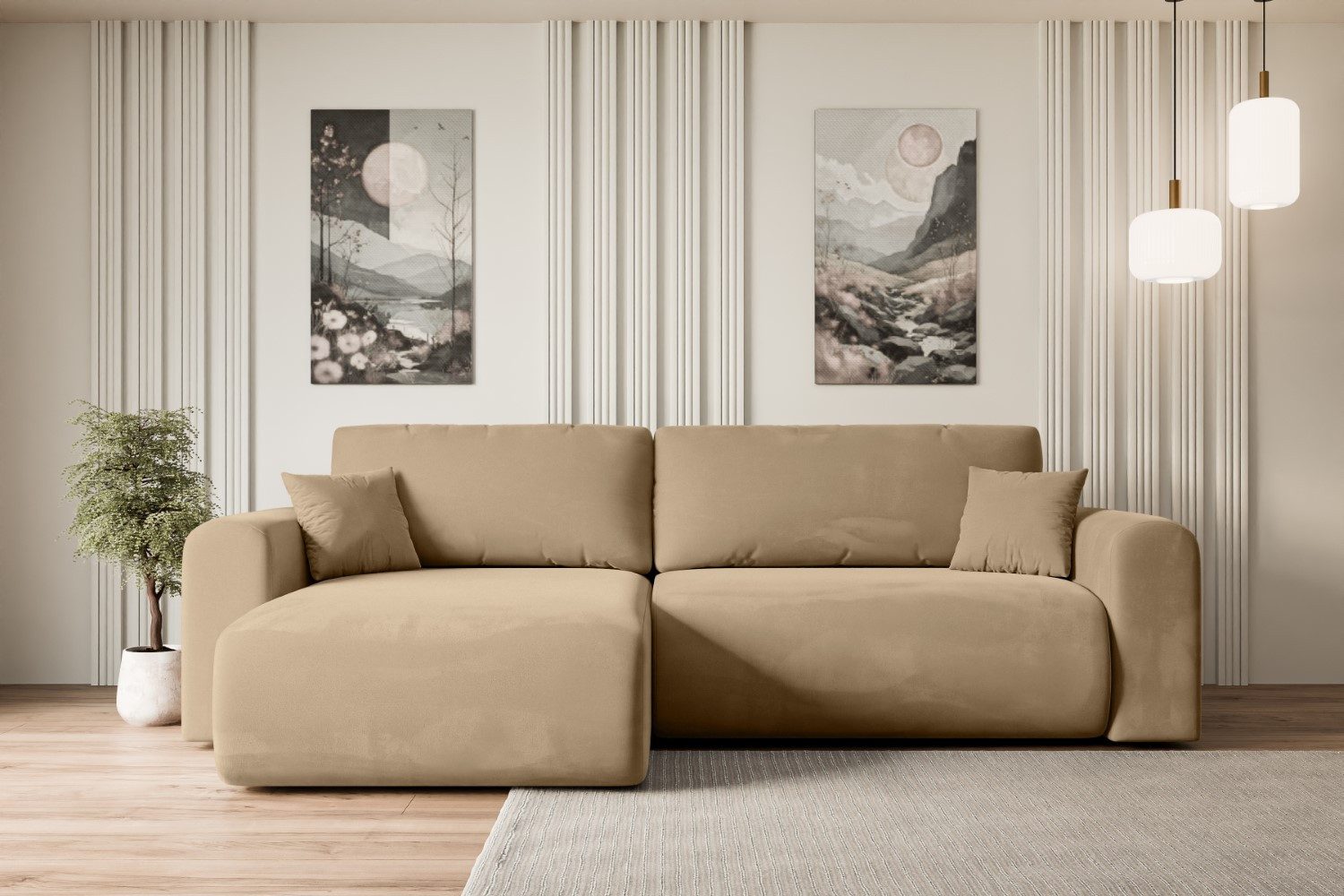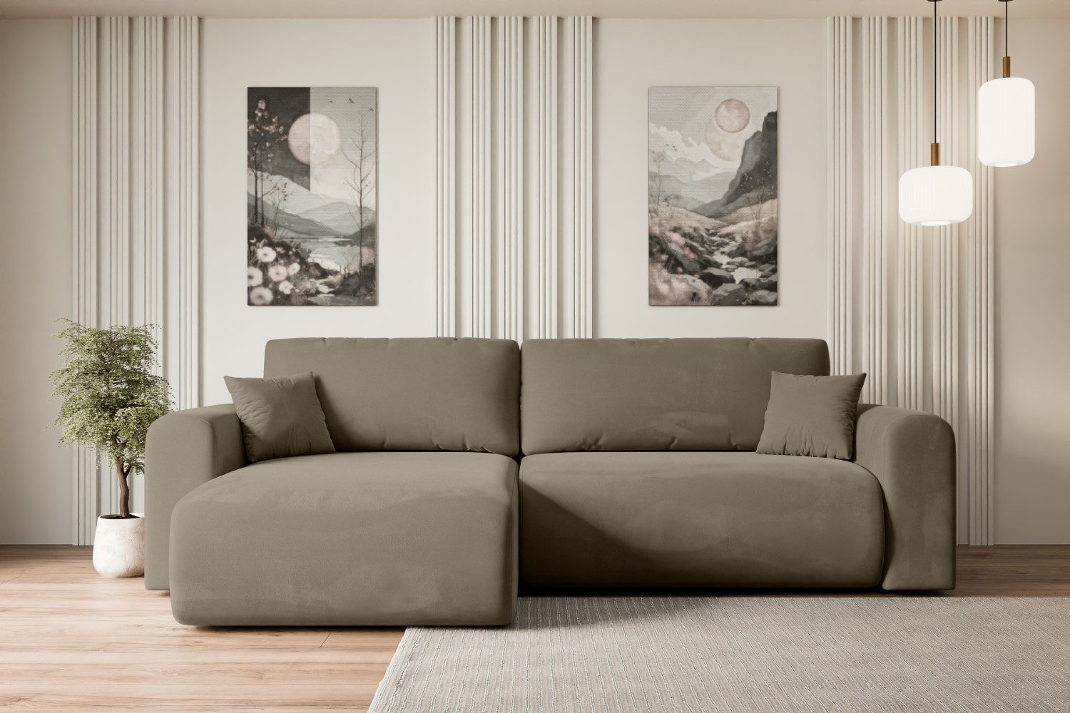 Das moderne Polstersofa mit Schlaffunktion ist ein universelles Möbelstück. Das links angeordnete Schlafsofa in L-Form bietet einen hohen Sitz-, Liege- und Schlafkomfort in jeder Situation.