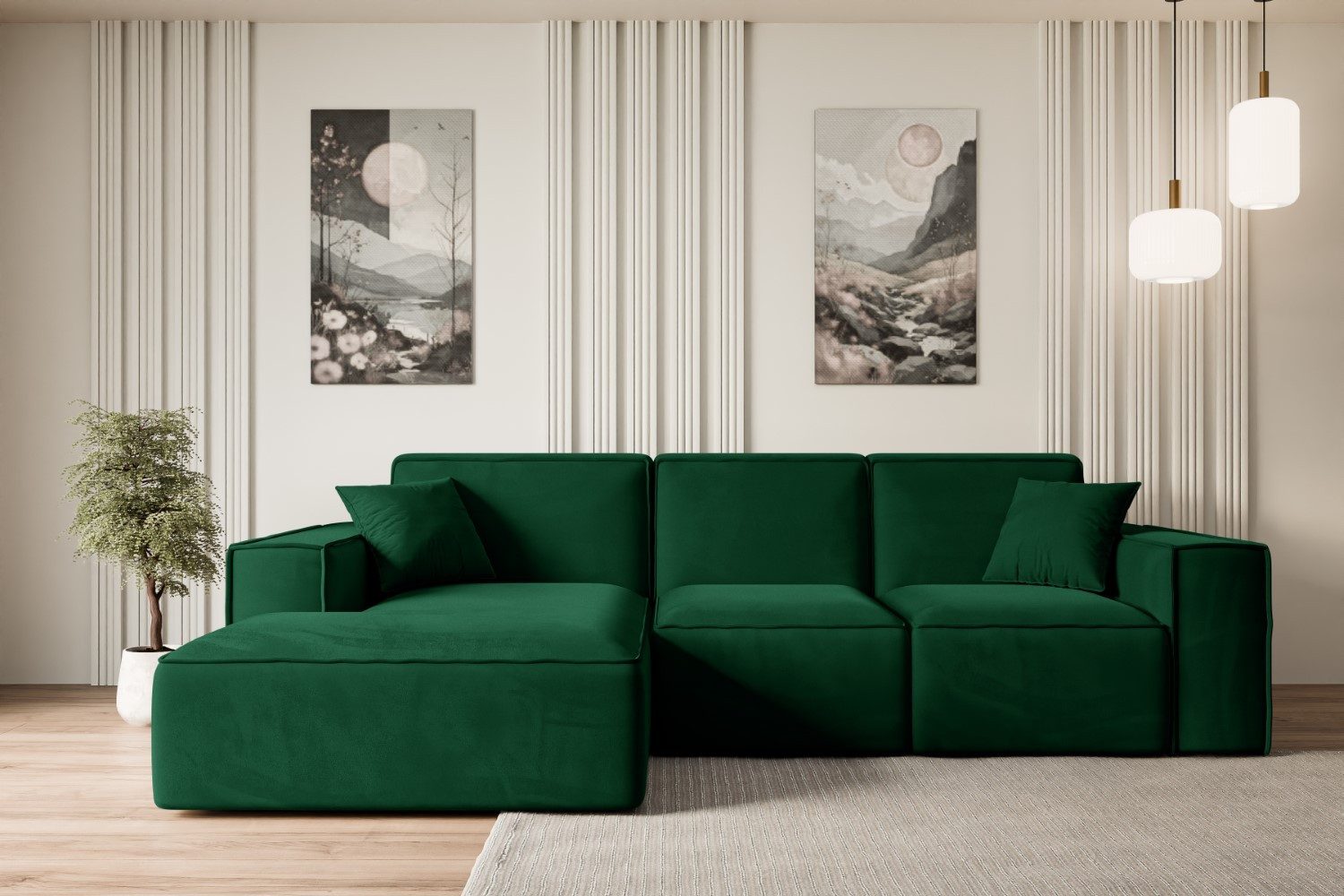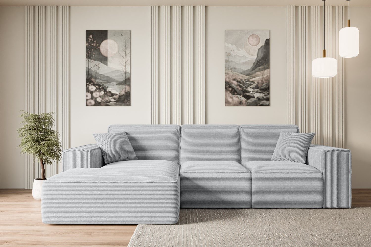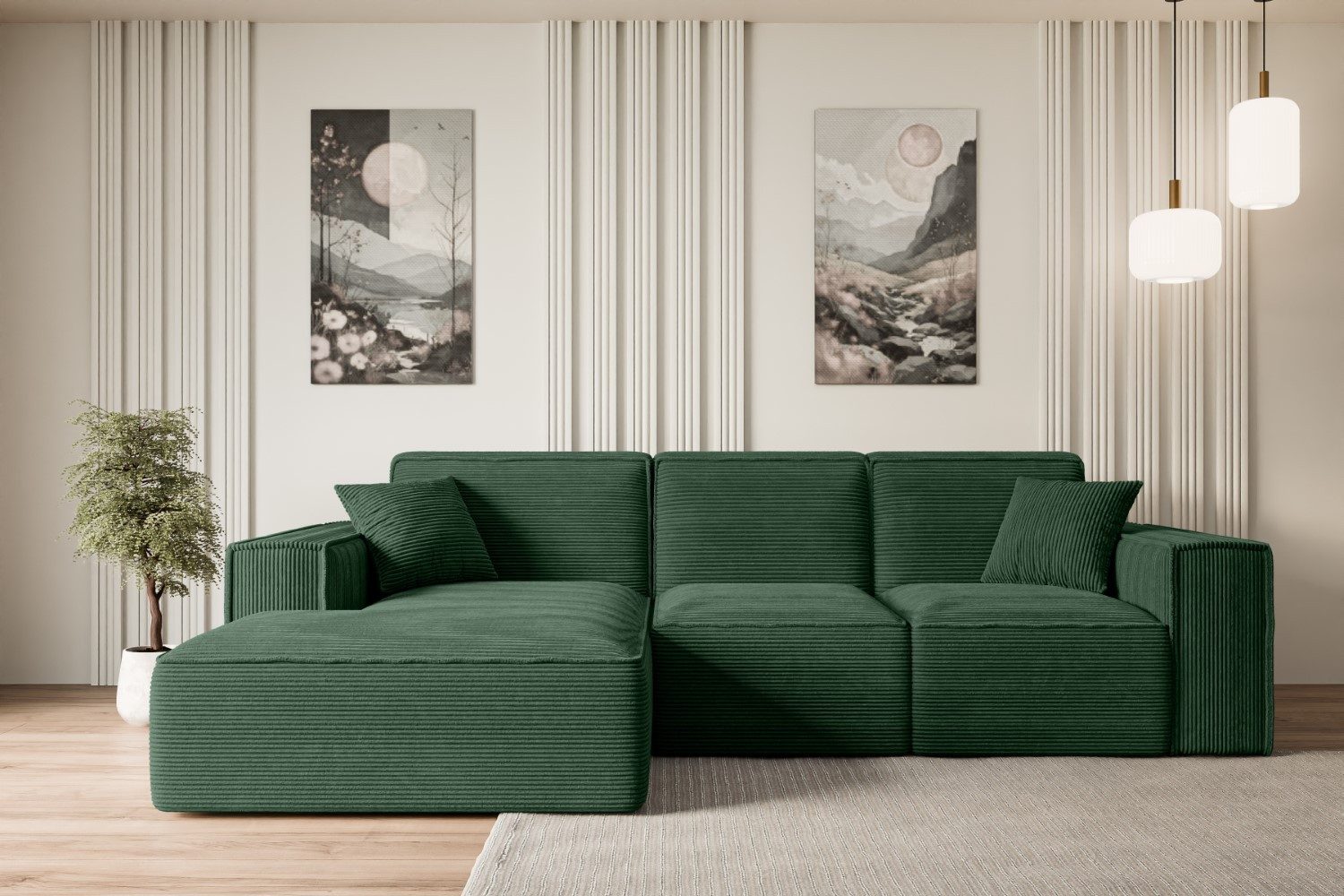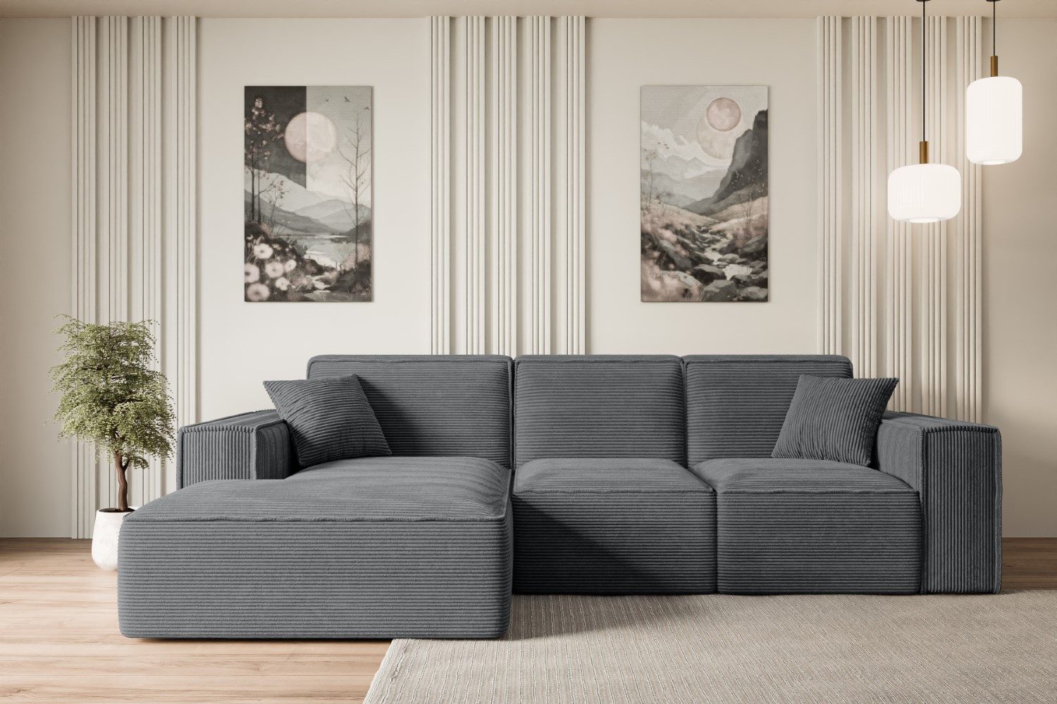 Dieses Ecksofa vereint zeitloses Design mit höchstem Sitzkomfort. Die hochwertige Polsterung sorgt für eine angenehme Unterstützung und lädt zum Entspannen ein. Dank der robusten Konstruktion und sorgfältig ausgewählten Materialien überzeugt das Sofa durch Langlebigkeit und Stabilität. Die harmonische Farbauswahl und das elegante Design fügen sich perfekt in verschiedene Wohnstile ein und setzen stilvolle Akzente im Wohnbereich.