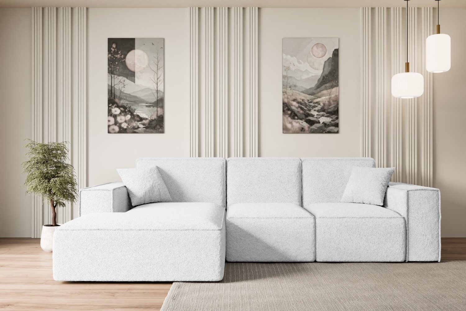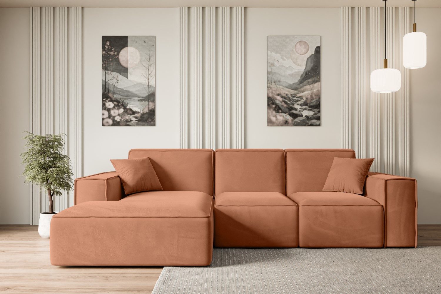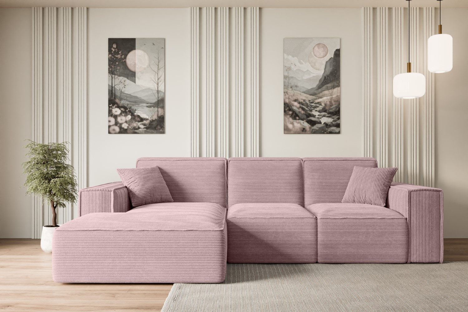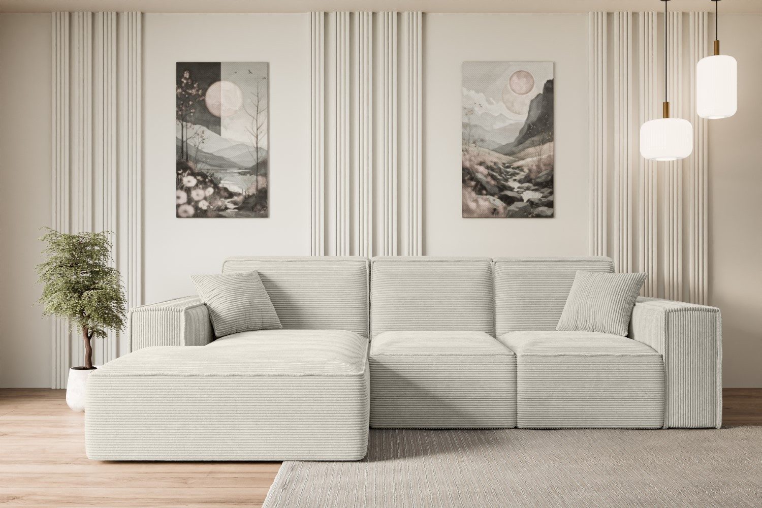 Dieses Ecksofa vereint zeitloses Design mit höchstem Sitzkomfort. Die hochwertige Polsterung sorgt für eine angenehme Unterstützung und lädt zum Entspannen ein. Dank der robusten Konstruktion und sorgfältig ausgewählten Materialien überzeugt das Sofa durch Langlebigkeit und Stabilität. Die harmonische Farbauswahl und das elegante Design fügen sich perfekt in verschiedene Wohnstile ein und setzen stilvolle Akzente im Wohnbereich.