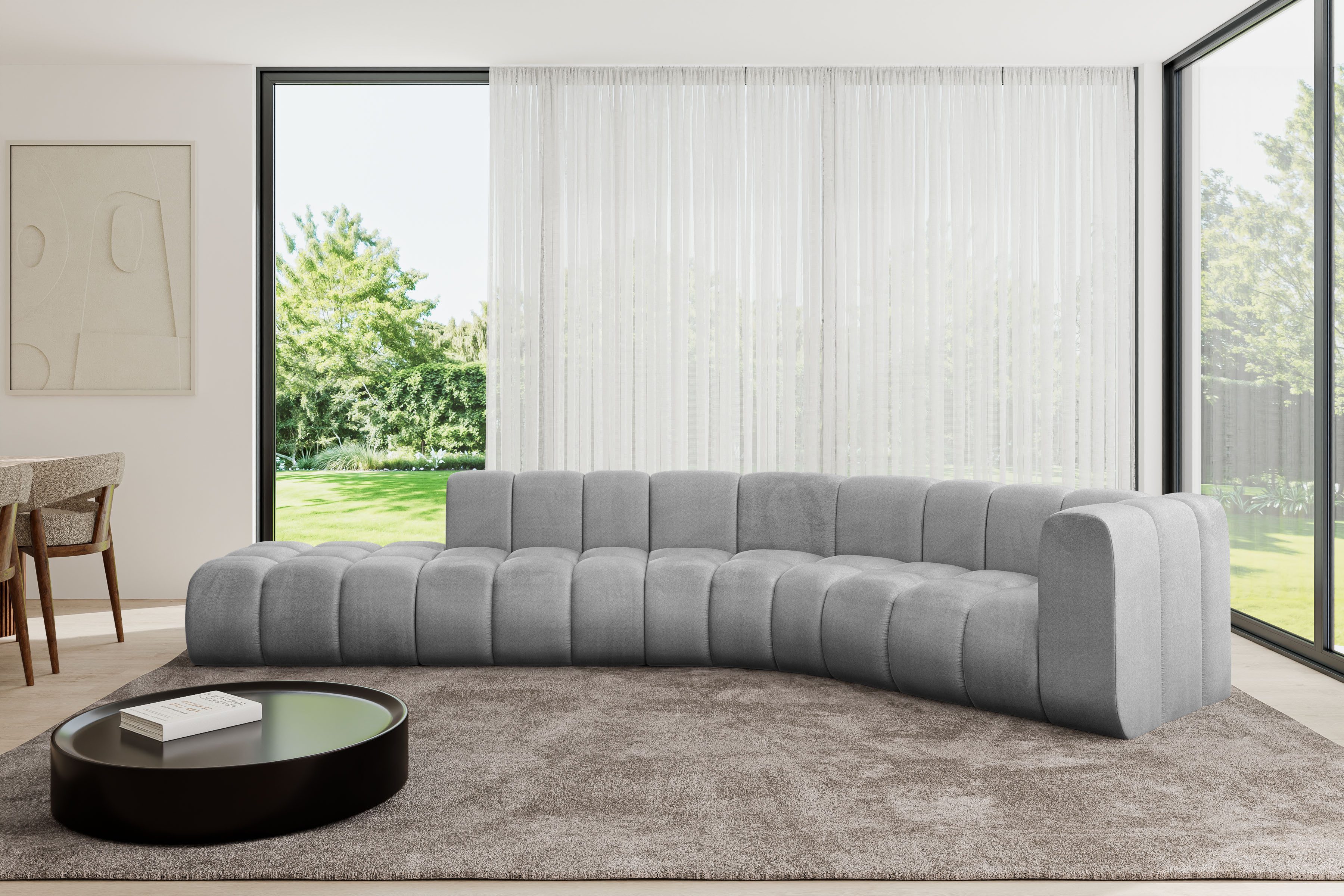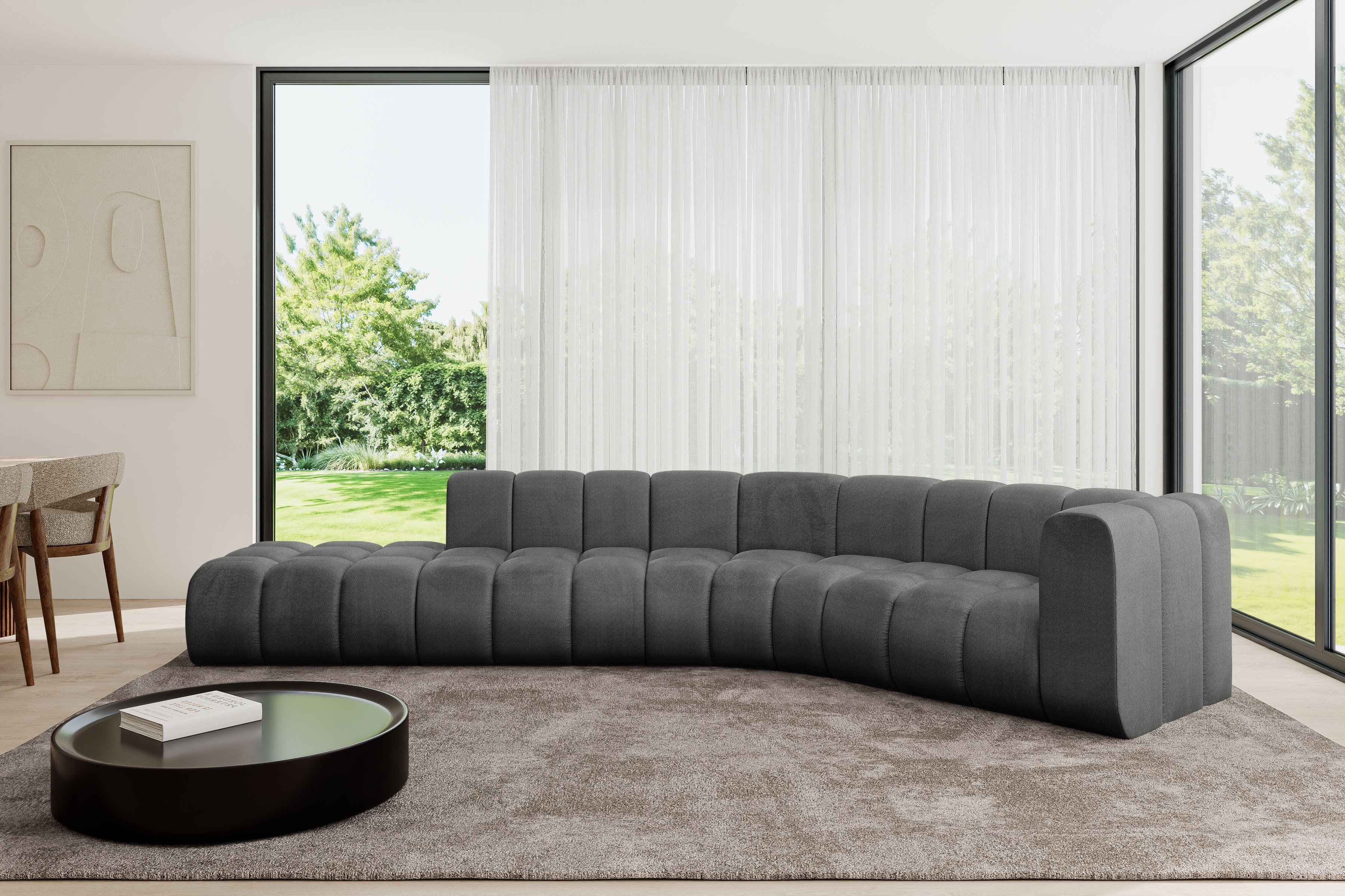 Ein modernes, modular Sofa in L-Form ist ein vielseitiges Möbelstück, das in jeder Alltagssituation außergewöhnlichen Sitzkomfort bietet.