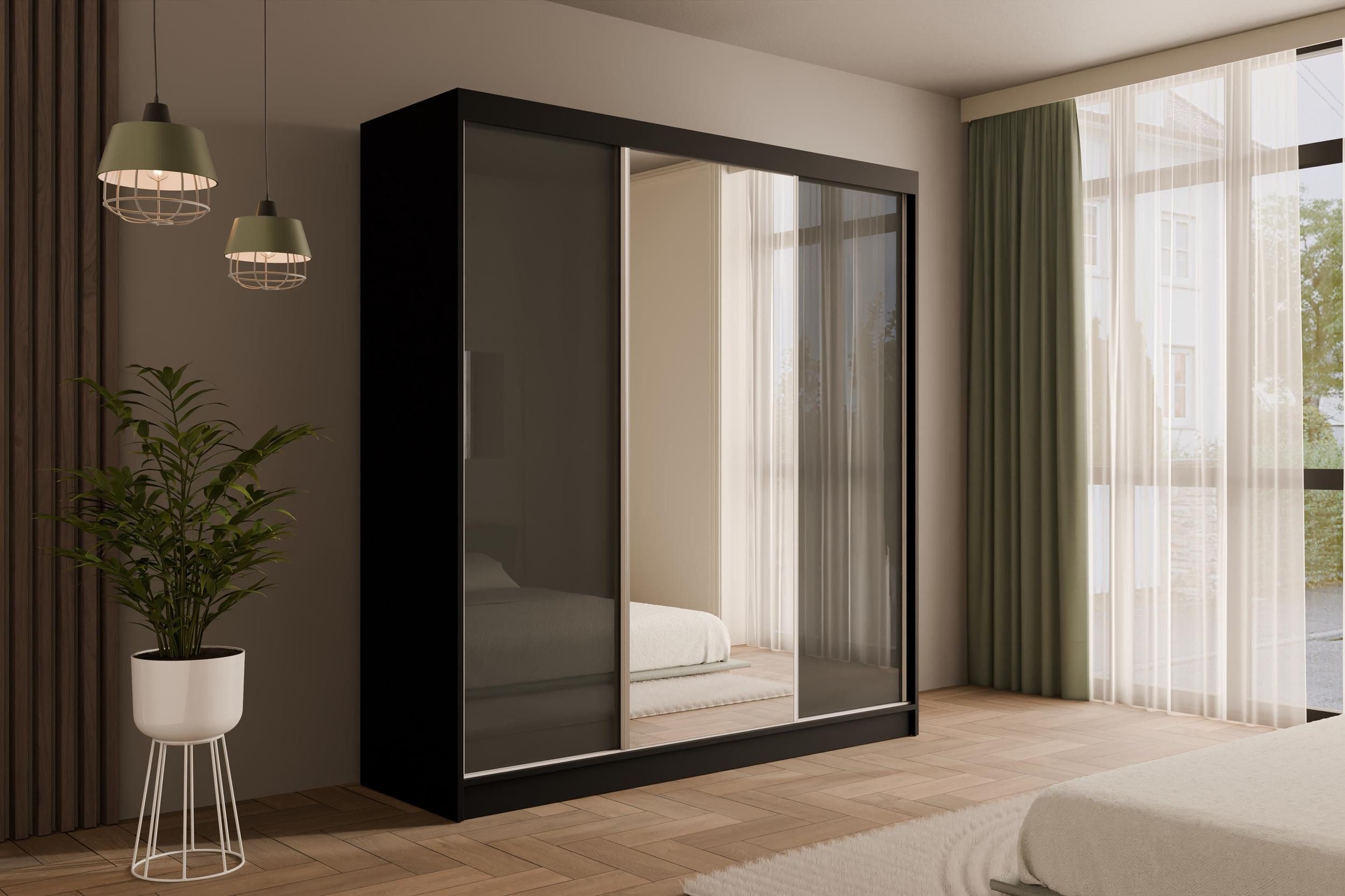 Die verspiegelten Fronten vergrößern visuell das Zimmer und verleihen dem Schrank eine optische Leichtigkeit.