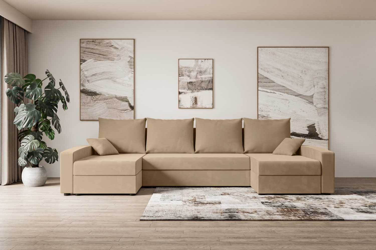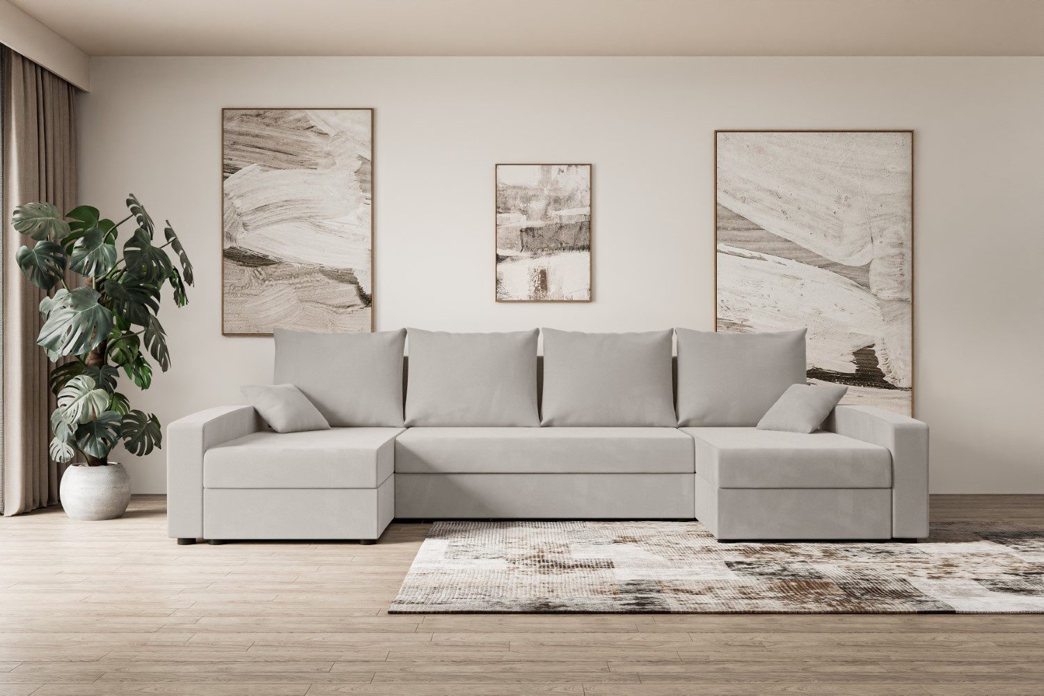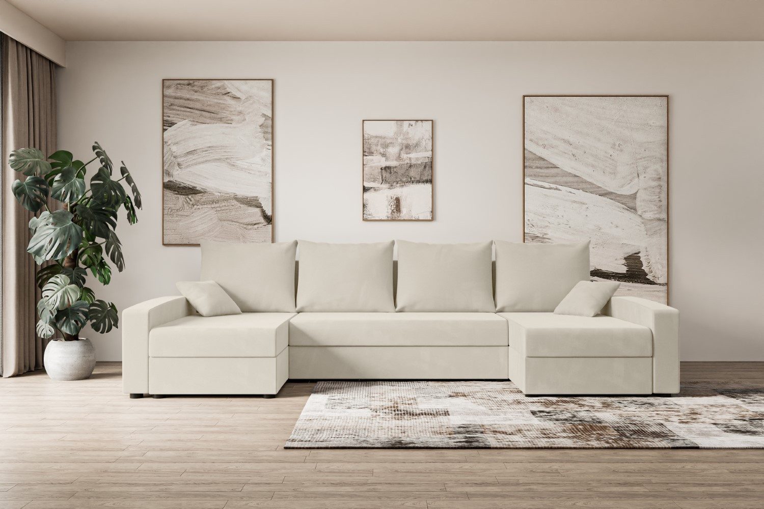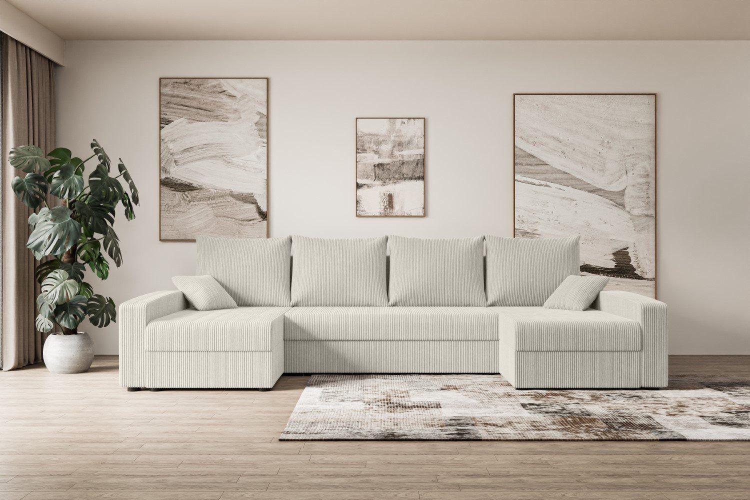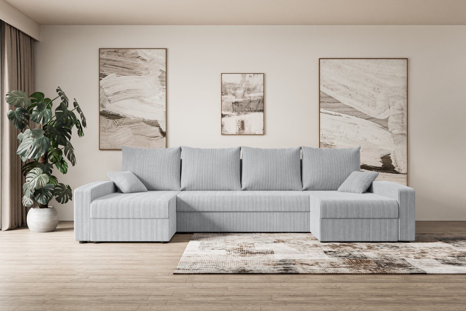 Die Sofalandschaft in U-Form bietet unglaublich viel Platz und ist dazu hervorragend geeignet, um mit Familie oder Freunden Zeit zu verbringen, zu plaudern oder sich einfach am Abend zu entspannen.