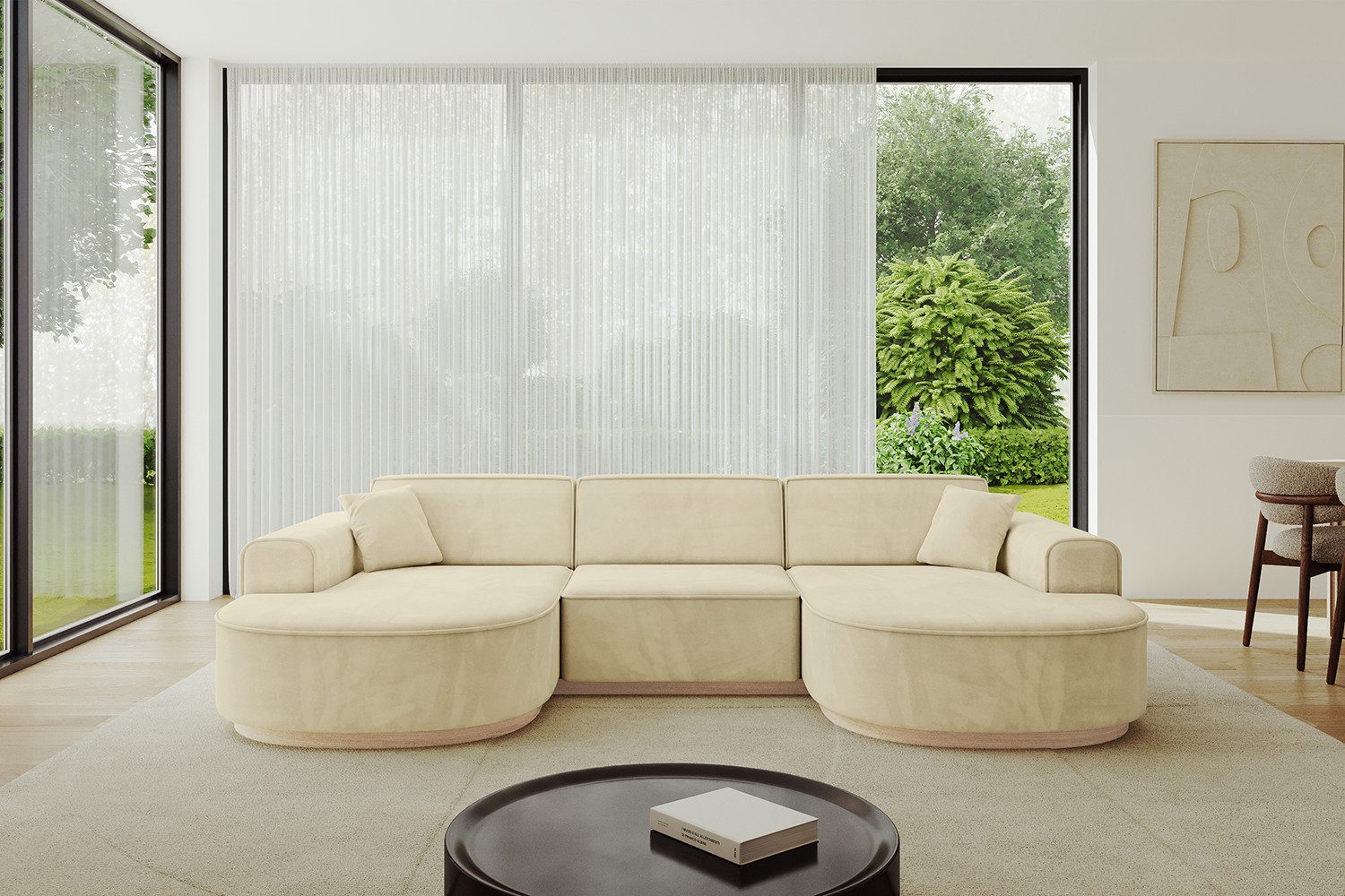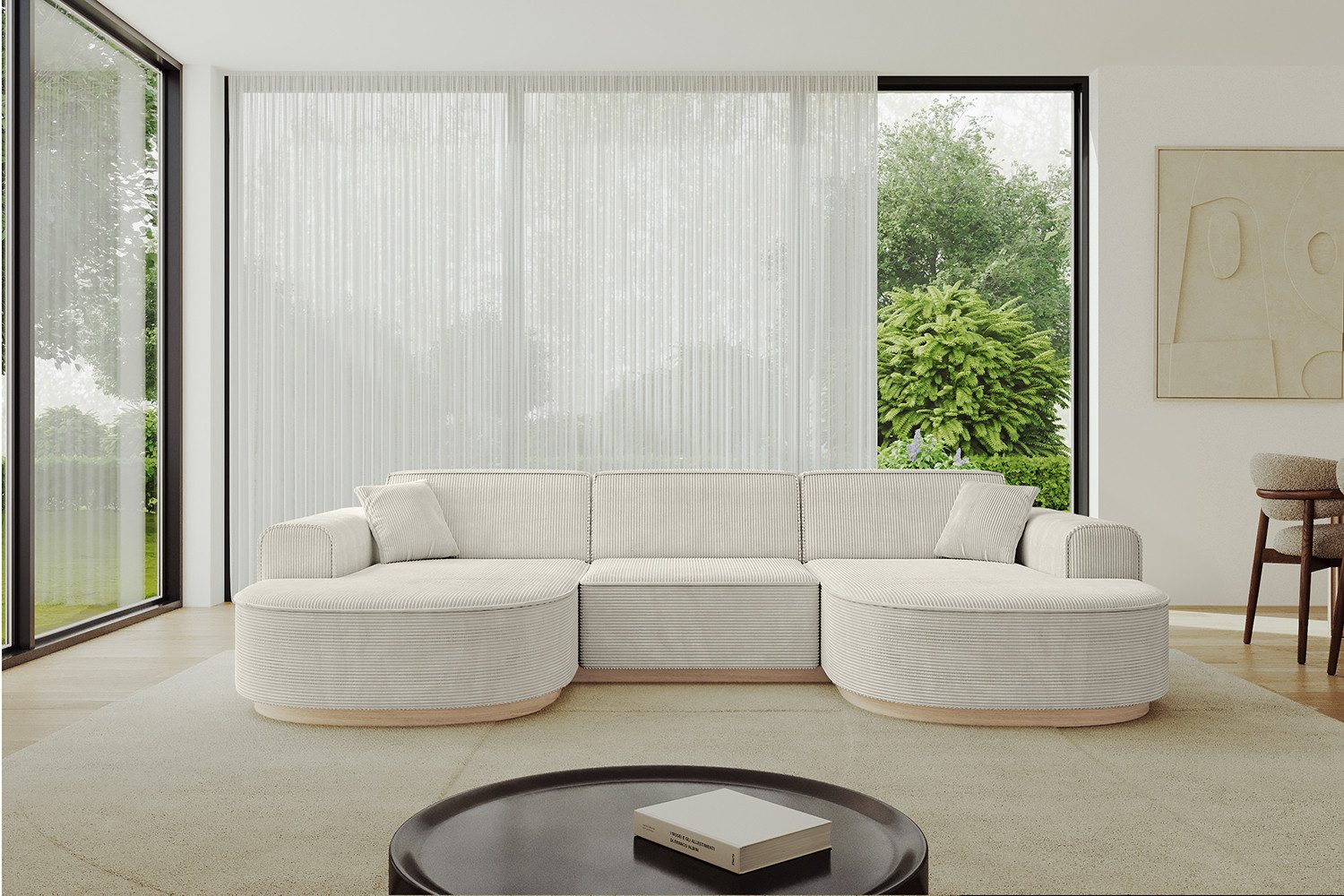 Das moderne Polstersofa ist ein universelles Möbelstück. Das Schlafsofa in U-Form bietet einen hohen Sitz-, Liege- und Schlafkomfort in jeder Situation.