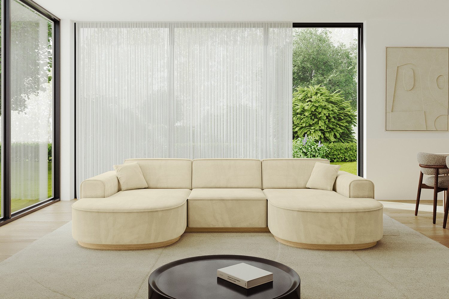 Das moderne Polstersofa ist ein universelles Möbelstück. Das Schlafsofa in U-Form bietet einen hohen Sitz-, Liege- und Schlafkomfort in jeder Situation.